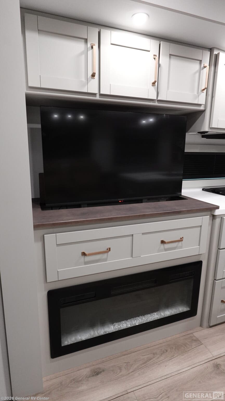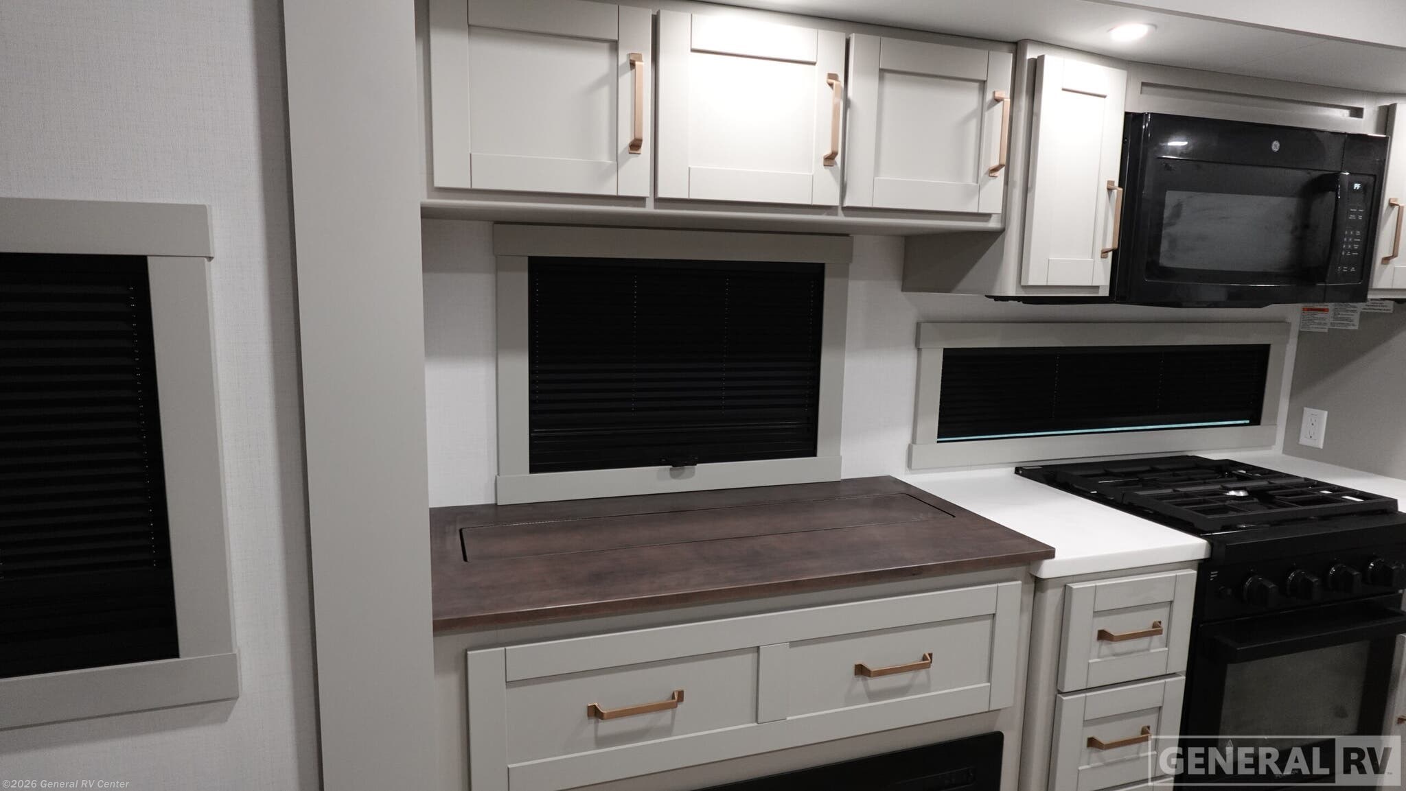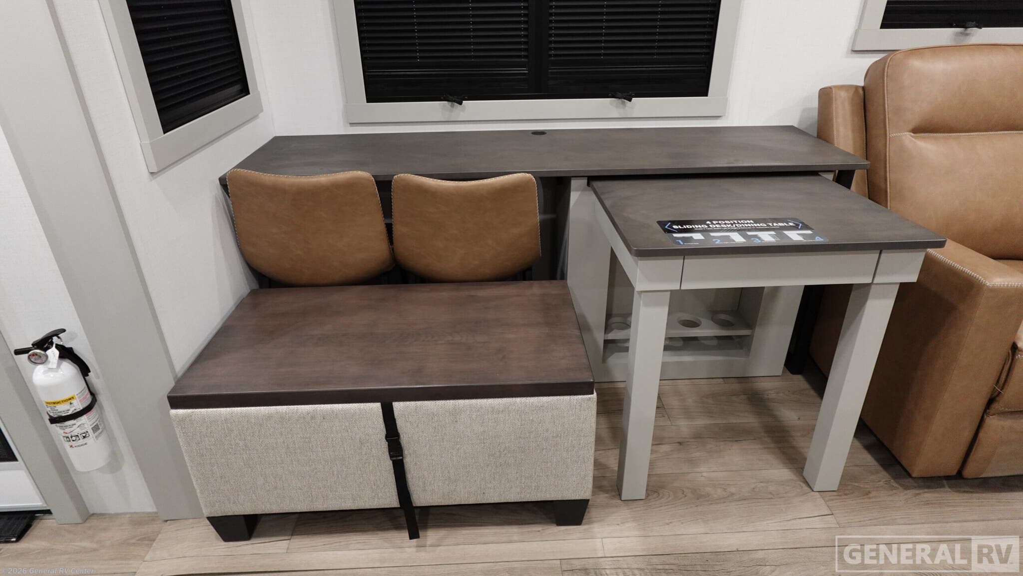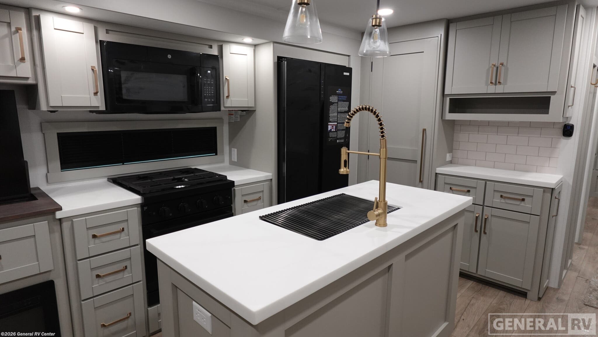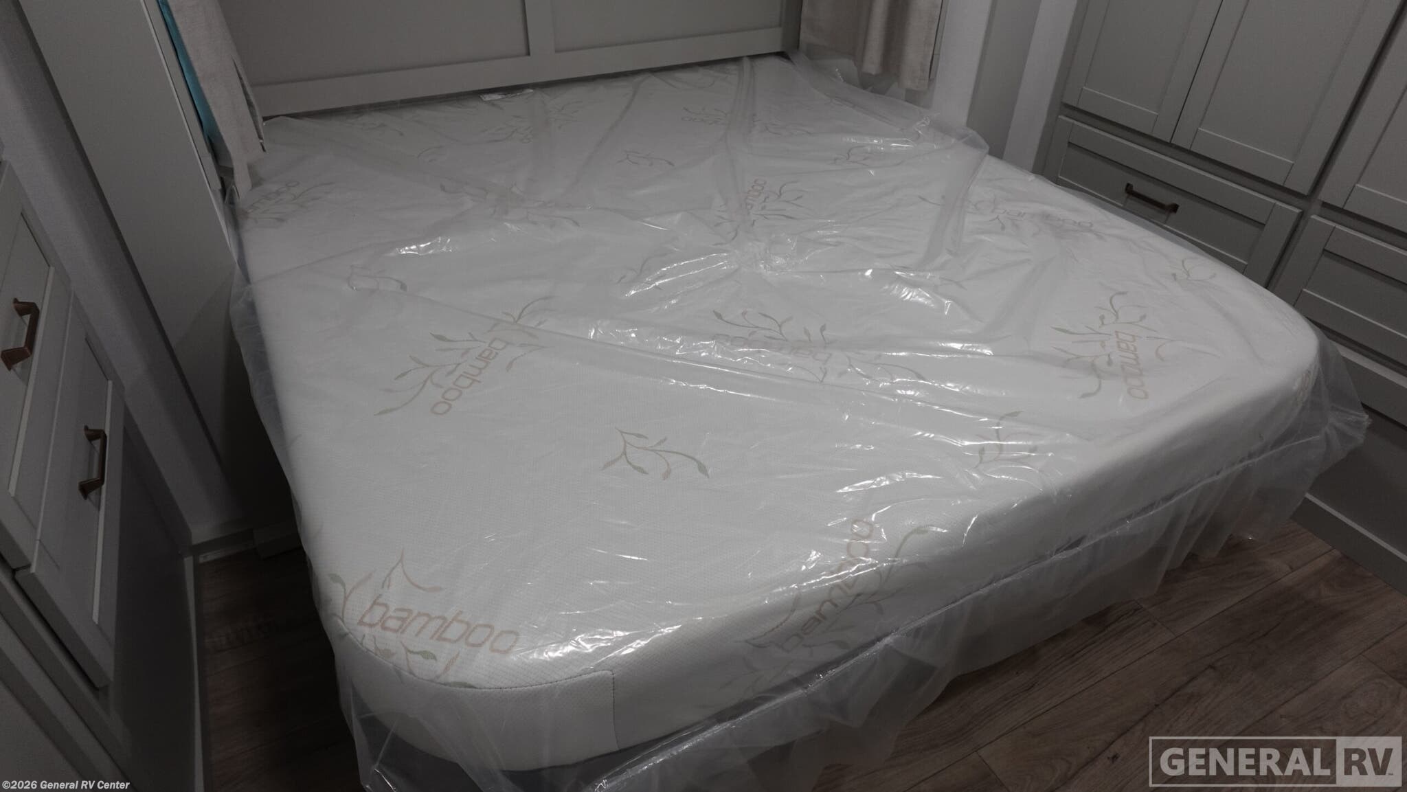 Step into the future with the 2026 Brinkley RV Model Z Air 310, where luxury meets functionality in a stunning design. This RV is crafted for those who seek both adventure and comfort. At nearly 38 feet in length, its spacious layout features a center kitchen equipped with a full-size electric refrigerator and a sleek cooktop with three burners, perfect for preparing meals on the go. The rear living area, complete with theater seating and a cozy fireplace, offers a perfect retreat after a day of exploration. The Model Z Air 310 is designed to accommodate up to four guests comfortably, with options for a queen or king bed in the front bedroom and a convertible bed for additional sleeping space. The center bath, featuring a one-piece fiberglass shower, ensures a refreshing experience. With ample storage, including a drop-frame pass-thru, and modern conveniences like a washer and dryer, this RV is a home away from home. Enjoy the outdoors under the expansive 25.5 ft. powered retractable awning, making every journey memorable. For more details, visit your nearest General RV dealership.