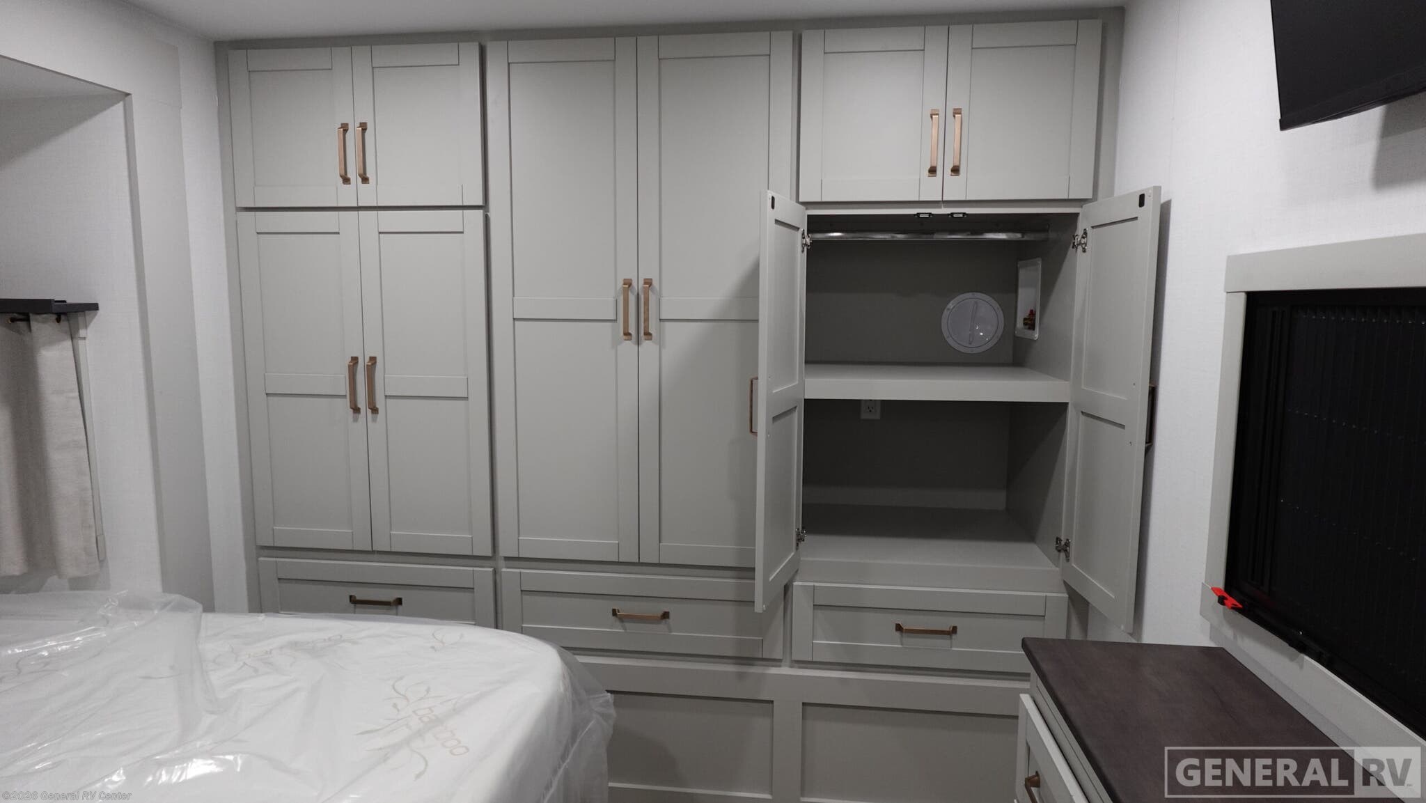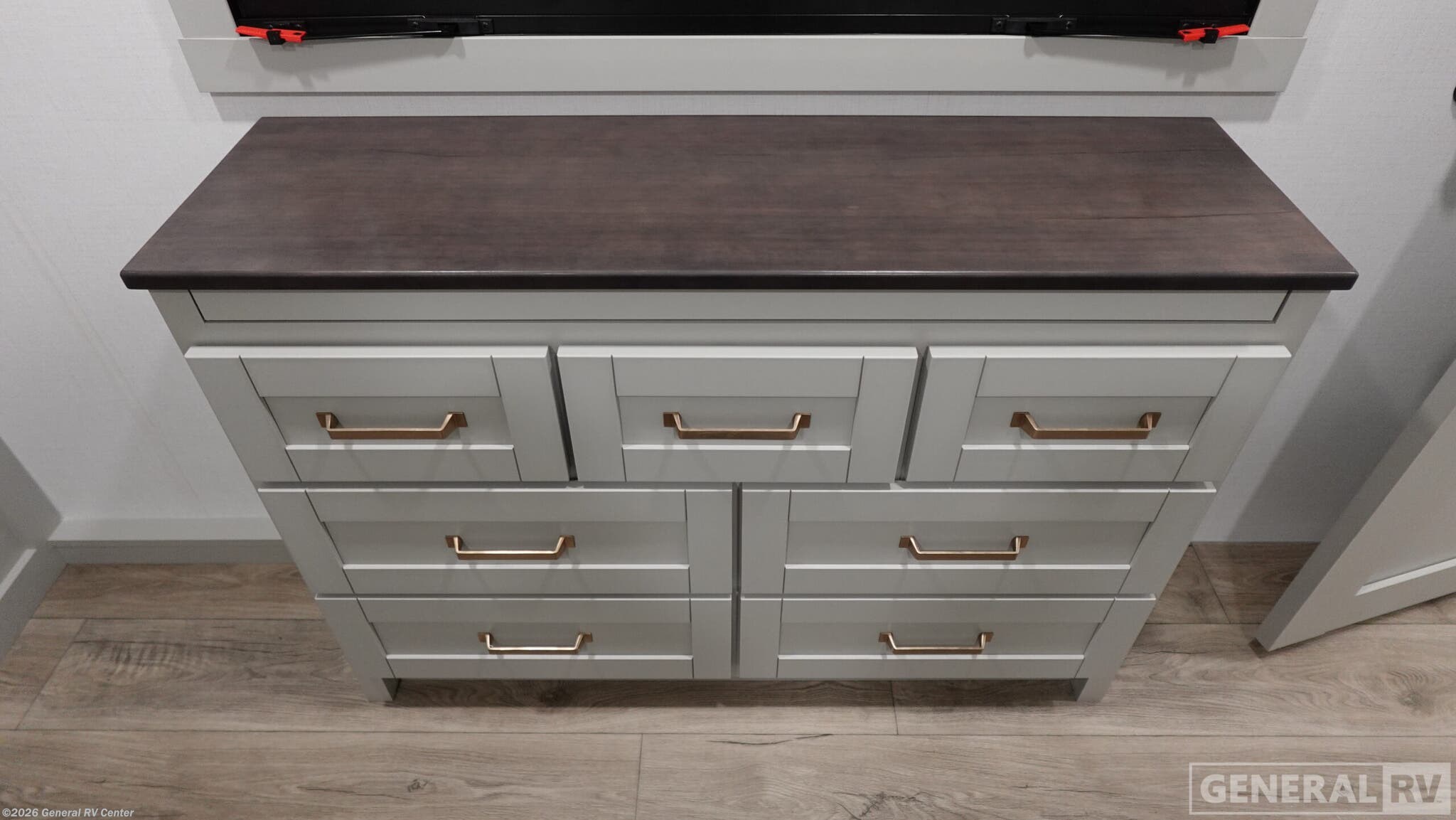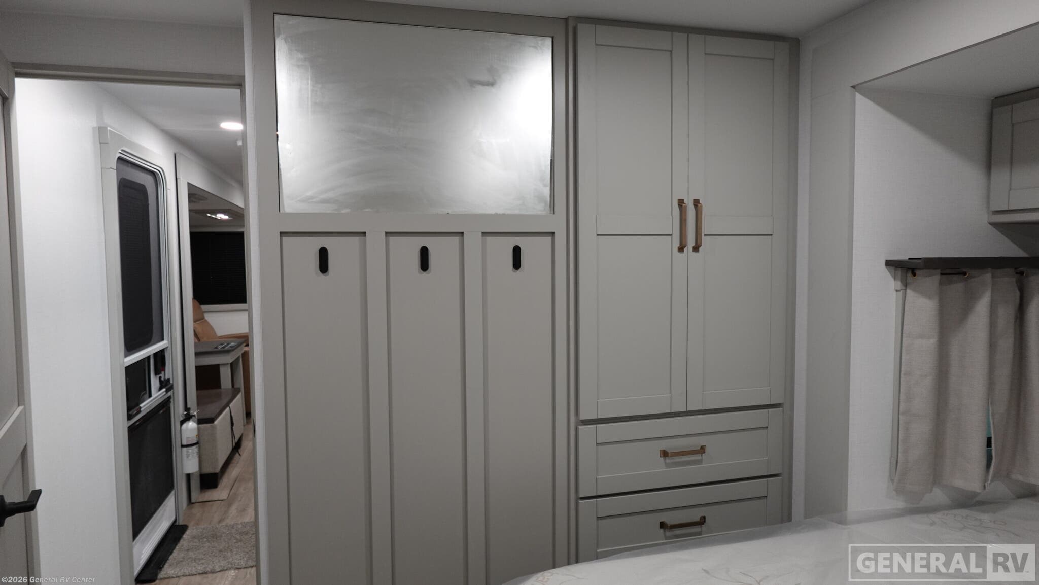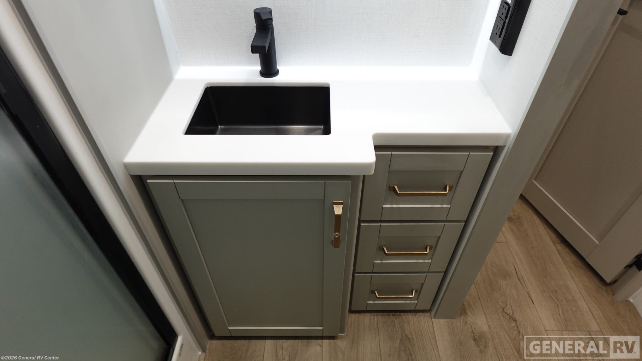 Step into the future with the 2026 Brinkley RV Model Z Air 310, where luxury meets functionality in a stunning design. This RV is crafted for those who seek both adventure and comfort. At nearly 38 feet in length, its spacious layout features a center kitchen equipped with a full-size electric refrigerator and a sleek cooktop with three burners, perfect for preparing meals on the go. The rear living area, complete with theater seating and a cozy fireplace, offers a perfect retreat after a day of exploration. The Model Z Air 310 is designed to accommodate up to four guests comfortably, with options for a queen or king bed in the front bedroom and a convertible bed for additional sleeping space. The center bath, featuring a one-piece fiberglass shower, ensures a refreshing experience. With ample storage, including a drop-frame pass-thru, and modern conveniences like a washer and dryer, this RV is a home away from home. Enjoy the outdoors under the expansive 25.5 ft. powered retractable awning, making every journey memorable. For more details, visit your nearest General RV dealership.
