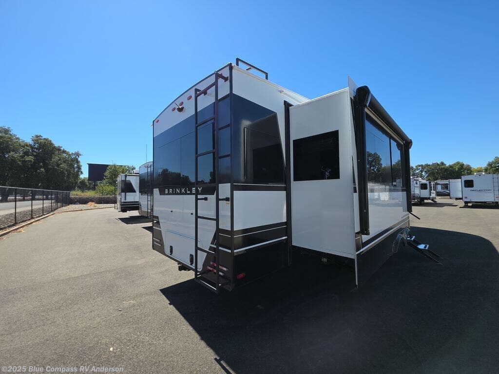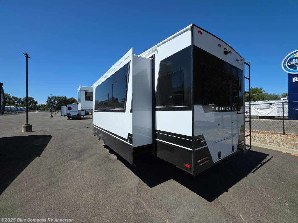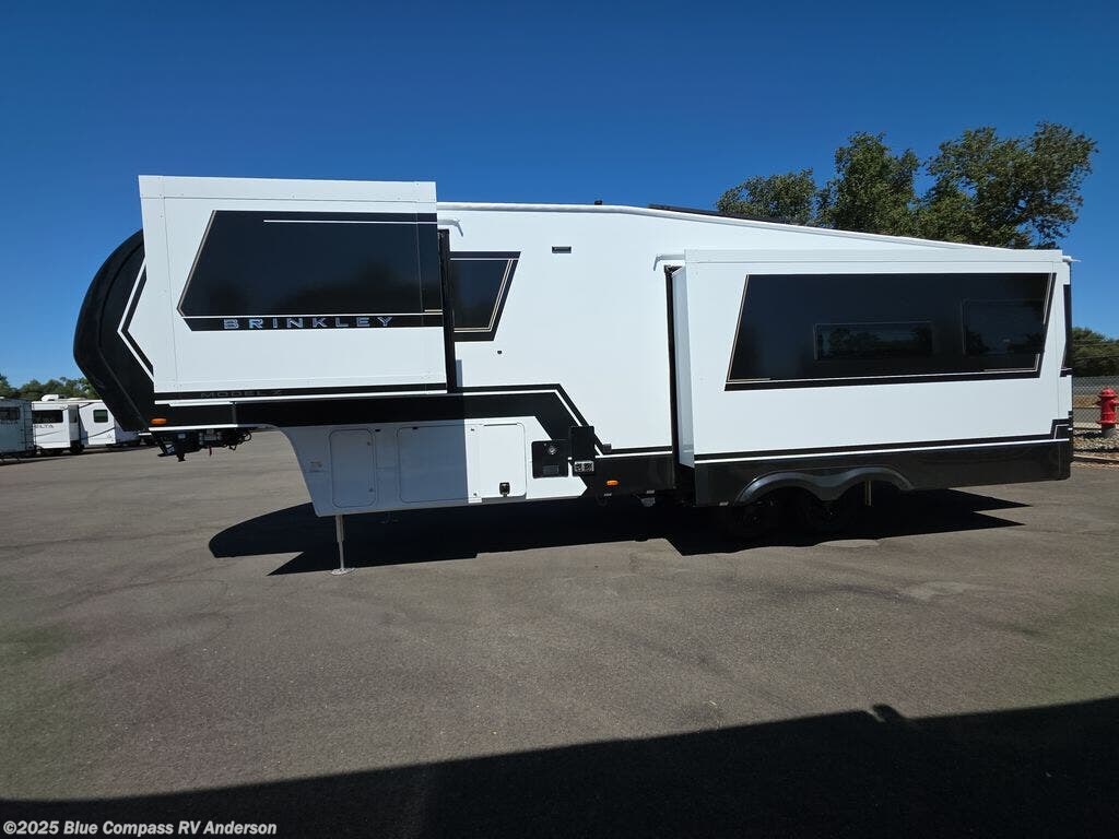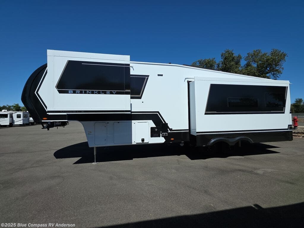 The Brinkley mid-profile Model Z fifth wheels bring you clean lines and an upscale look with plenty of style and exciting new features like the industry first brass plumbing connections. These units also feature an automotive grade front cap, plenty of exterior storage, dual exterior hot and cold showers, and wide stance leveling jacks for easy set up. Residential frameless windows provide a clean look and beautiful views, and ample electrical outlets and 6 USB/USB-C outlets allow all of your electronics and appliances to easily be used and charged.