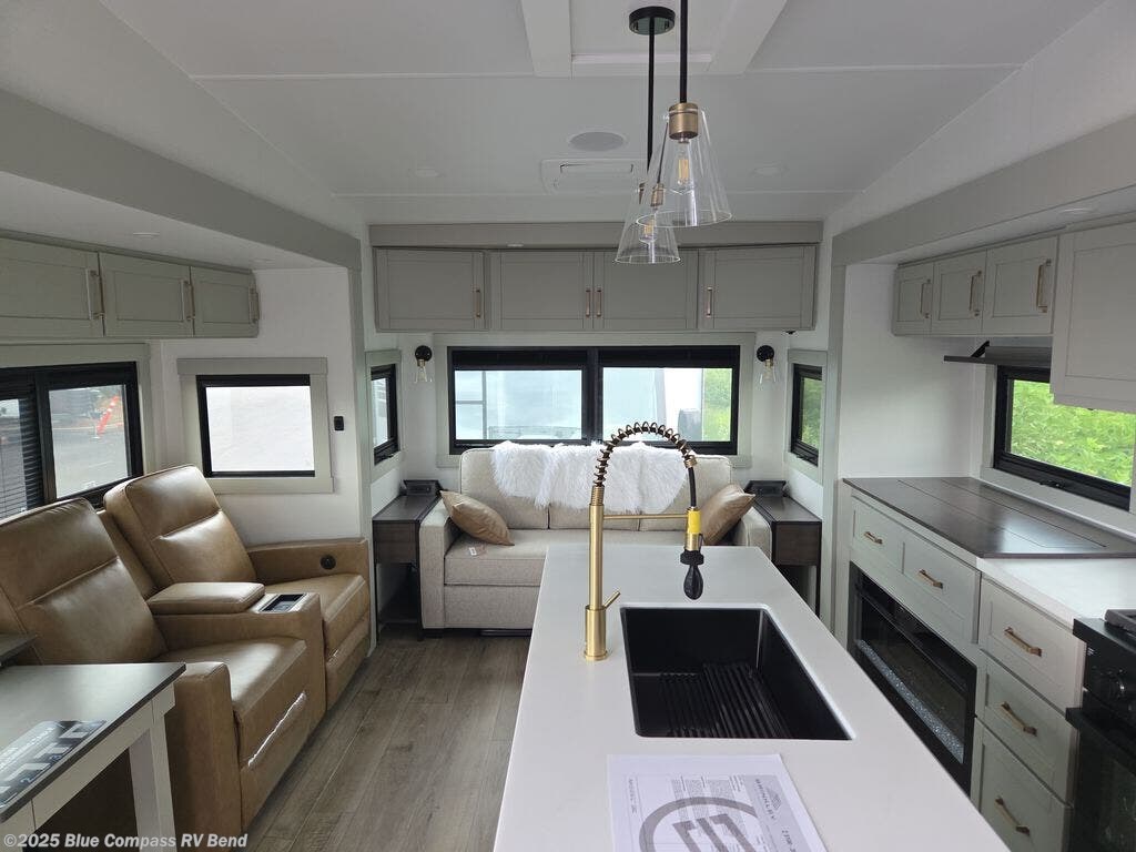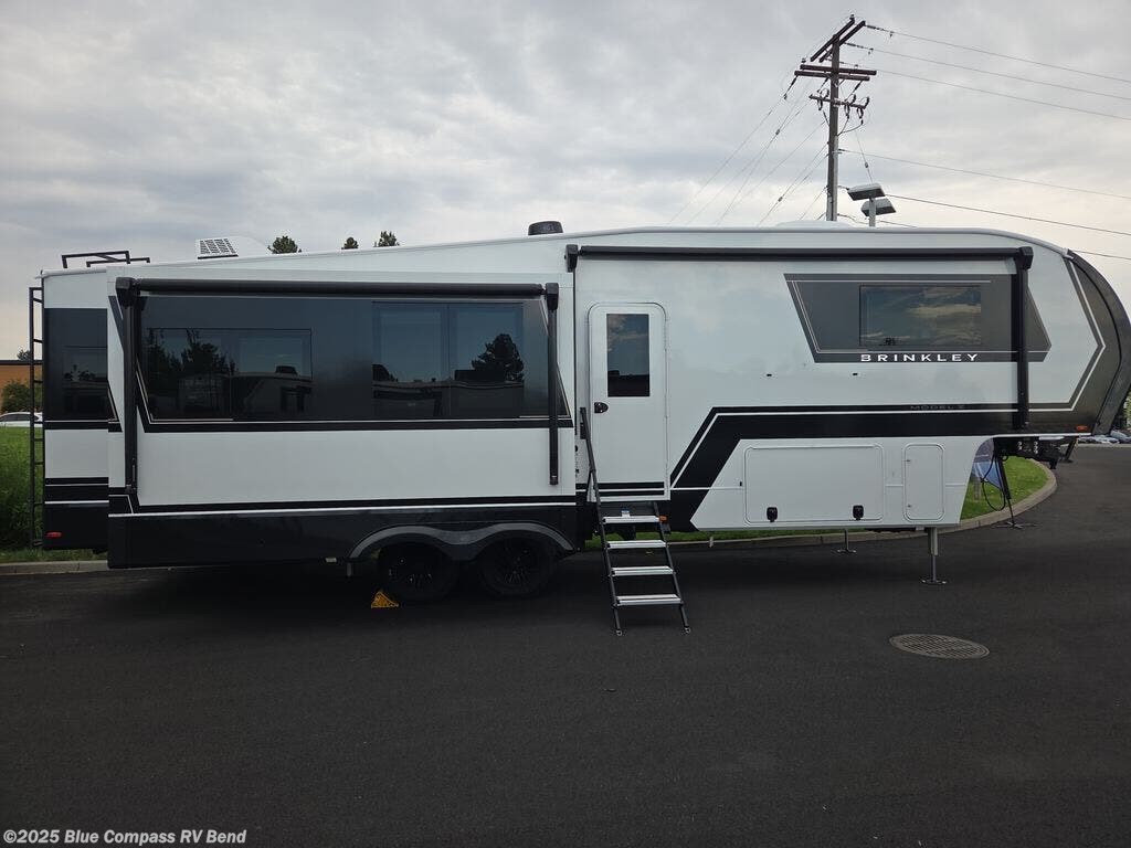 The Brinkley mid-profile Model Z fifth wheels bring you clean lines and an upscale look with plenty of style and exciting new features like the industry first brass plumbing connections. These units also feature an automotive grade front cap, plenty of exterior storage, dual exterior hot and cold showers, and wide stance leveling jacks for easy set up. Residential frameless windows provide a clean look and beautiful views, and ample electrical outlets and 6 USB/USB-C outlets allow all of your electronics and appliances to easily be used and charged.