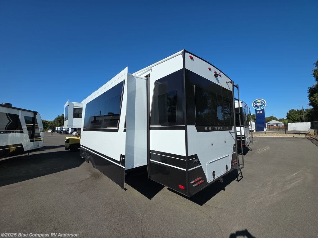 The Brinkley mid-profile Model Z fifth wheels bring you clean lines and an upscale look with plenty of style and exciting new features like the industry first brass plumbing connections. These units also feature an automotive grade front cap, plenty of exterior storage, dual exterior hot and cold showers, and wide stance leveling jacks for easy set up. Residential frameless windows provide a clean look and beautiful views, and ample electrical outlets and 6 USB/USB-C outlets allow all of your electronics and appliances to easily be used and charged.
