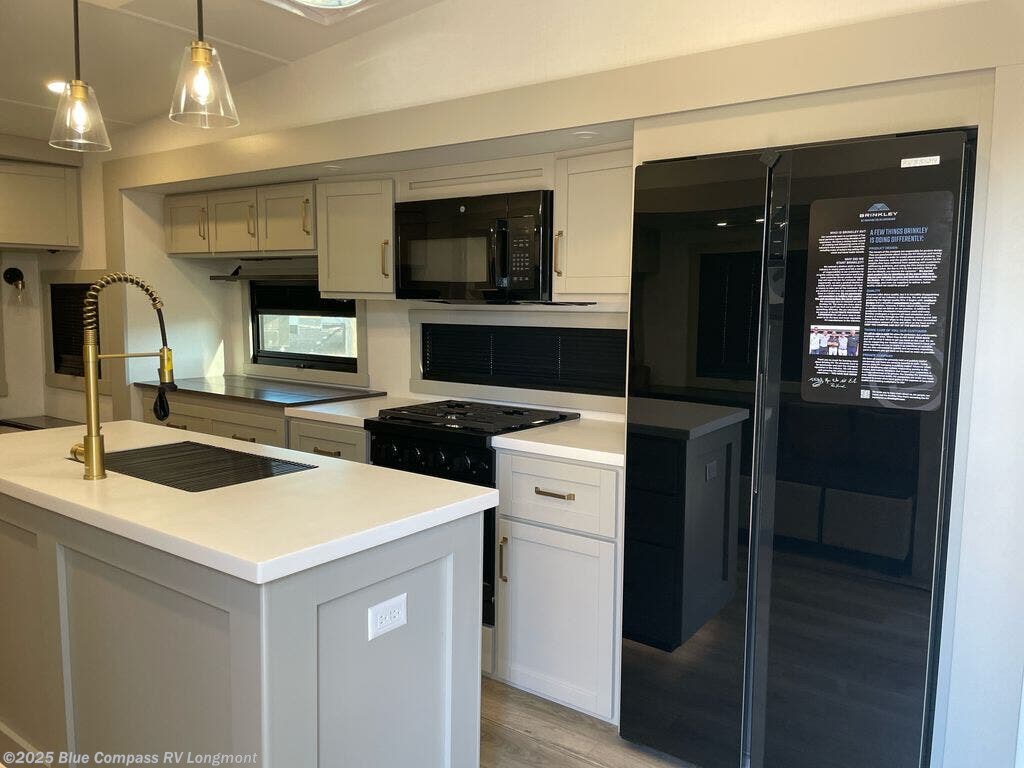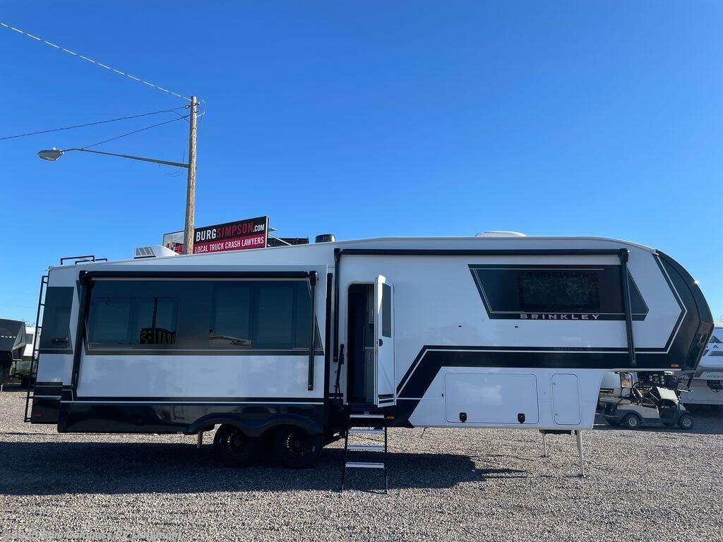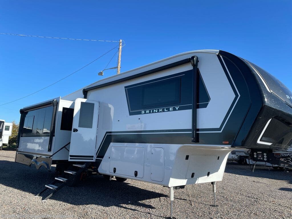 The Brinkley mid-profile Model Z fifth wheels bring you clean lines and an upscale look with plenty of style and exciting new features like the industry first brass plumbing connections. These units also feature an automotive grade front cap, plenty of exterior storage, dual exterior hot and cold showers, and wide stance leveling jacks for easy set up. Residential frameless windows provide a clean look and beautiful views, and ample electrical outlets and 6 USB/USB-C outlets allow all of your electronics and appliances to easily be used and charged.