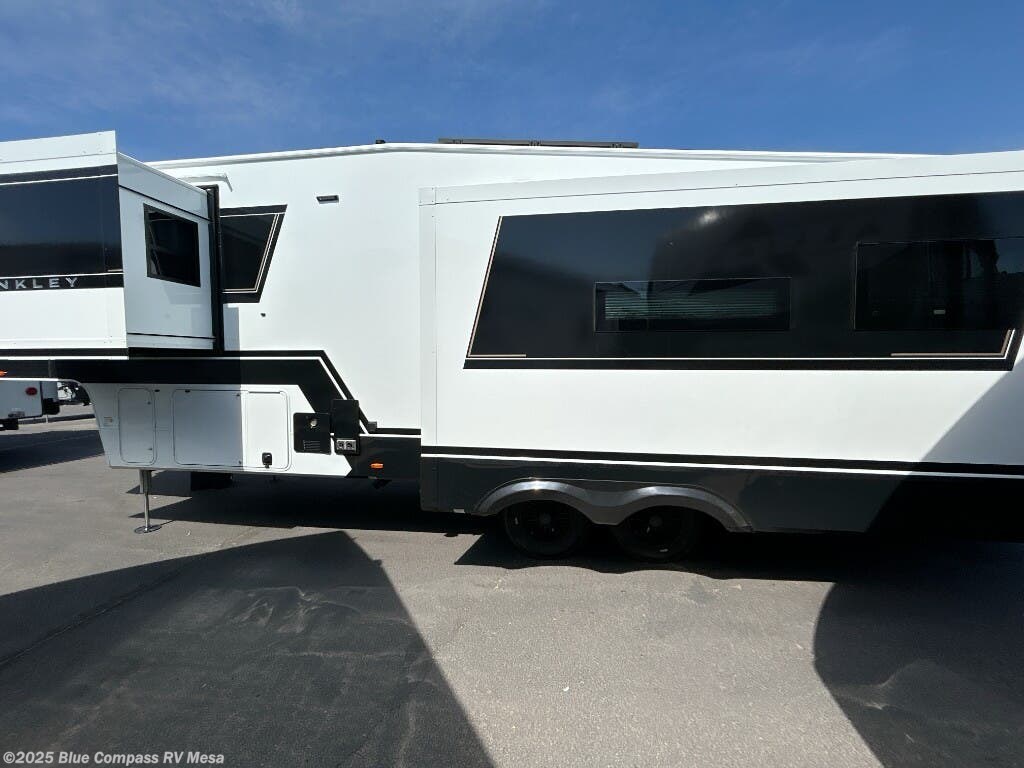 The Brinkley mid-profile Model Z fifth wheels bring you clean lines and an upscale look with plenty of style and exciting new features like the industry first brass plumbing connections. These units also feature an automotive grade front cap, plenty of exterior storage, dual exterior hot and cold showers, and wide stance leveling jacks for easy set up. Residential frameless windows provide a clean look and beautiful views, and ample electrical outlets and 6 USB/USB-C outlets allow all of your electronics and appliances to easily be used and charged.