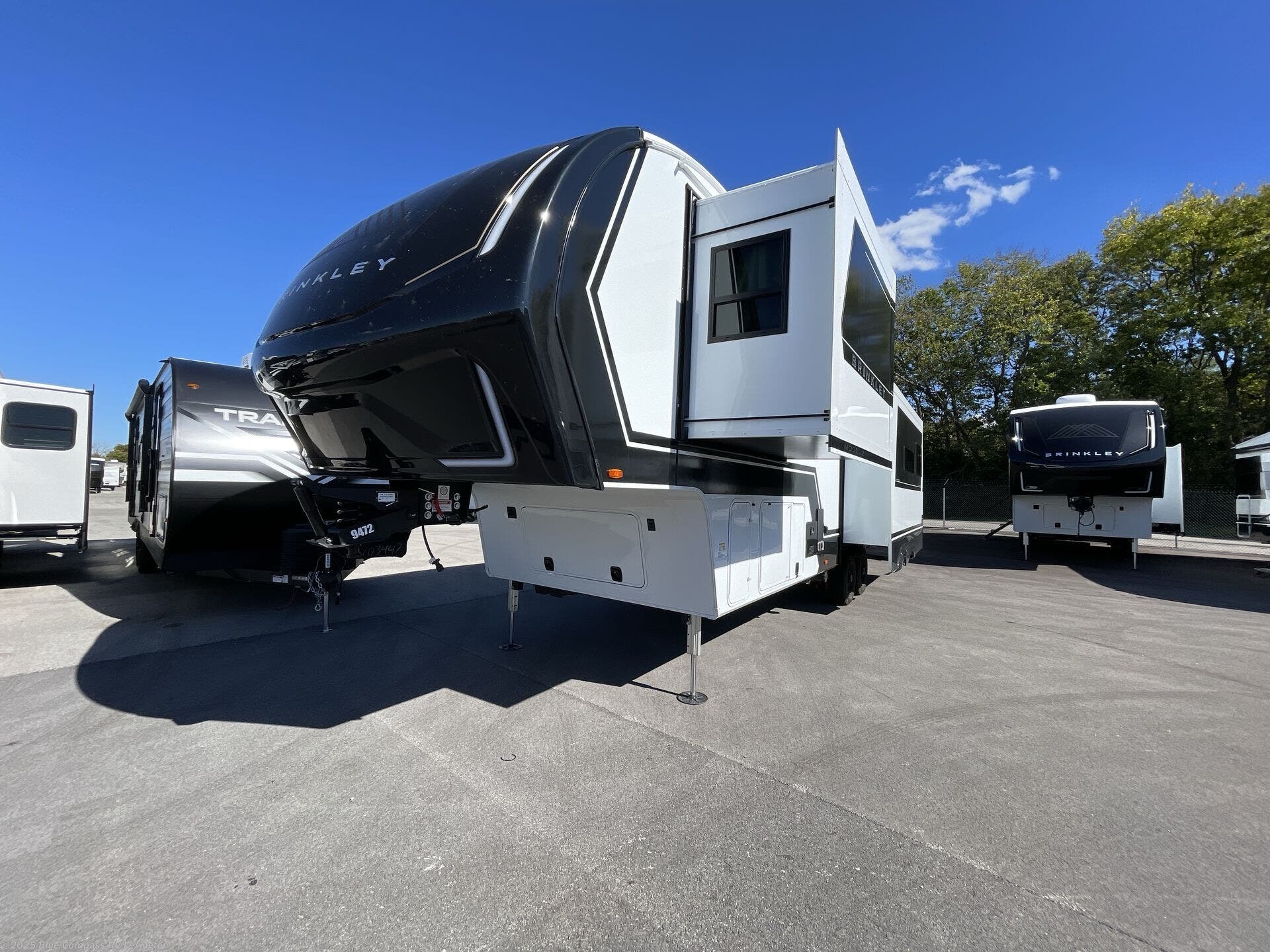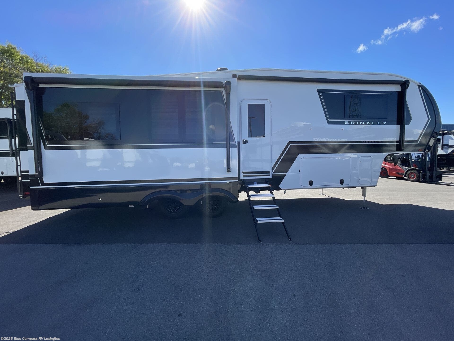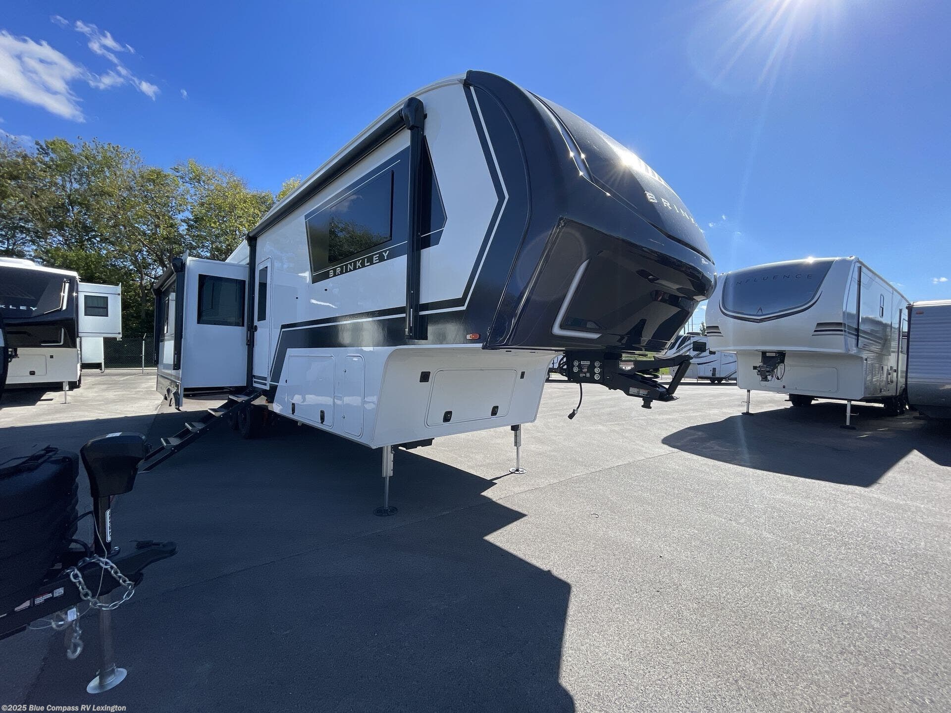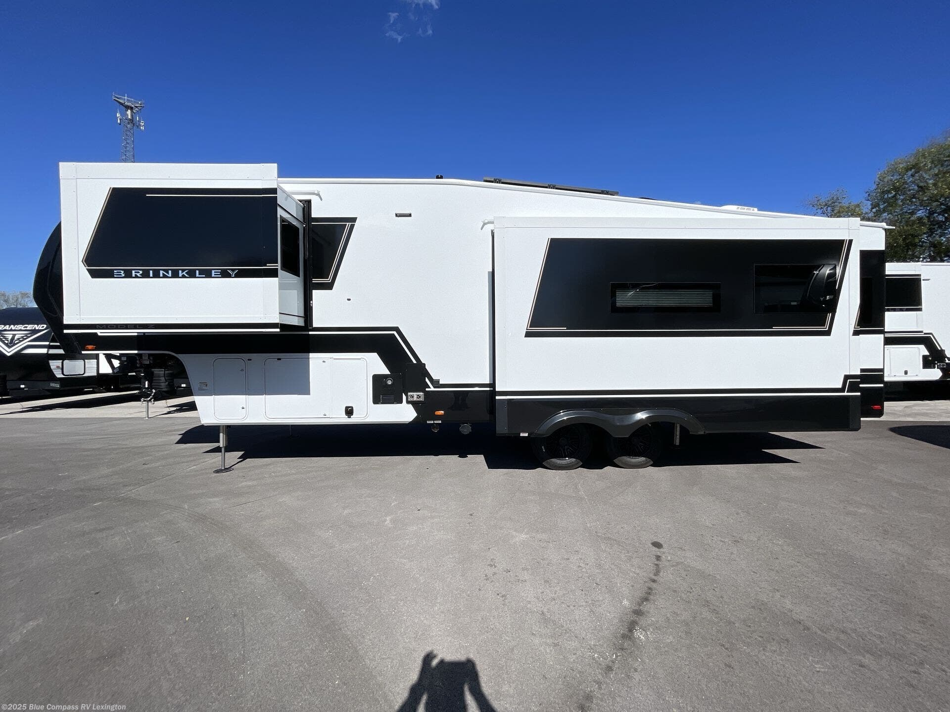 The Brinkley mid-profile Model Z fifth wheels bring you clean lines and an upscale look with plenty of style and exciting new features like the industry first brass plumbing connections. These units also feature an automotive grade front cap, plenty of exterior storage, dual exterior hot and cold showers, and wide stance leveling jacks for easy set up. Residential frameless windows provide a clean look and beautiful views, and ample electrical outlets and 6 USB/USB-C outlets allow all of your electronics and appliances to easily be used and charged.