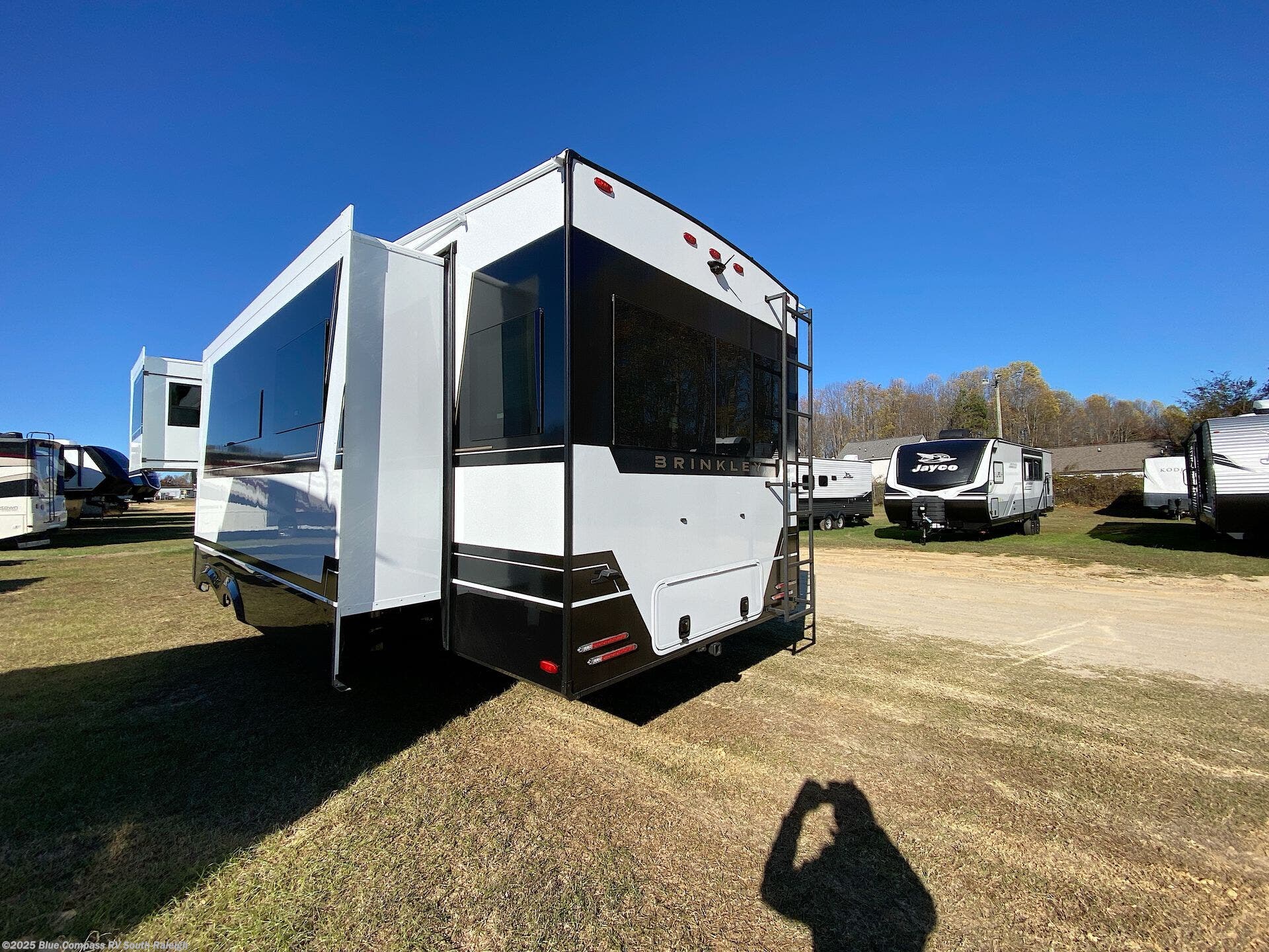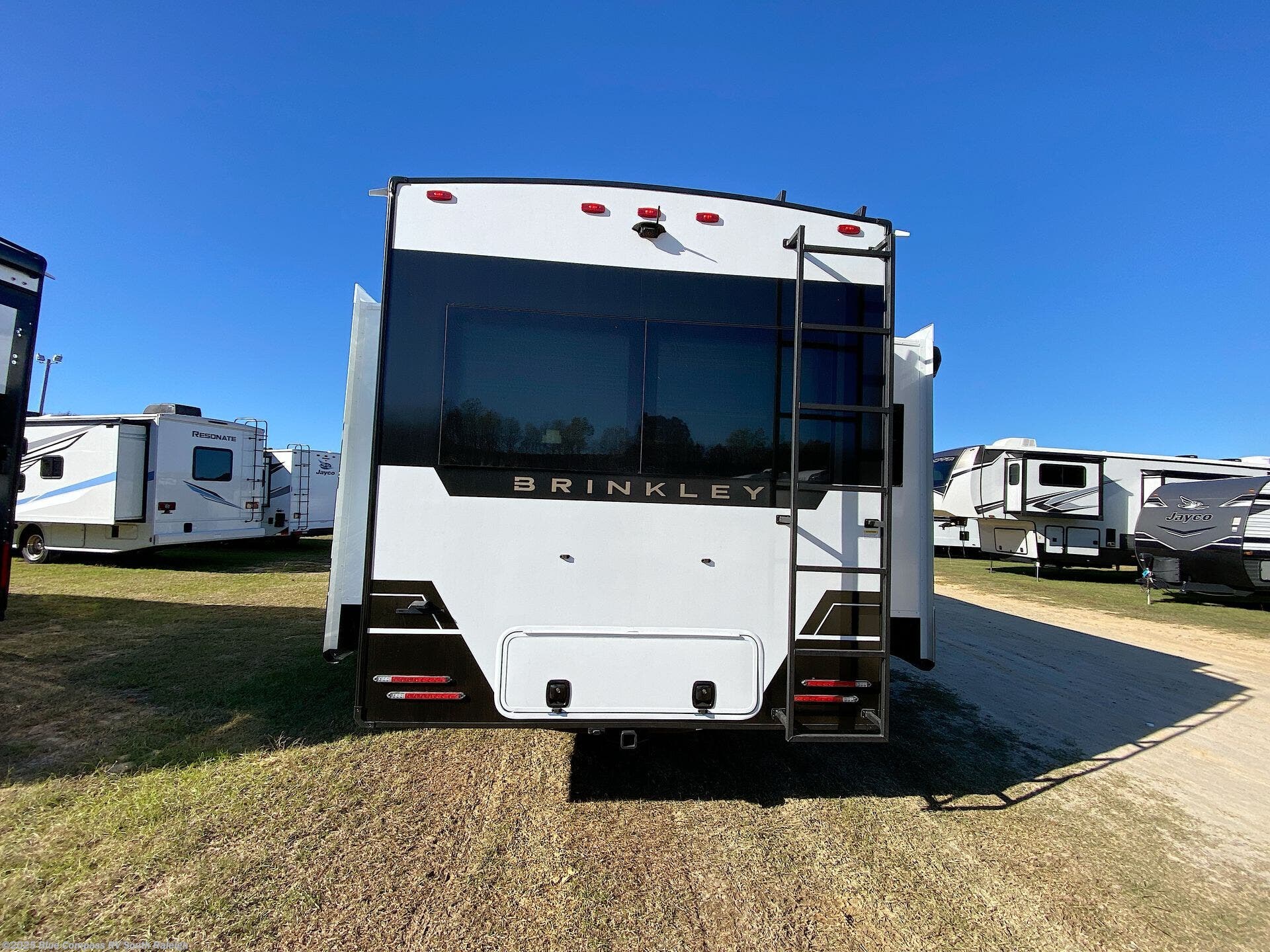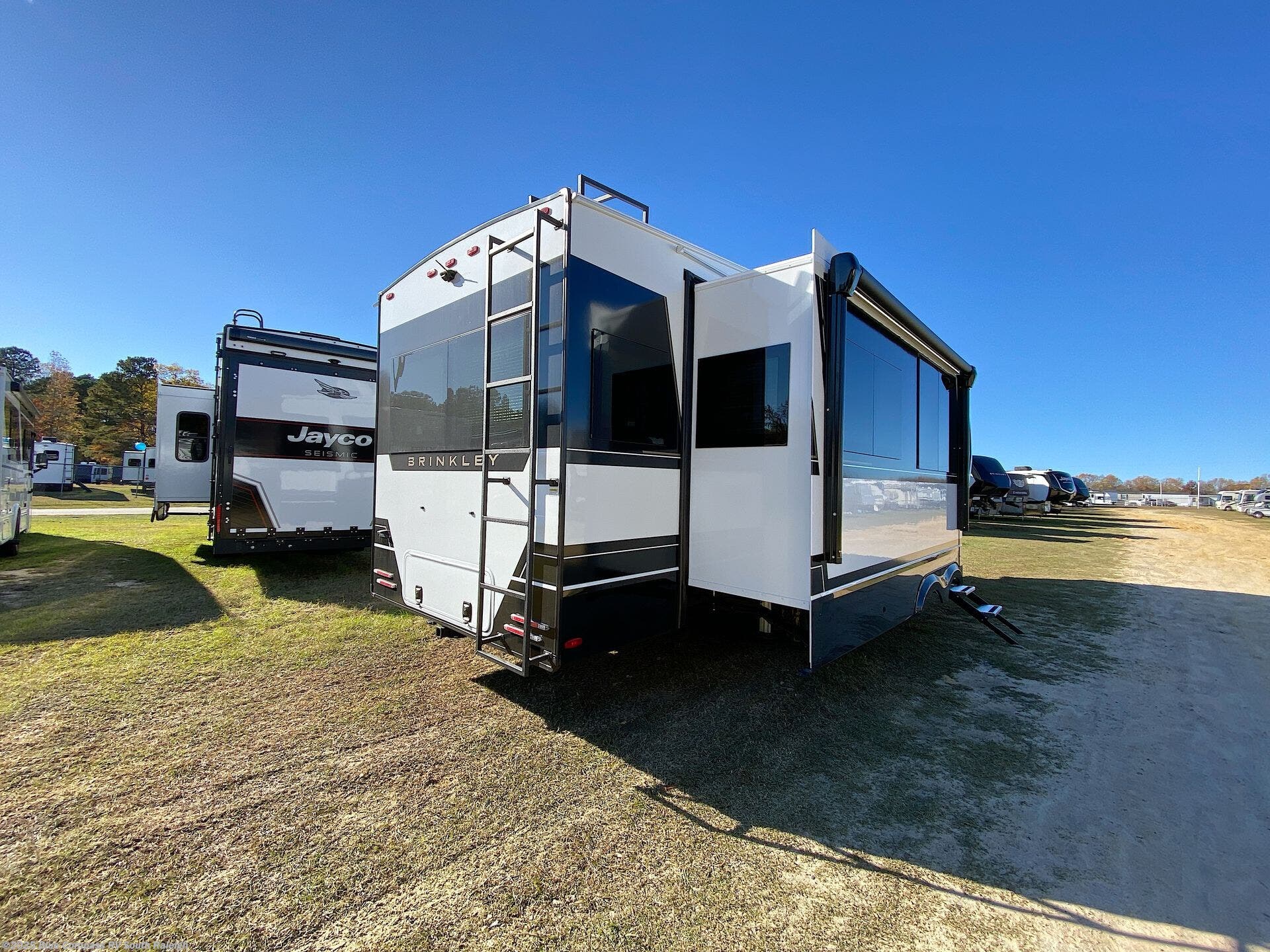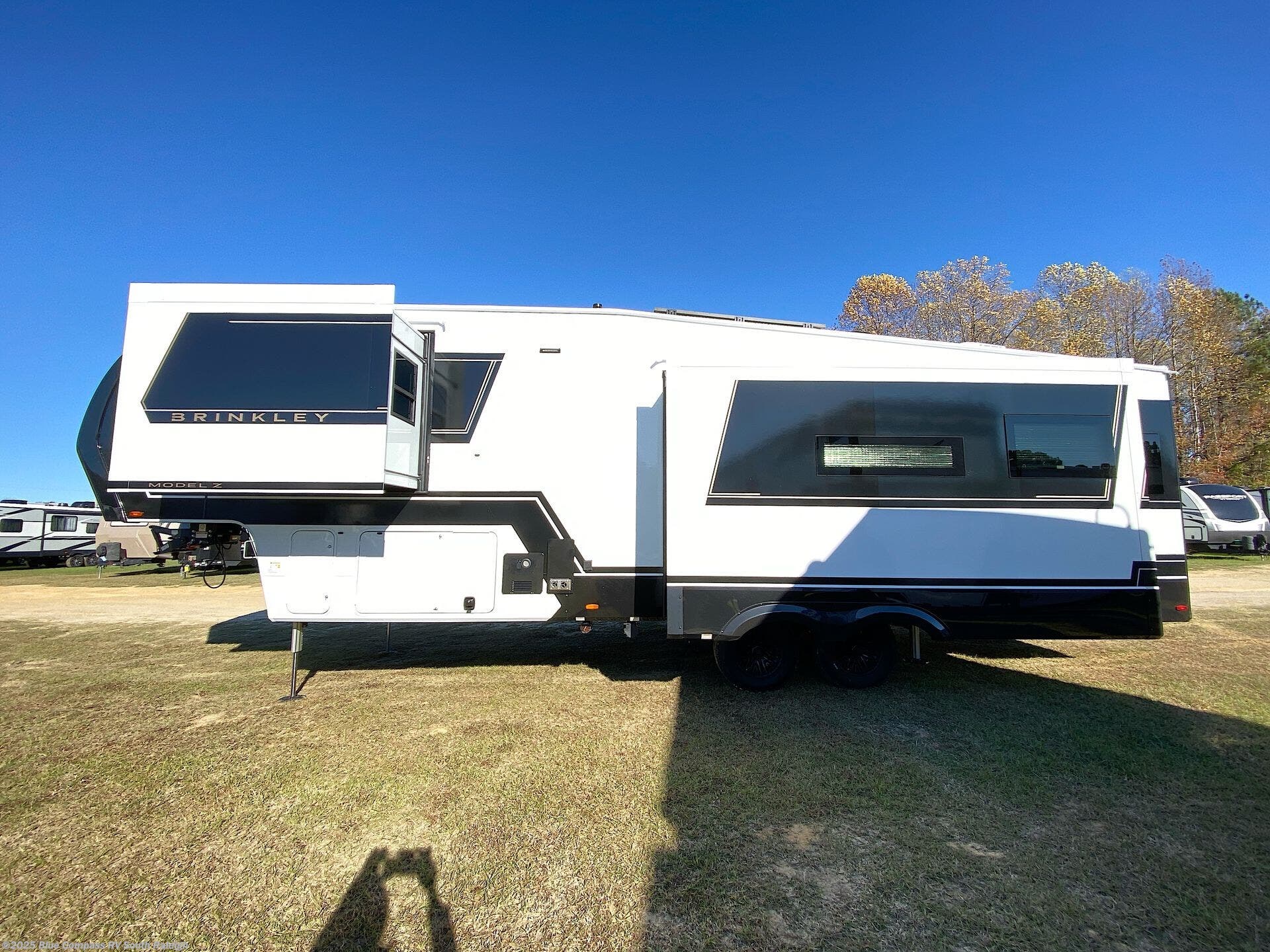 The Brinkley mid-profile Model Z fifth wheels bring you clean lines and an upscale look with plenty of style and exciting new features like the industry first brass plumbing connections. These units also feature an automotive grade front cap, plenty of exterior storage, dual exterior hot and cold showers, and wide stance leveling jacks for easy set up. Residential frameless windows provide a clean look and beautiful views, and ample electrical outlets and 6 USB/USB-C outlets allow all of your electronics and appliances to easily be used and charged.
