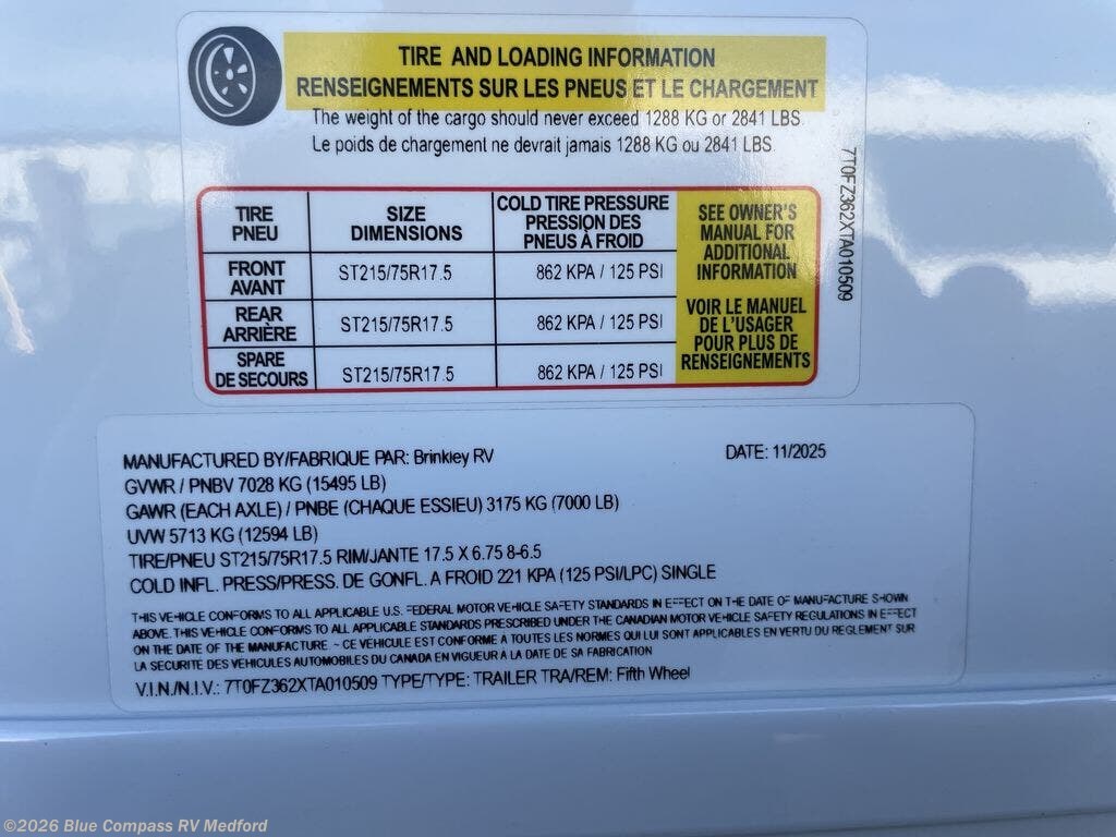 2026 Brinkley RV Model Z 3100 Specifications