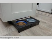 This Model Z luxury fifth wheel is bright and modern on the inside, with loads of amenities that will have you dreaming of your next trip! Enter and find a spacious combined living/kitchen space thanks to dual opposing slides. There is ample seating with a sliding desk/dining table, 62" theater seating, and a 72" tri-fold sofa along the rear wall. You can easily relax and enjoy the 50" Smart telescoping TV with a cozy fireplace below. The kitchen offers all that you need to prepare and cook meals just like home with a 16 cu. ft. refrigerator for your perishables, a 30" microwave oven, and three burner range top and oven. You will love the integrated spice rack, and the kitchen island all outfitted with dog bowls and double pull out trash bins with an integrated Stow 'N Go paper towel holder. There is also an 84" pantry with adjustable shelves for all of your canned and dry goods. Head up the steps to a private master suite with king bed slide. You can opt for the queen bed if you like. A sliding dresser top features hidden storage which is perfect for jewelry and other personal belongings. The front wardrobe features mirrored doors and the corner closet has been prepped for a stackable washer and dryer if you choose to add that option. Relax and enjoy a large bath featuring a linen cabinet, a 30" x 42" shower, and vanity with sink, plus medicine cabinet.