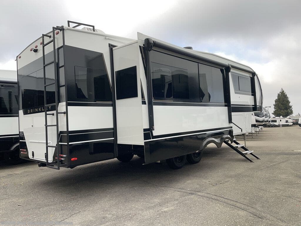 The Brinkley mid-profile Model Z fifth wheels bring you clean lines and an upscale look with plenty of style and exciting new features like the industry first brass plumbing connections. These units also feature an automotive grade front cap, plenty of exterior storage, dual exterior hot and cold showers, and wide stance leveling jacks for easy set up. Residential frameless windows provide a clean look and beautiful views, and ample electrical outlets and 6 USB/USB-C outlets allow all of your electronics and appliances to easily be used and charged.