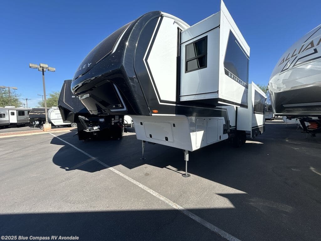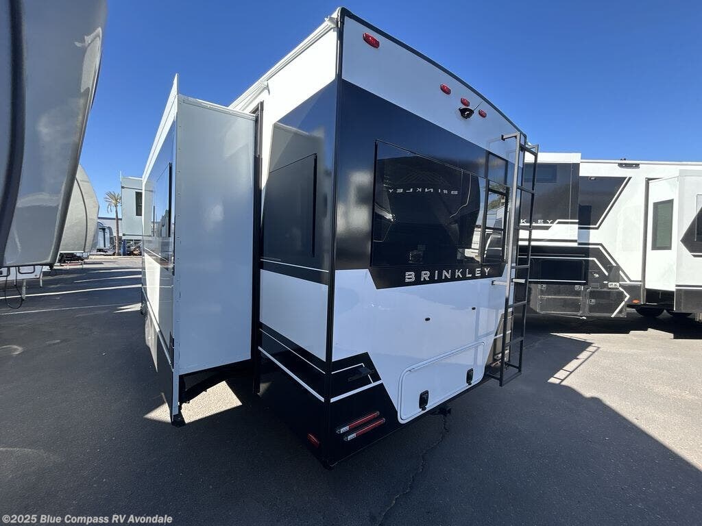 The Brinkley mid-profile Model Z fifth wheels bring you clean lines and an upscale look with plenty of style and exciting new features like the industry first brass plumbing connections. These units also feature an automotive grade front cap, plenty of exterior storage, dual exterior hot and cold showers, and wide stance leveling jacks for easy set up. Residential frameless windows provide a clean look and beautiful views, and ample electrical outlets and 6 USB/USB-C outlets allow all of your electronics and appliances to easily be used and charged.