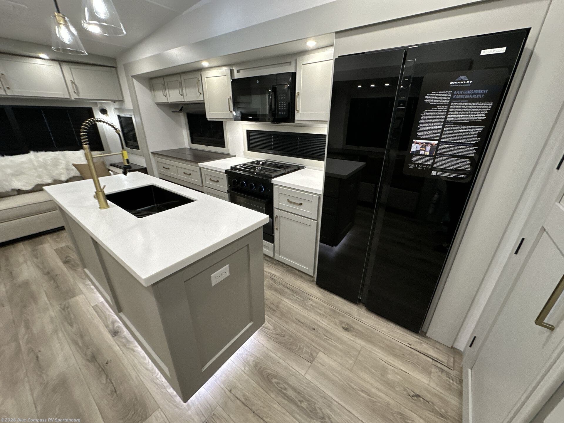The Brinkley mid-profile Model Z fifth wheels bring you clean lines and an upscale look with plenty of style and exciting new features like the industry first brass plumbing connections. These units also feature an automotive grade front cap, plenty of exterior storage, dual exterior hot and cold showers, and wide stance leveling jacks for easy set up. Residential frameless windows provide a clean look and beautiful views, and ample electrical outlets and 6 USB/USB-C outlets allow all of your electronics and appliances to easily be used and charged.