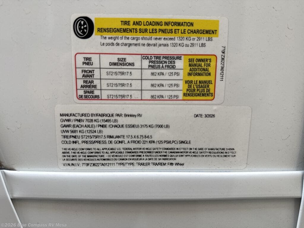 2026 Brinkley RV Model Z 3100 Specifications