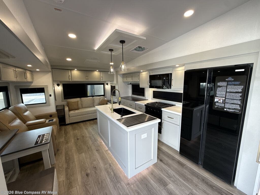 The Brinkley mid-profile Model Z fifth wheels bring you clean lines and an upscale look with plenty of style and exciting new features like the industry first brass plumbing connections. These units also feature an automotive grade front cap, plenty of exterior storage, dual exterior hot and cold showers, and wide stance leveling jacks for easy set up. Residential frameless windows provide a clean look and beautiful views, and ample electrical outlets and 6 USB/USB-C outlets allow all of your electronics and appliances to easily be used and charged.