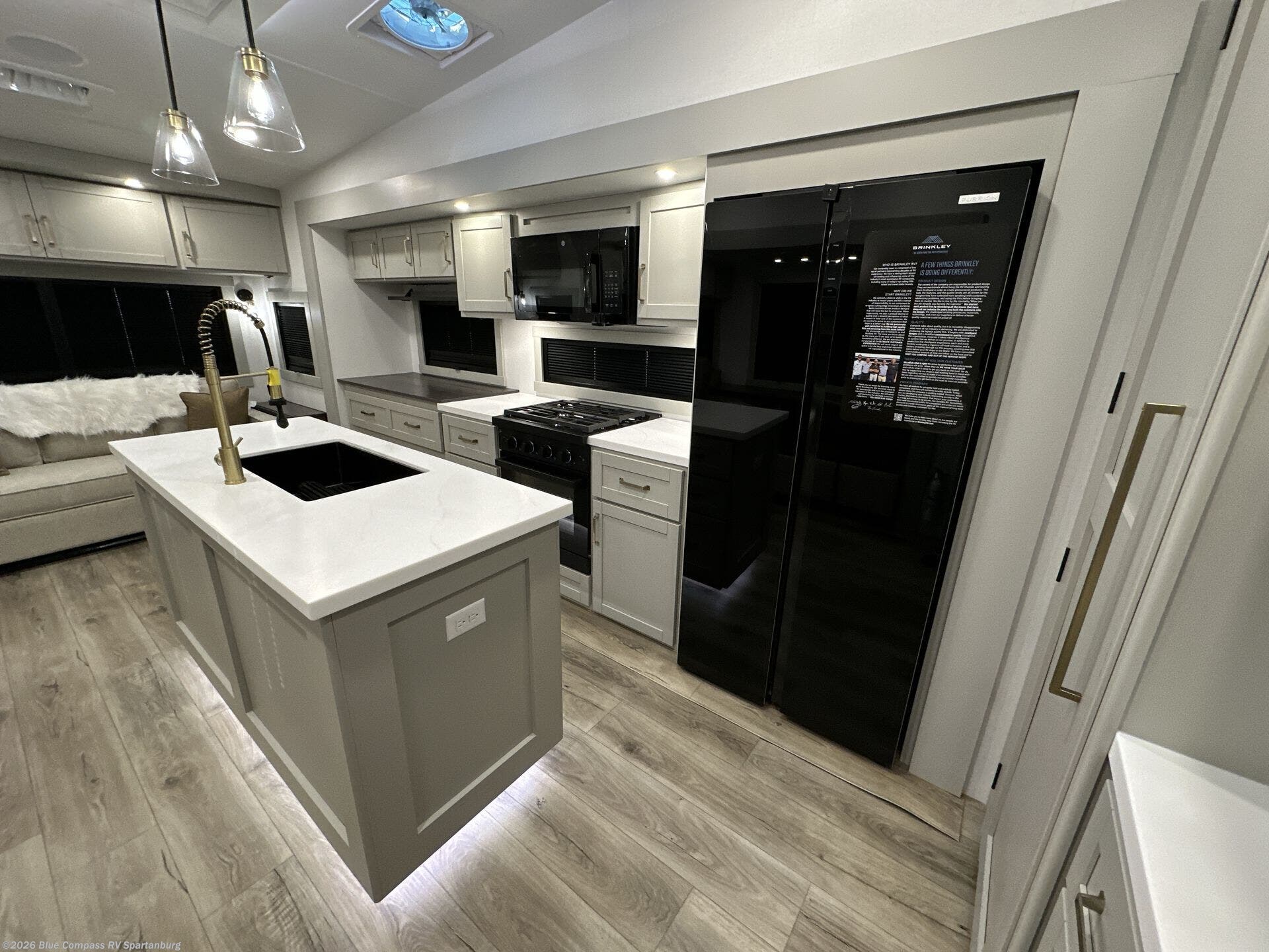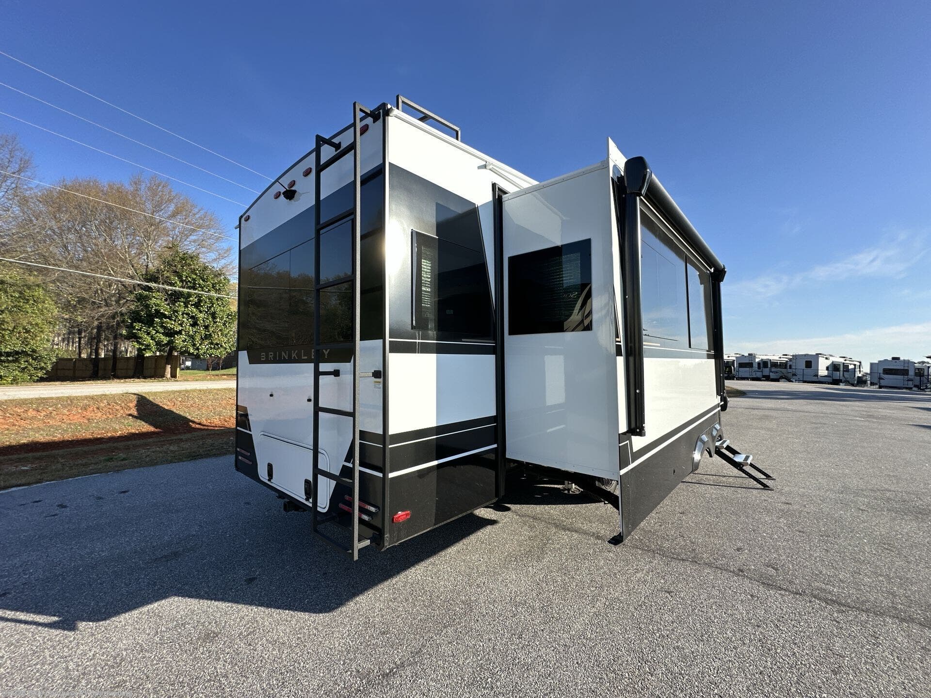 The Brinkley mid-profile Model Z fifth wheels bring you clean lines and an upscale look with plenty of style and exciting new features like the industry first brass plumbing connections. These units also feature an automotive grade front cap, plenty of exterior storage, dual exterior hot and cold showers, and wide stance leveling jacks for easy set up. Residential frameless windows provide a clean look and beautiful views, and ample electrical outlets and 6 USB/USB-C outlets allow all of your electronics and appliances to easily be used and charged.
