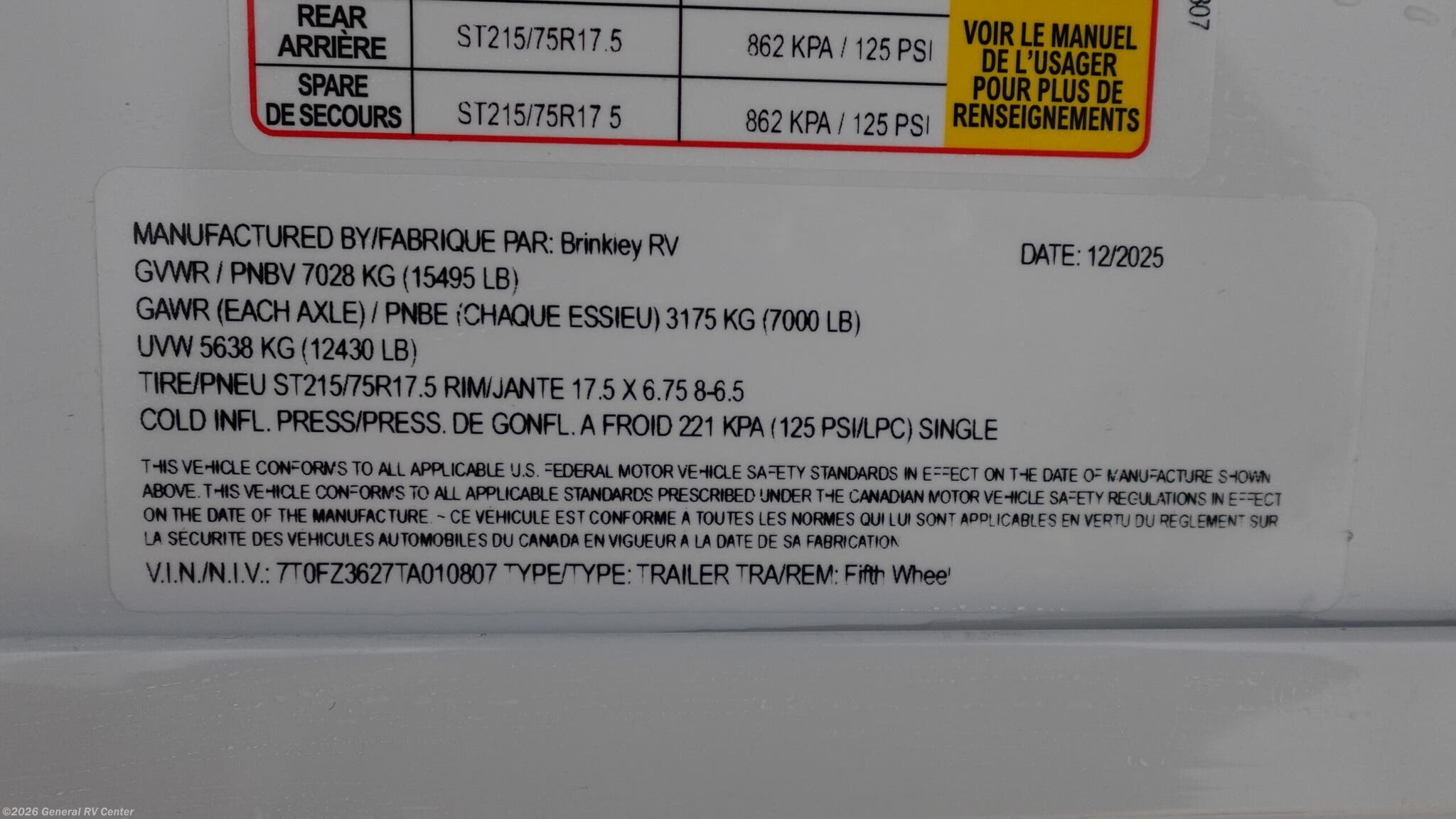 - VIN7T0FZ3627TA010807