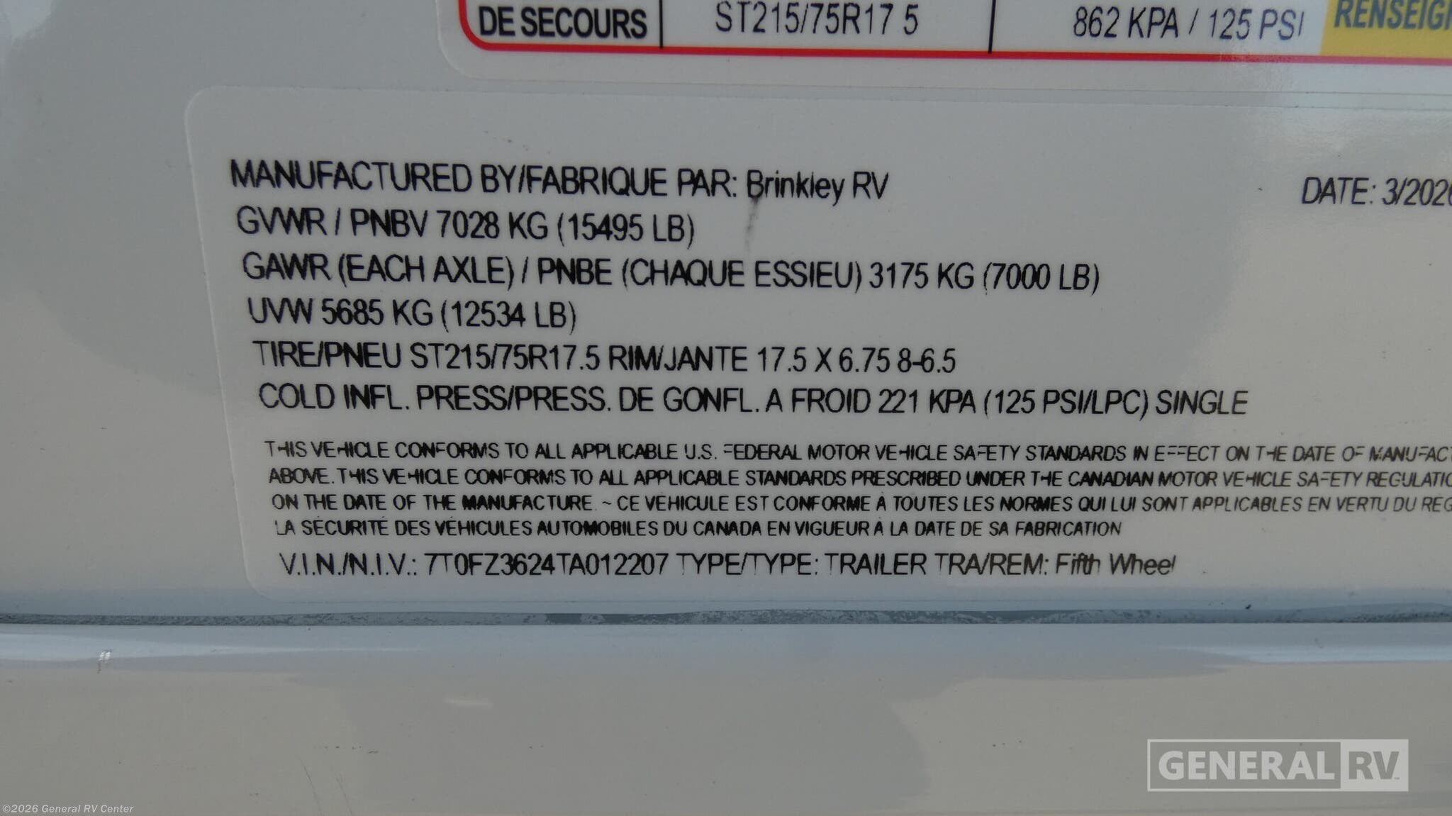 2026 Brinkley RV Model Z 3100 Specifications