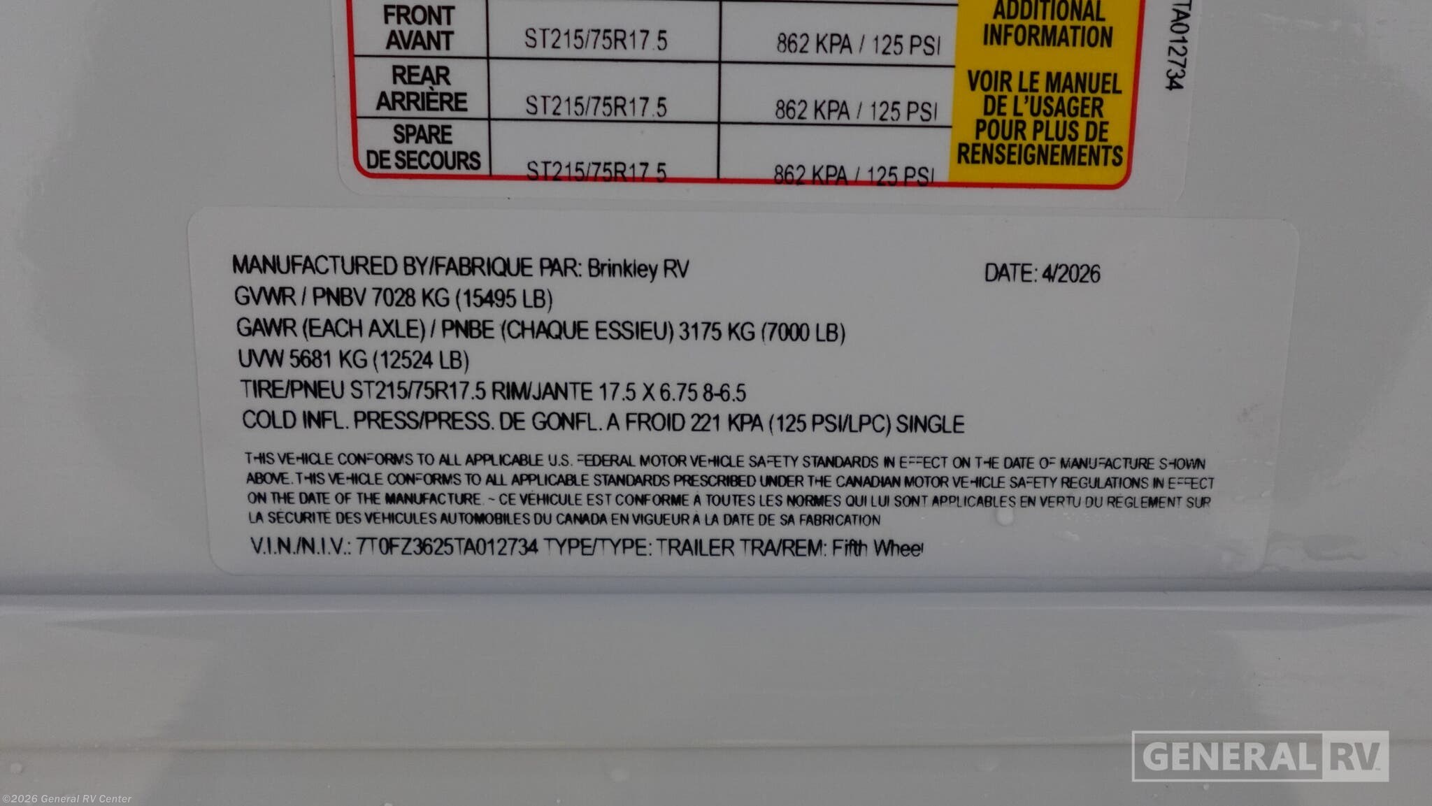 - VIN7T0FZ3625TA012734