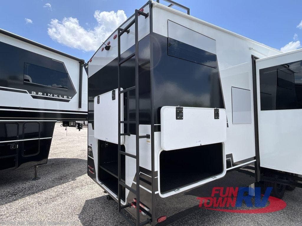 The Brinkley mid-profile Model Z fifth wheels bring you clean lines and an upscale look with plenty of style and exciting new features like the industry first brass plumbing connections. These units also feature an automotive grade front cap, plenty of exterior storage, exterior hot and cold showers, and wide stance leveling jacks for easy set up. Residential frameless windows provide a clean look and beautiful views, and ample electrical outlets and 6 USB/USB-C outlets allow all of your electronics and appliances to easily be used and charged.