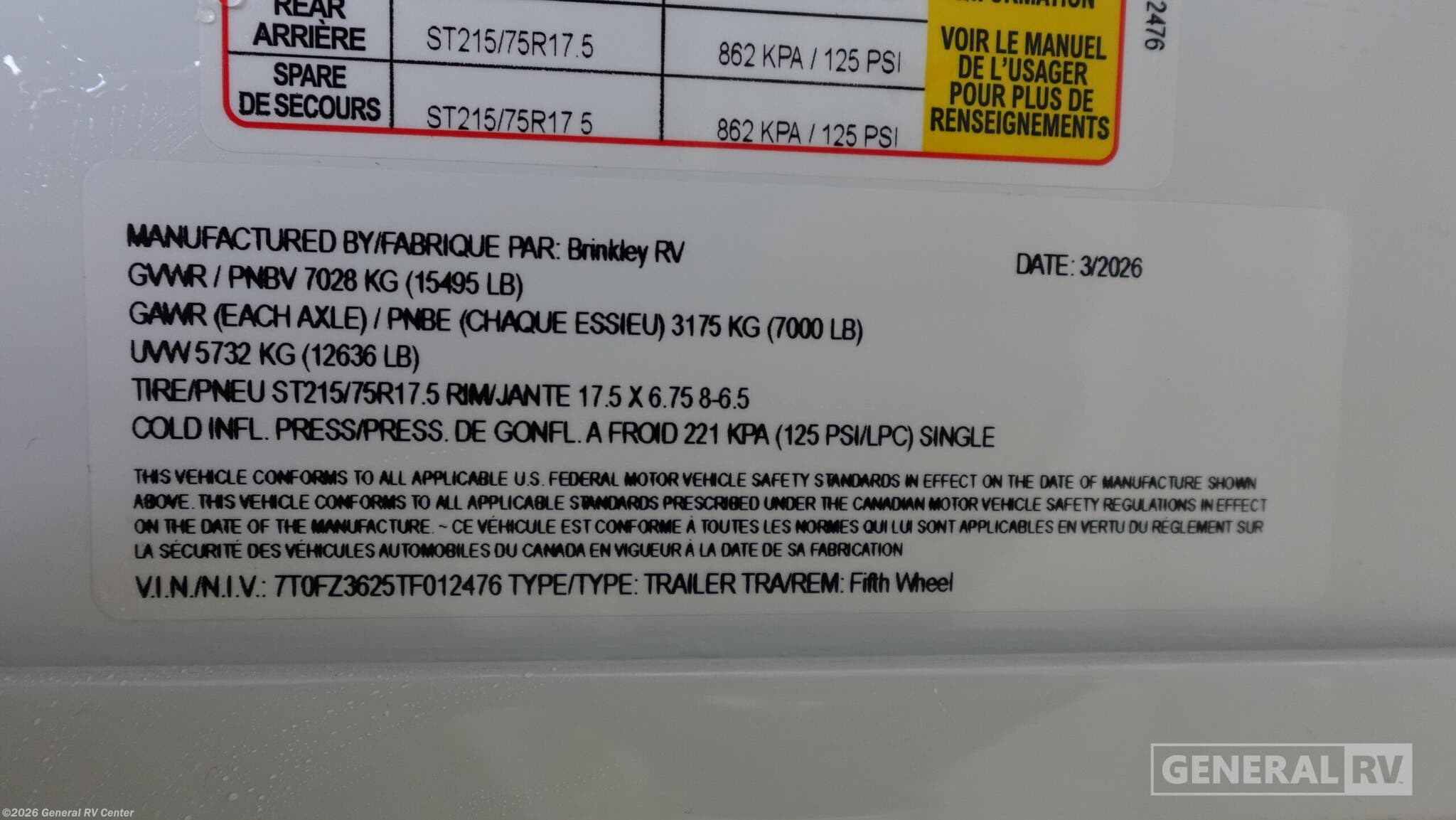 - VIN7T0FZ3625TF012476
