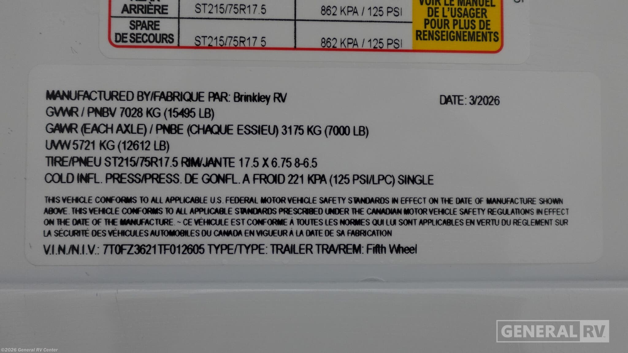2026 Brinkley RV Model Z 3110 Specifications