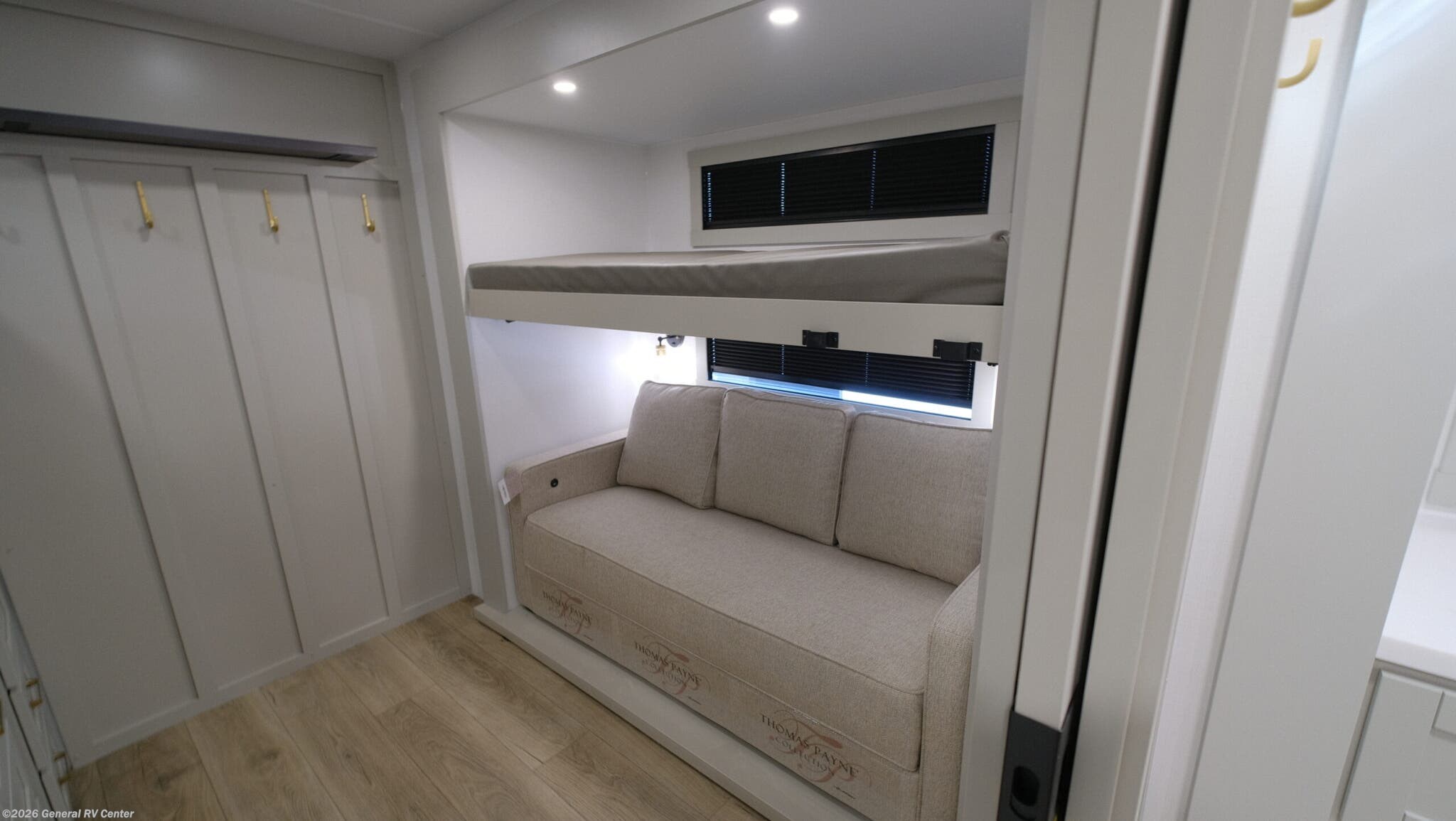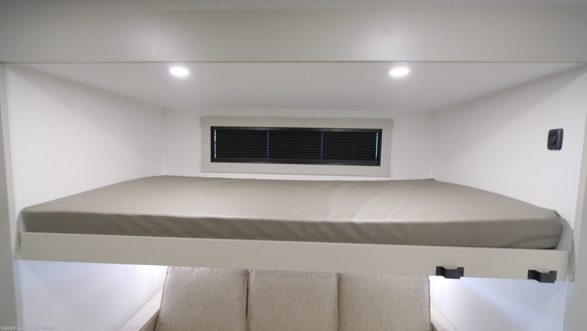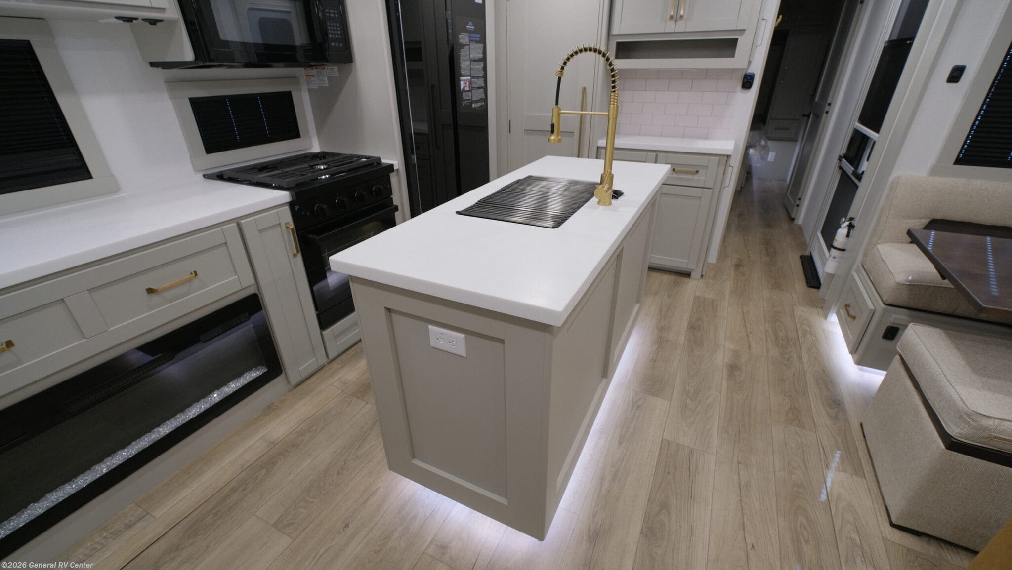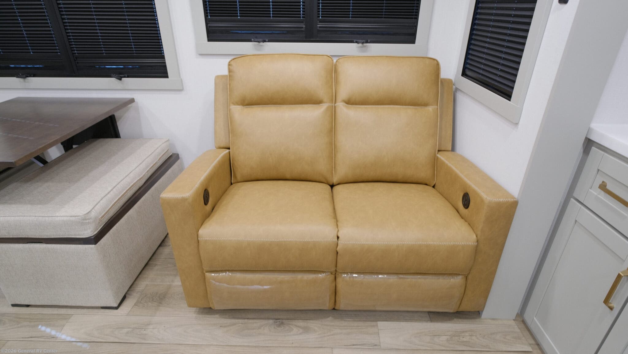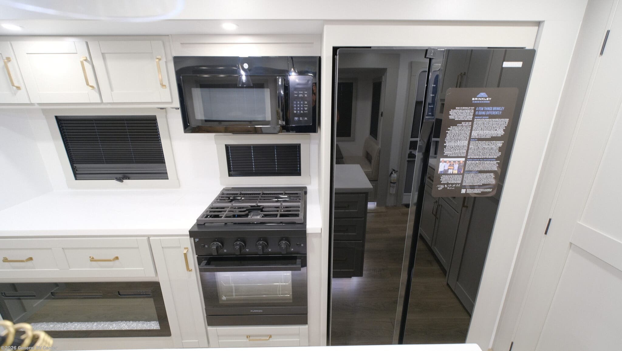 Experience the luxury and innovation of the 2026 Brinkley Model Z Air 315. This RV is designed to be your ultimate home on wheels, offering a spacious and modern interior that comfortably sleeps four. With a length of 38 feet, this model provides ample room for relaxation and entertainment. The dual slide-outs expand the living space, creating an open and inviting atmosphere perfect for family gatherings or quiet evenings. The kitchen is a chef's delight, featuring a sleek island that adds both functionality and style. Whether you're preparing a simple meal or a gourmet feast, you'll have everything you need at your fingertips. The living area, with its cozy seating, invites you to unwind and enjoy the scenic views through large panoramic windows. The master bedroom offers a tranquil retreat with a plush bed, ensuring restful nights after a day of adventure. With a fresh water capacity of 61 gallons and generous gray and black water tanks, the Model Z Air 315 is ready for extended journeys. The dual awnings provide shaded outdoor space, perfect for enjoying the great outdoors. Discover the perfect blend of comfort and style in this remarkable RV. For more information, visit your nearest General RV dealership.