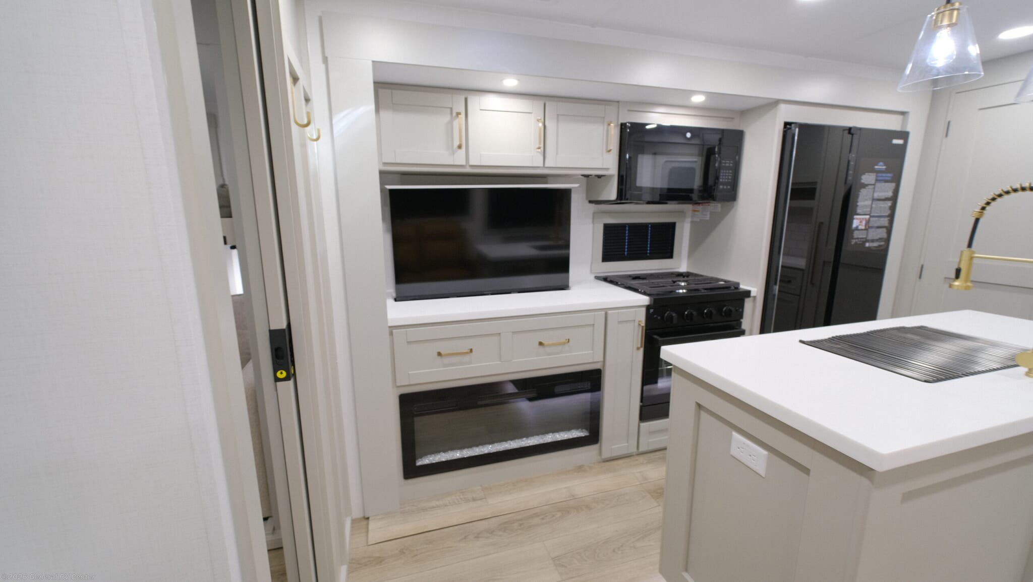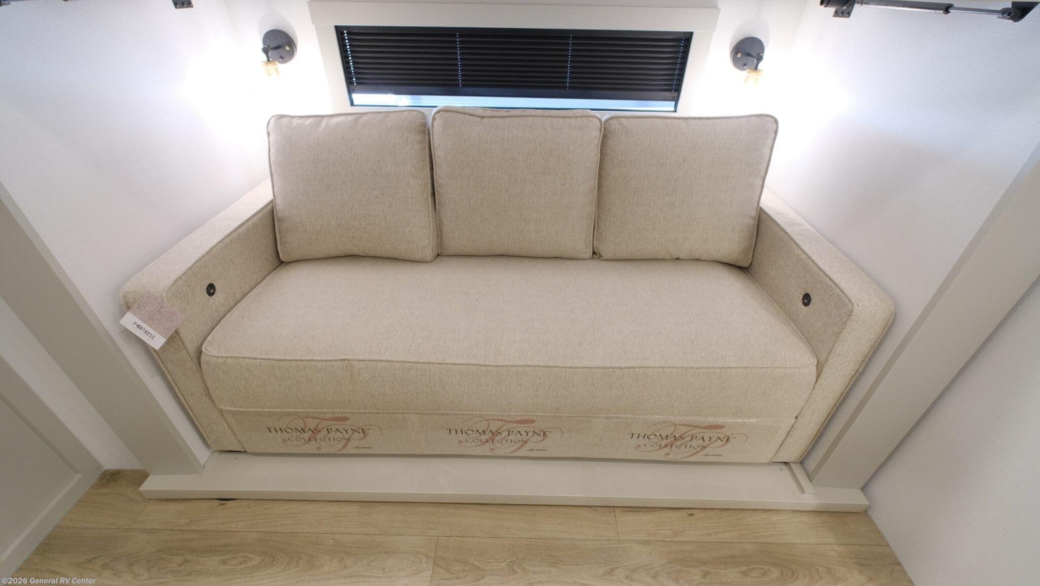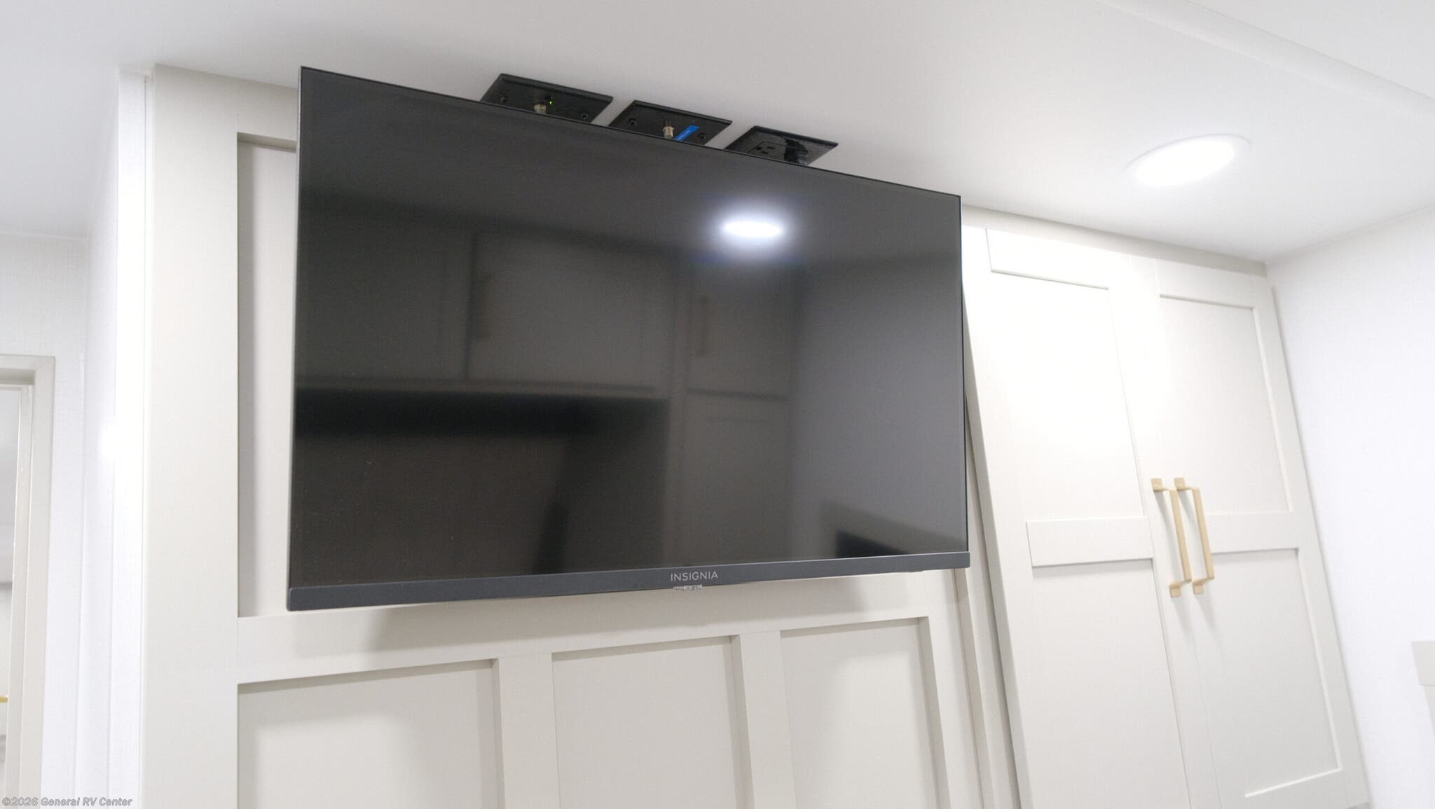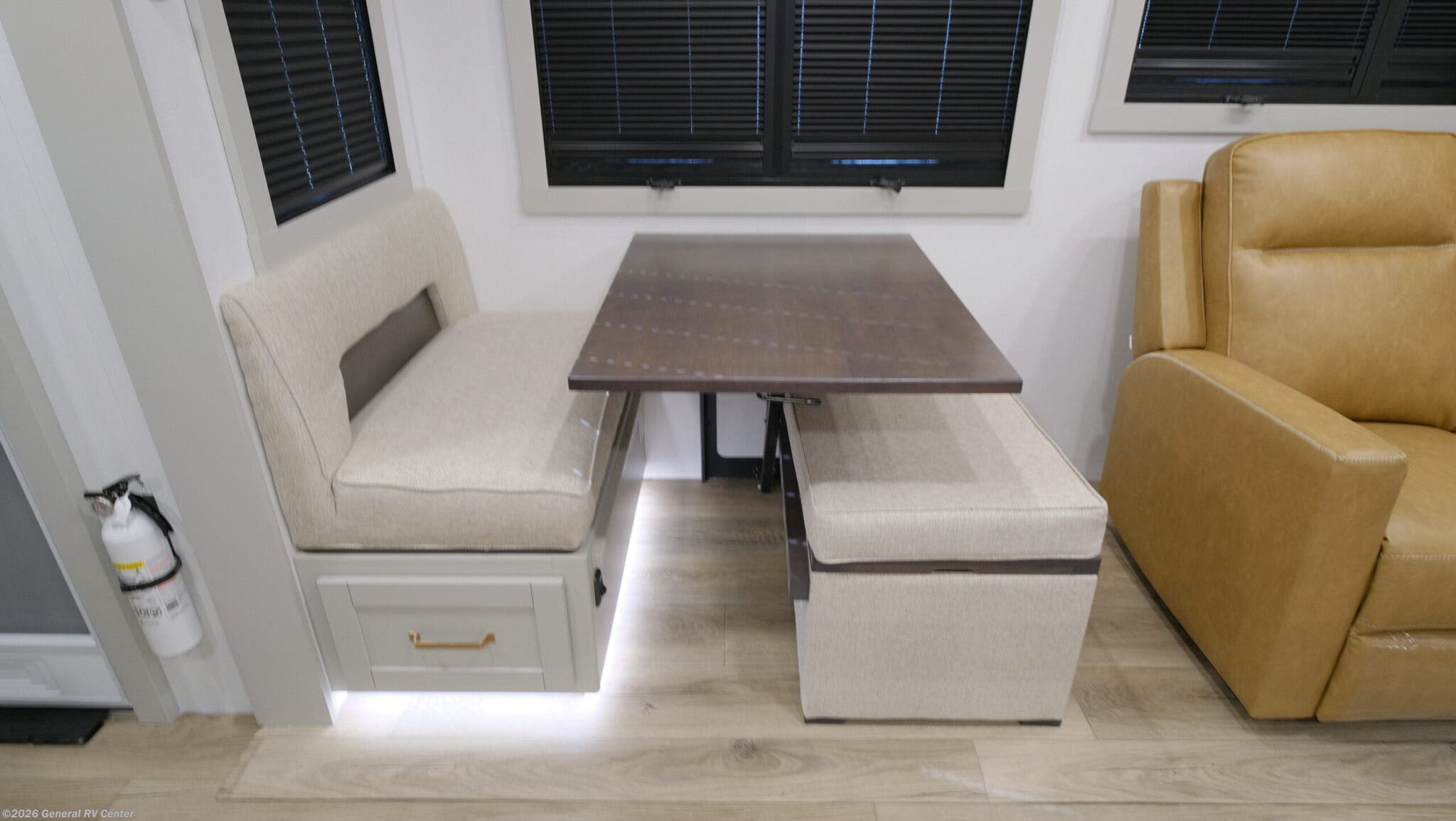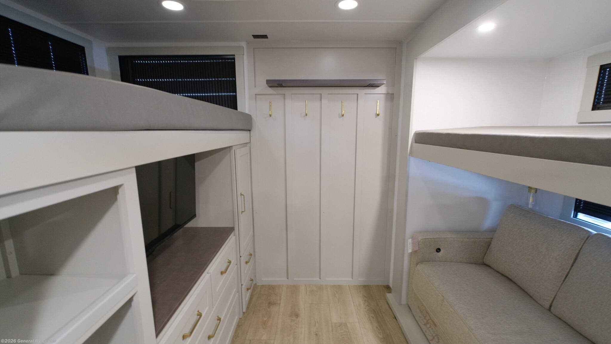 Experience the luxury and innovation of the 2026 Brinkley Model Z Air 315. This RV is designed to be your ultimate home on wheels, offering a spacious and modern interior that comfortably sleeps four. With a length of 38 feet, this model provides ample room for relaxation and entertainment. The dual slide-outs expand the living space, creating an open and inviting atmosphere perfect for family gatherings or quiet evenings. The kitchen is a chef's delight, featuring a sleek island that adds both functionality and style. Whether you're preparing a simple meal or a gourmet feast, you'll have everything you need at your fingertips. The living area, with its cozy seating, invites you to unwind and enjoy the scenic views through large panoramic windows. The master bedroom offers a tranquil retreat with a plush bed, ensuring restful nights after a day of adventure. With a fresh water capacity of 61 gallons and generous gray and black water tanks, the Model Z Air 315 is ready for extended journeys. The dual awnings provide shaded outdoor space, perfect for enjoying the great outdoors. Discover the perfect blend of comfort and style in this remarkable RV. For more information, visit your nearest General RV dealership.
