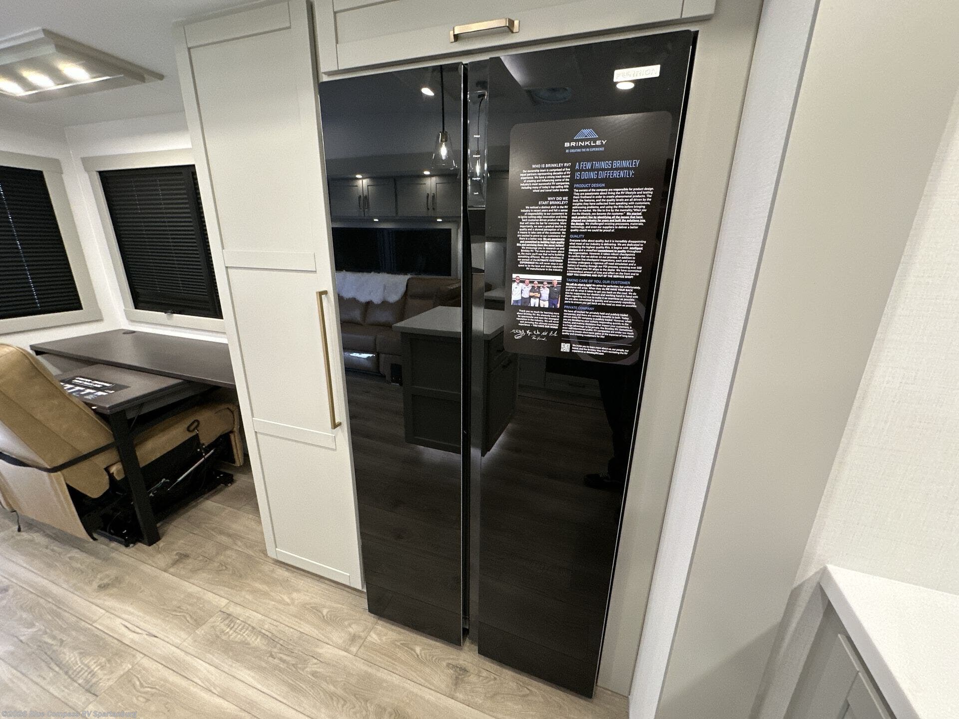 The Brinkley mid-profile Model Z fifth wheels bring you clean lines and an upscale look with plenty of style and exciting new features like the industry first brass plumbing connections. These units also feature an automotive grade front cap, plenty of exterior storage, exterior hot and cold showers, and wide stance leveling jacks for easy set up. Residential frameless windows provide a clean look and beautiful views, and ample electrical outlets and 6 USB/USB-C outlets allow all of your electronics and appliances to easily be used and charged.