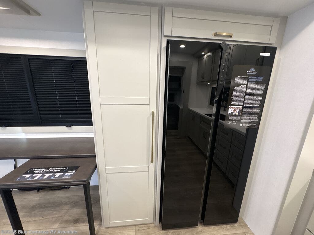 The Brinkley mid-profile Model Z fifth wheels bring you clean lines and an upscale look with plenty of style and exciting new features like the industry first brass plumbing connections. These units also feature an automotive grade front cap, plenty of exterior storage, exterior hot and cold showers, and wide stance leveling jacks for easy set up. Residential frameless windows provide a clean look and beautiful views, and ample electrical outlets and 6 USB/USB-C outlets allow all of your electronics and appliances to easily be used and charged.
