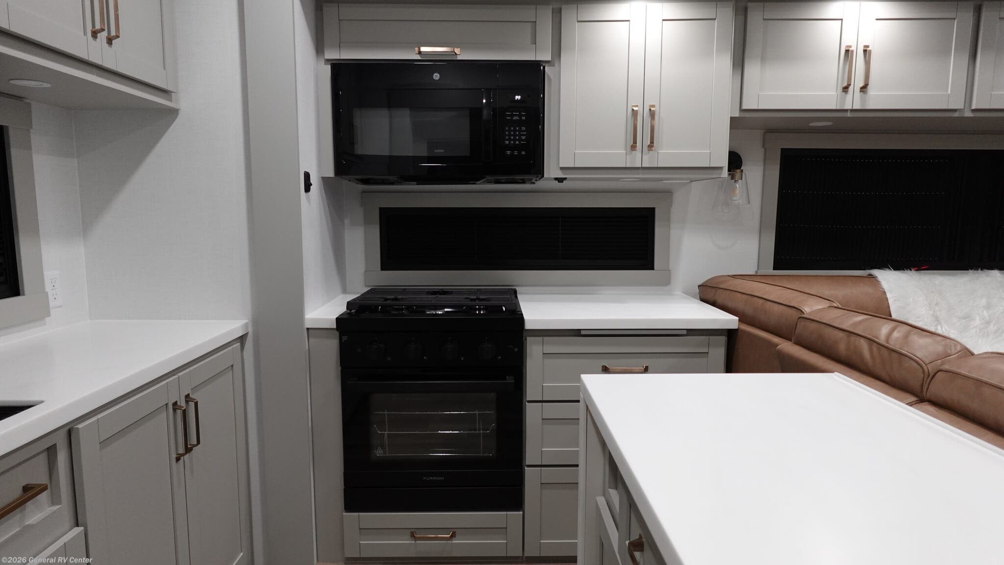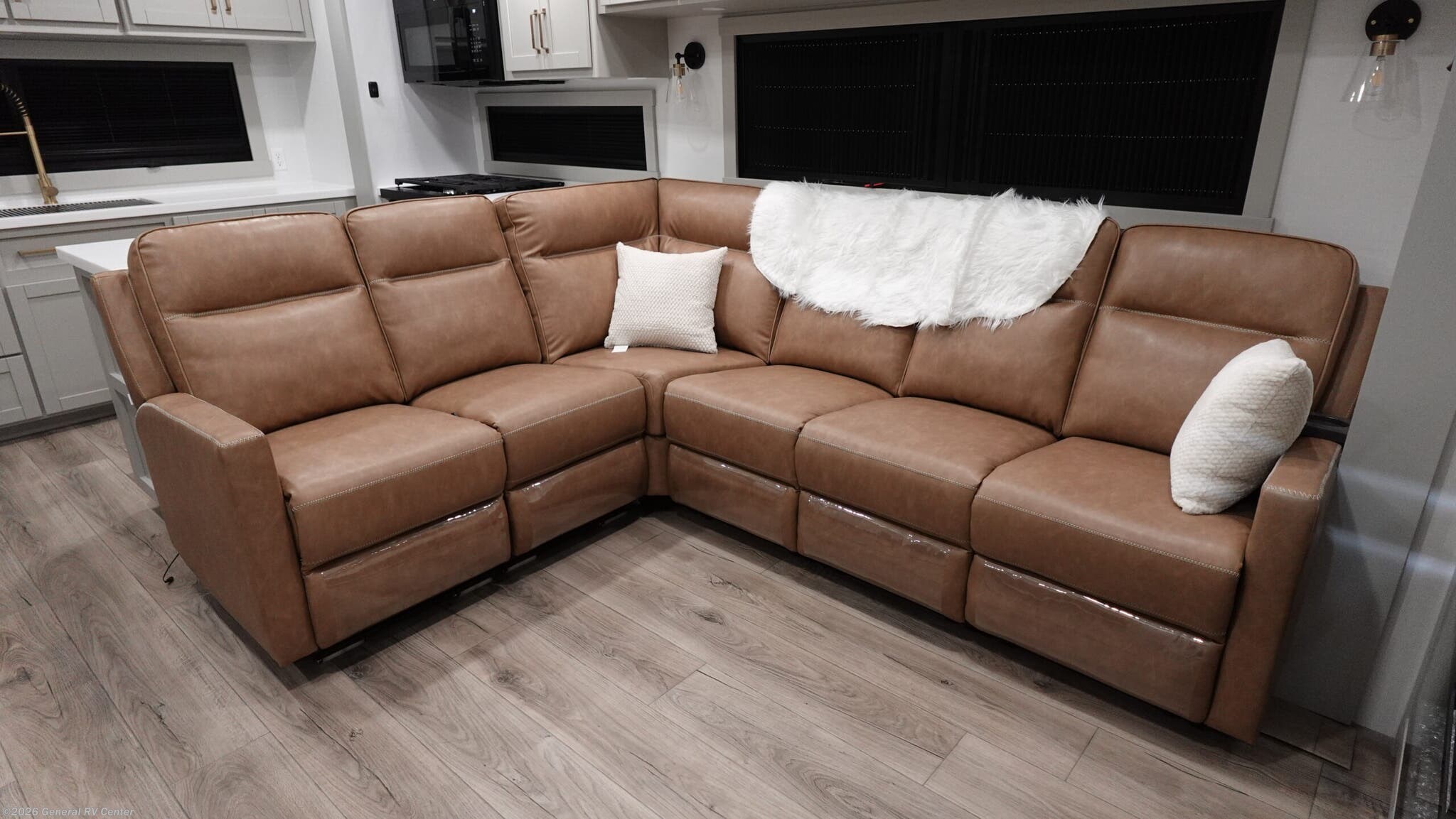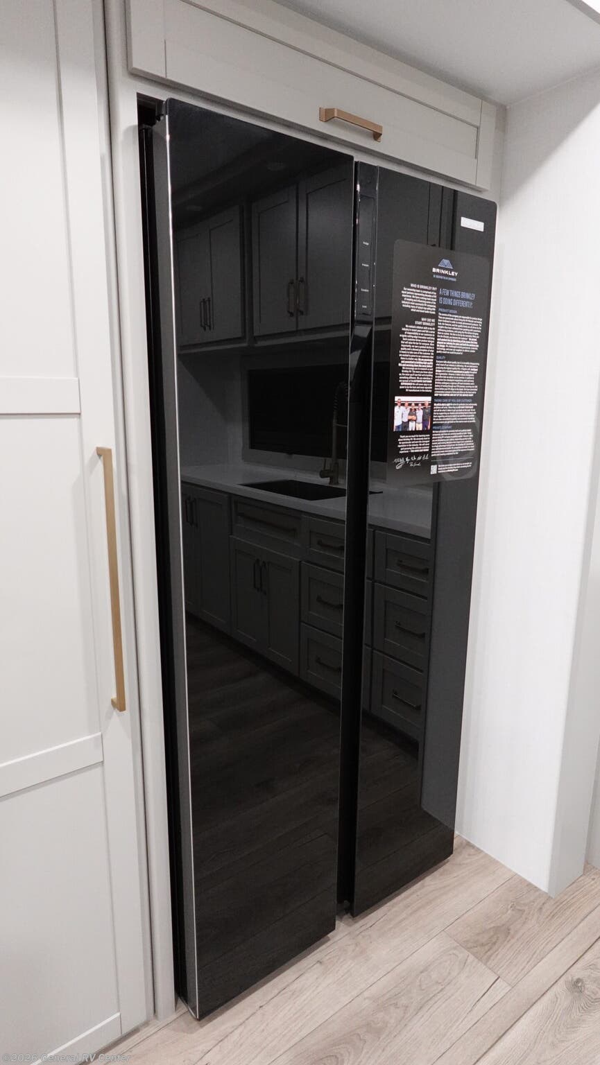 **Brinkley Model Z 3200 fifth wheel highlights:** * L-Sofa with Five Recliners * Flip-Up Countertop * Fireplace * Dual Awnings * Shoe Storage Escape to a world of comfort and luxury with this incredible fifth wheel! The living area features a plush L-sofa, five recliners, and a warm fireplace. The versatile dining table/L desk seats up to four people, making it perfect for meals, work, or play. Ample shoe storage and a convenient spot for pet bowls enhance comfort and practicality. The kitchen offers stunning solid surface countertops, dishwasher prep, a residential microwave, and a three-burner cooktop. The expansive pantry with pull-out drawers provides ample storage for your favorite ingredients and cooking essentials. The full bathroom is a serene oasis, featuring a linen closet for added storage and convenience. The front bedroom is a peaceful sanctuary, featuring a spacious king bed, shelves, and a sliding dresser top with hidden storage. The generous wardrobe and shoe rack provide ample storage for your clothes and shoes. The Brinkley mid-profile Model Z fifth wheels bring you clean lines and an upscale look with plenty of style and exciting new features like the industry first brass plumbing connections. These units also feature an automotive grade front cap, plenty of exterior storage, exterior hot and cold showers, and wide stance leveling jacks for easy set up. Residential frameless windows provide a clean look and beautiful views, and ample electrical outlets and 6 USB/USB-C outlets allow all of your electronics and appliances to easily be used and charged.