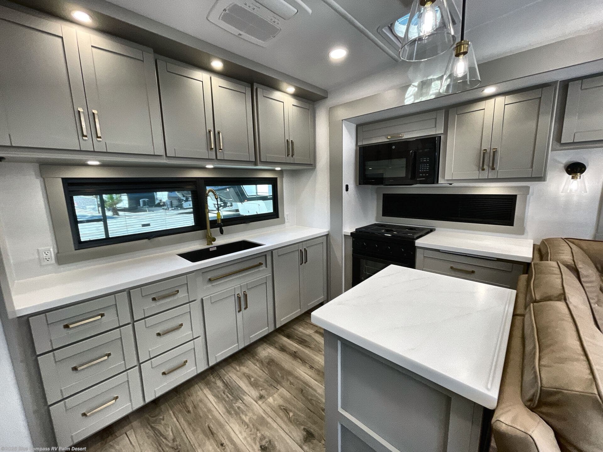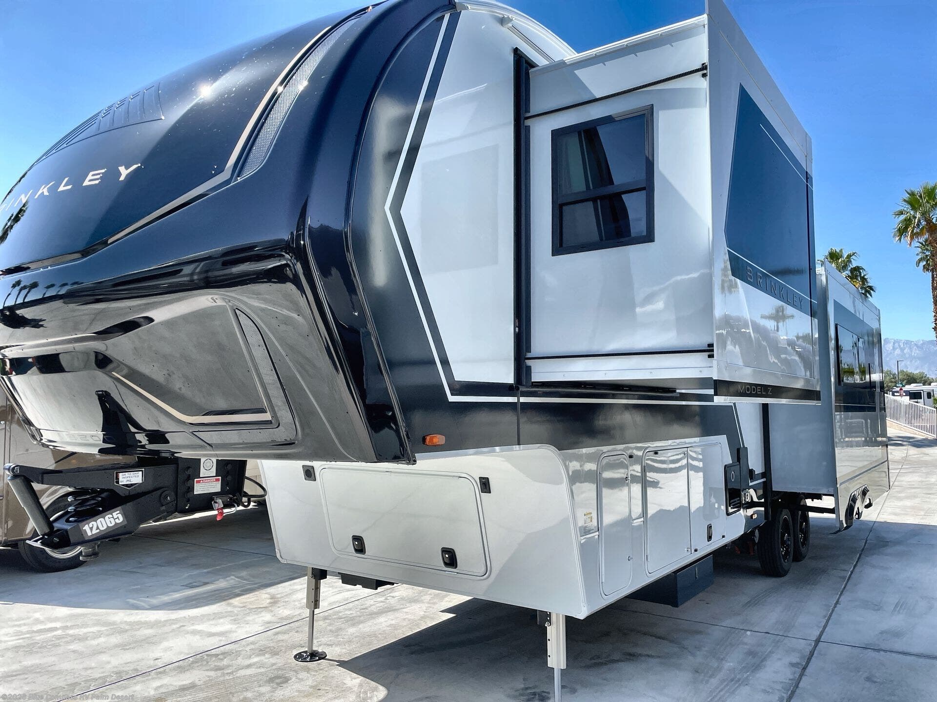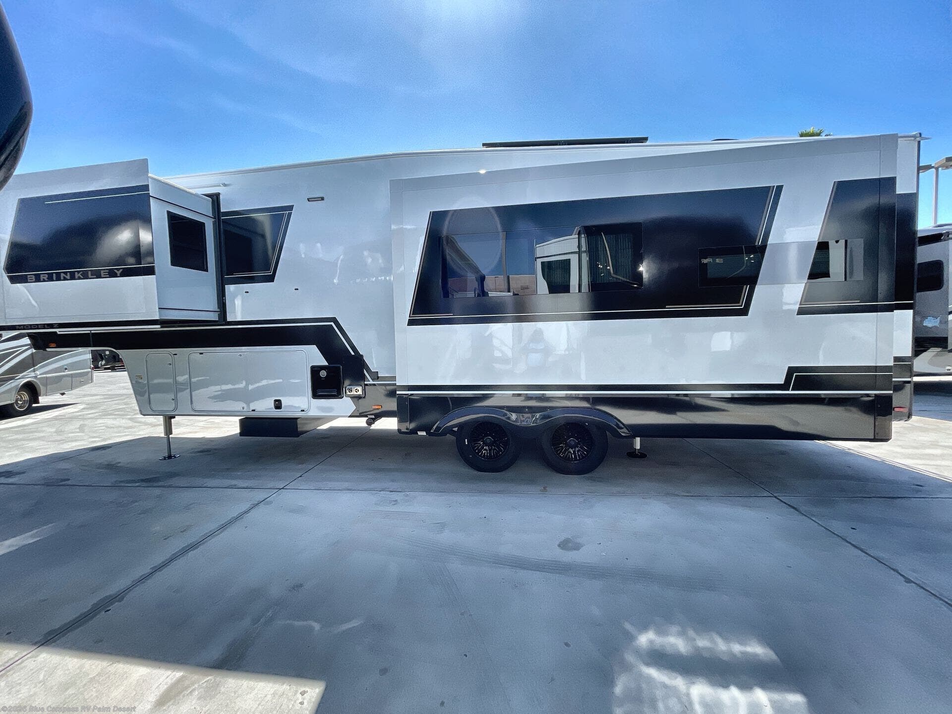 The Brinkley mid-profile Model Z fifth wheels bring you clean lines and an upscale look with plenty of style and exciting new features like the industry first brass plumbing connections. These units also feature an automotive grade front cap, plenty of exterior storage, exterior hot and cold showers, and wide stance leveling jacks for easy set up. Residential frameless windows provide a clean look and beautiful views, and ample electrical outlets and 6 USB/USB-C outlets allow all of your electronics and appliances to easily be used and charged.