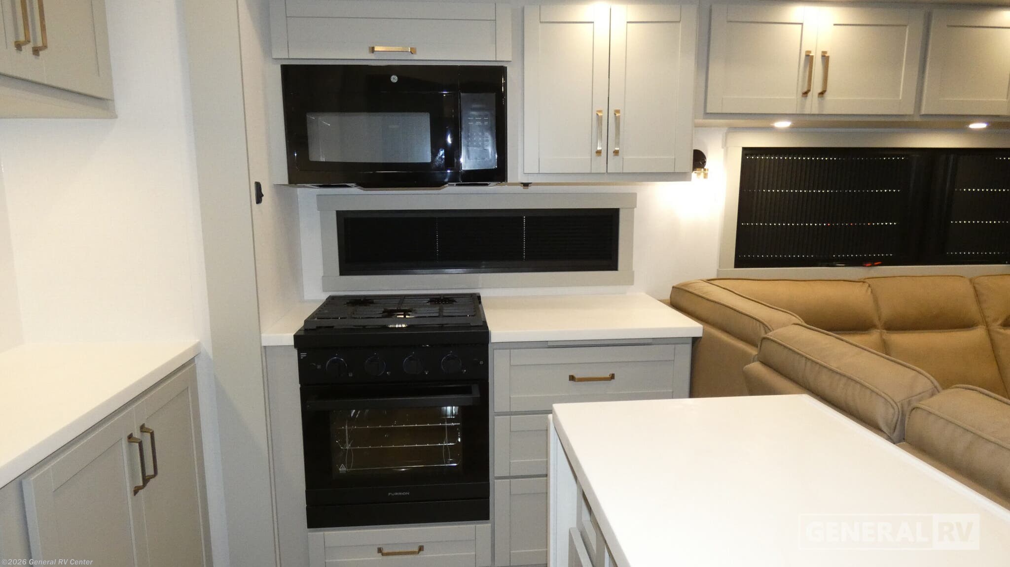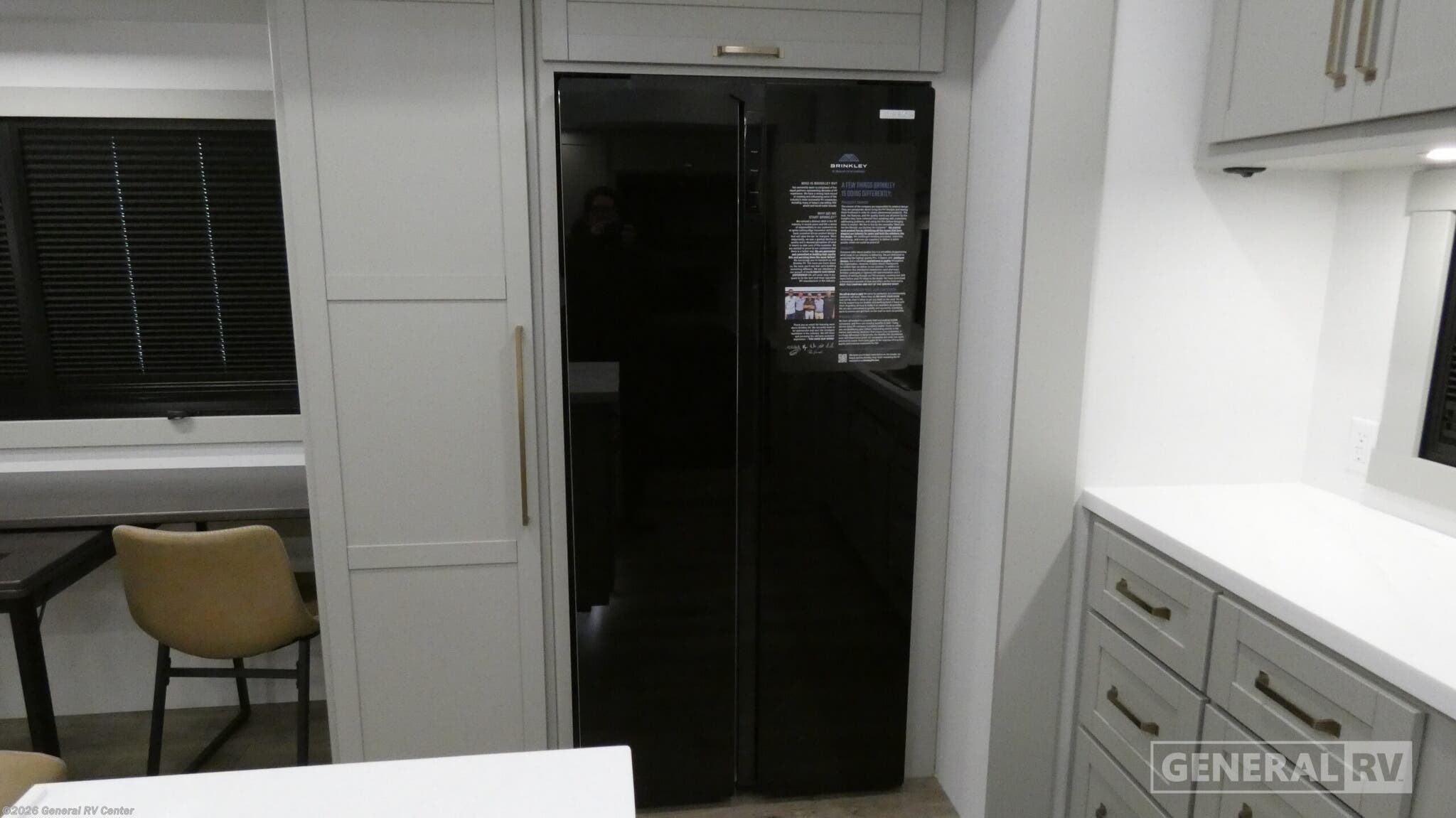 Brinkley Model Z 3200 fifth wheel highlights: L-Sofa with Five Recliners Flip-Up Countertop Fireplace Dual Awnings Shoe Storage Escape to a world of comfort and luxury with this incredible fifth wheel! The living area features a plush L-sofa, five recliners, and a warm fireplace. The versatile dining table/L desk seats up to four people, making it perfect for meals, work, or play. Ample shoe storage and a convenient spot for pet bowls enhance comfort and practicality. The kitchen offers stunning solid surface countertops, dishwasher prep, a residential microwave, and a three-burner cooktop. The expansive pantry with pull-out drawers provides ample storage for your favorite ingredients and cooking essentials. The full bathroom is a serene oasis, featuring a linen closet for added storage and convenience. The front bedroom is a peaceful sanctuary, featuring a spacious king bed, shelves, and a sliding dresser top with hidden storage. The generous wardrobe and shoe rack provide ample storage for your clothes and shoes. The Brinkley mid-profile Model Z fifth wheels bring you clean lines and an upscale look with plenty of style and exciting new features like the industry first brass plumbing connections. These units also feature an automotive grade front cap, plenty of exterior storage, exterior hot and cold showers, and wide stance leveling jacks for easy set up. Residential frameless windows provide a clean look and beautiful views, and ample electrical outlets and 6 USB/USB-C outlets allow all of your electronics and appliances to easily be used and charged.