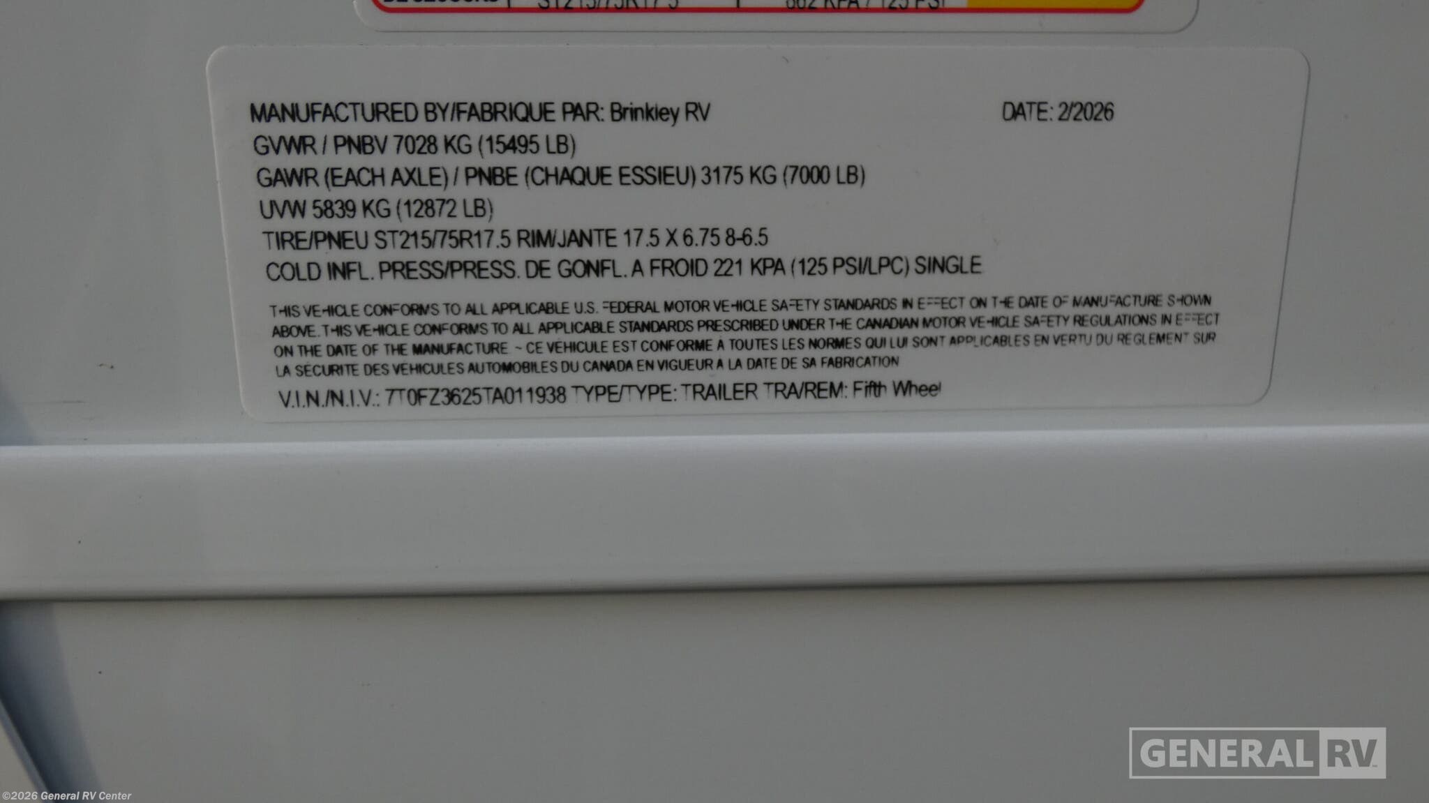 Looking to buy a 2026 Brinkley RV Model Z Fifth Wheel RV?