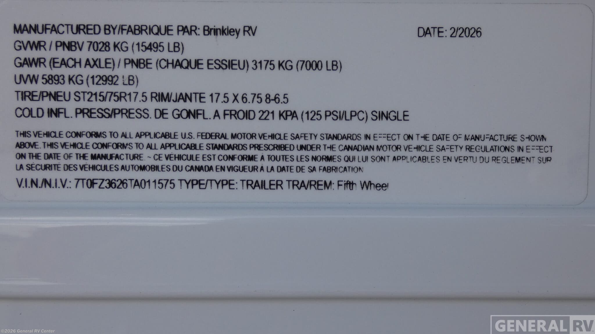 Looking to buy a 2026 Brinkley RV Model Z Fifth Wheel RV?