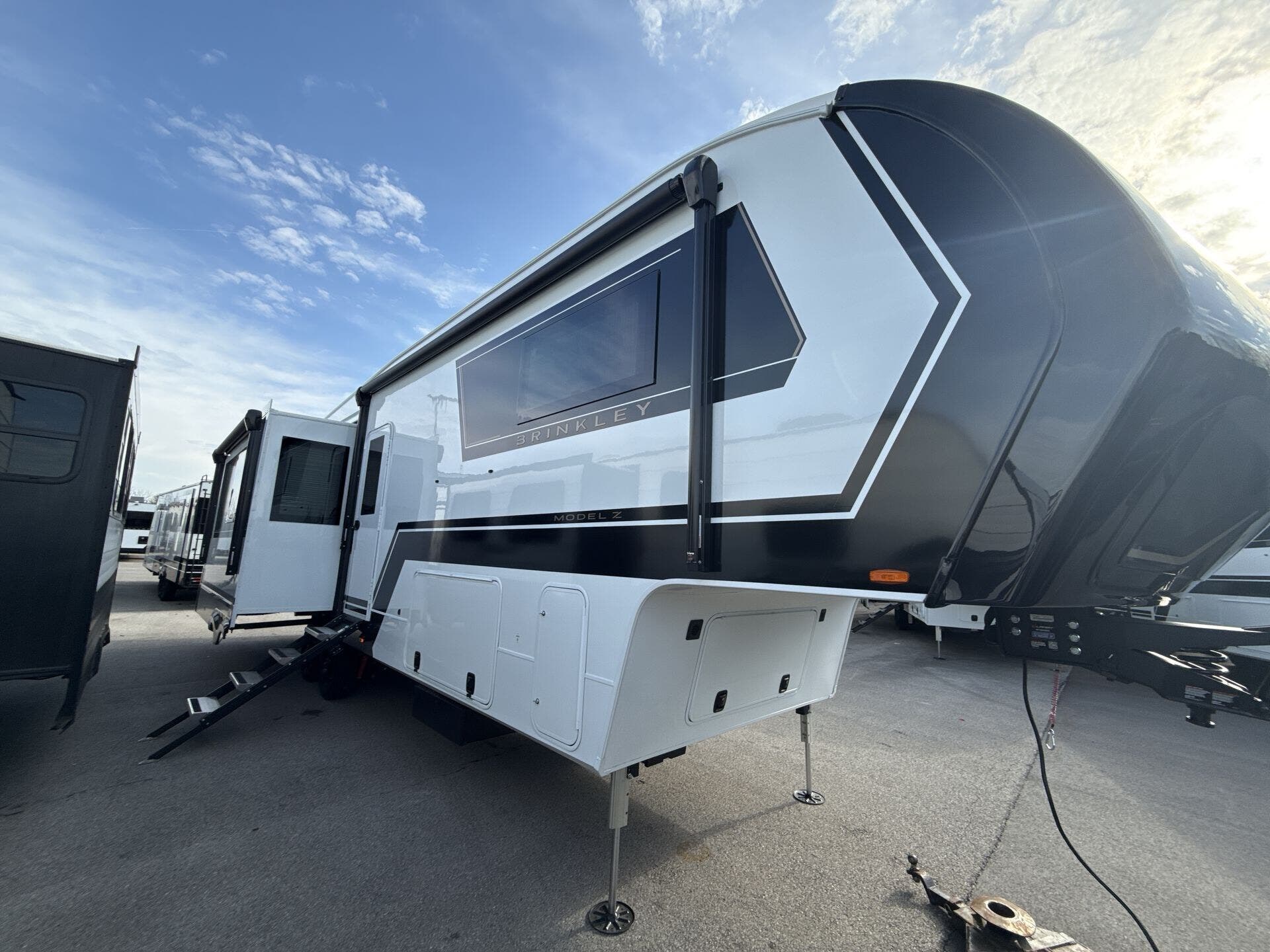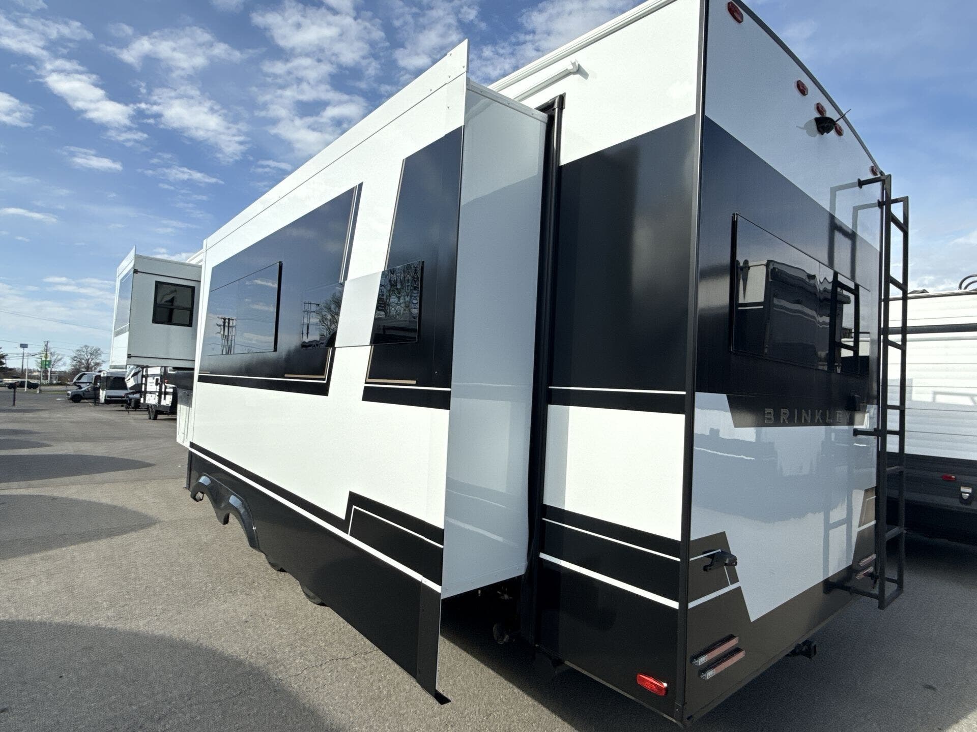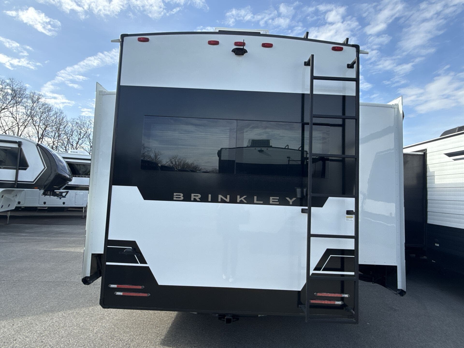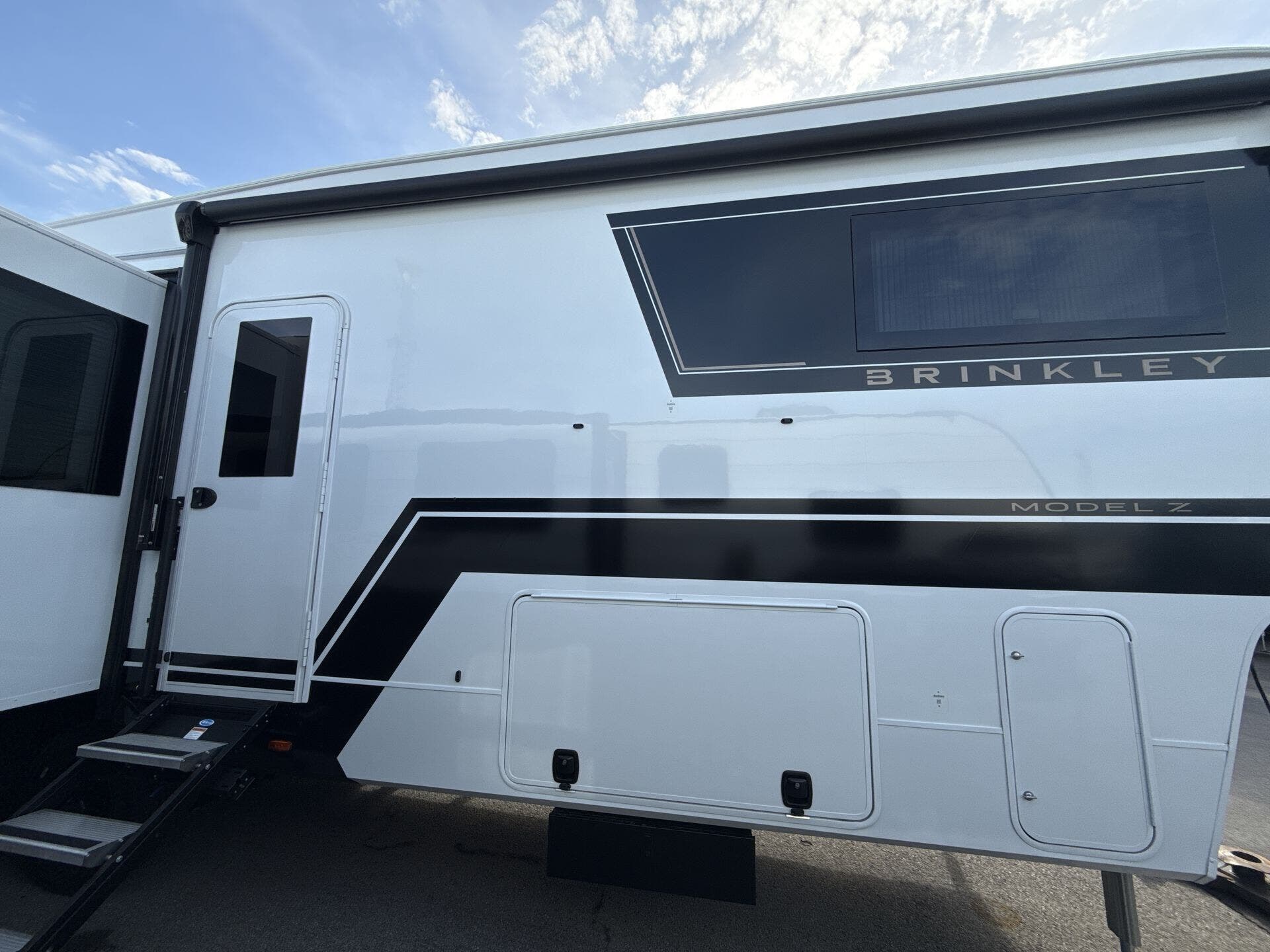 The Brinkley mid-profile Model Z fifth wheels bring you clean lines and an upscale look with plenty of style and exciting new features like the industry first brass plumbing connections. These units also feature an automotive grade front cap, plenty of exterior storage, exterior hot and cold showers, and wide stance leveling jacks for easy set up. Residential frameless windows provide a clean look and beautiful views, and ample electrical outlets and 6 USB/USB-C outlets allow all of your electronics and appliances to easily be used and charged.