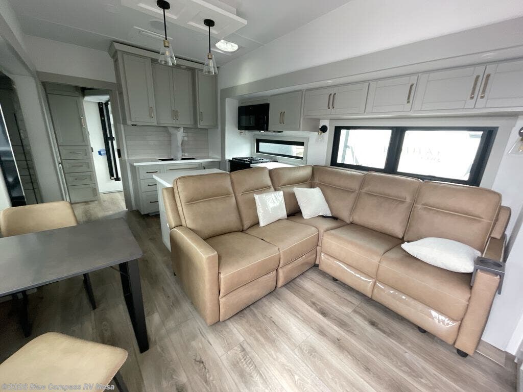 The Brinkley mid-profile Model Z fifth wheels bring you clean lines and an upscale look with plenty of style and exciting new features like the industry first brass plumbing connections. These units also feature an automotive grade front cap, plenty of exterior storage, exterior hot and cold showers, and wide stance leveling jacks for easy set up. Residential frameless windows provide a clean look and beautiful views, and ample electrical outlets and 6 USB/USB-C outlets allow all of your electronics and appliances to easily be used and charged.