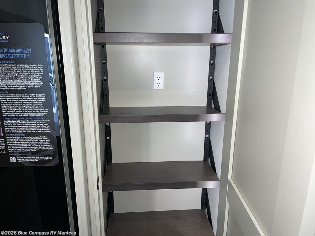 The Brinkley mid-profile Model Z fifth wheels bring you clean lines and an upscale look with plenty of style and exciting new features like the industry first brass plumbing connections. These units also feature an automotive grade front cap, plenty of exterior storage, exterior hot and cold showers, and wide stance leveling jacks for easy set up. Residential frameless windows provide a clean look and beautiful views, and ample electrical outlets and 6 USB/USB-C outlets allow all of your electronics and appliances to easily be used and charged.