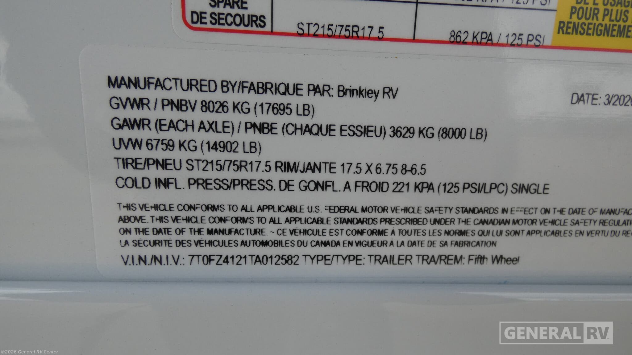 2026 Brinkley RV Model Z 3420 Specifications