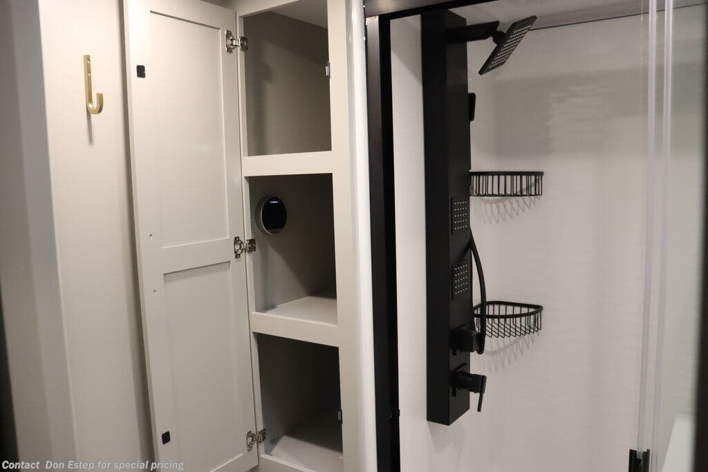 - Mid-Coach Pass-Through Storage Compartment w/ Motion Lighting & Power Outlets Storage Compartment (Heated & Insulated)