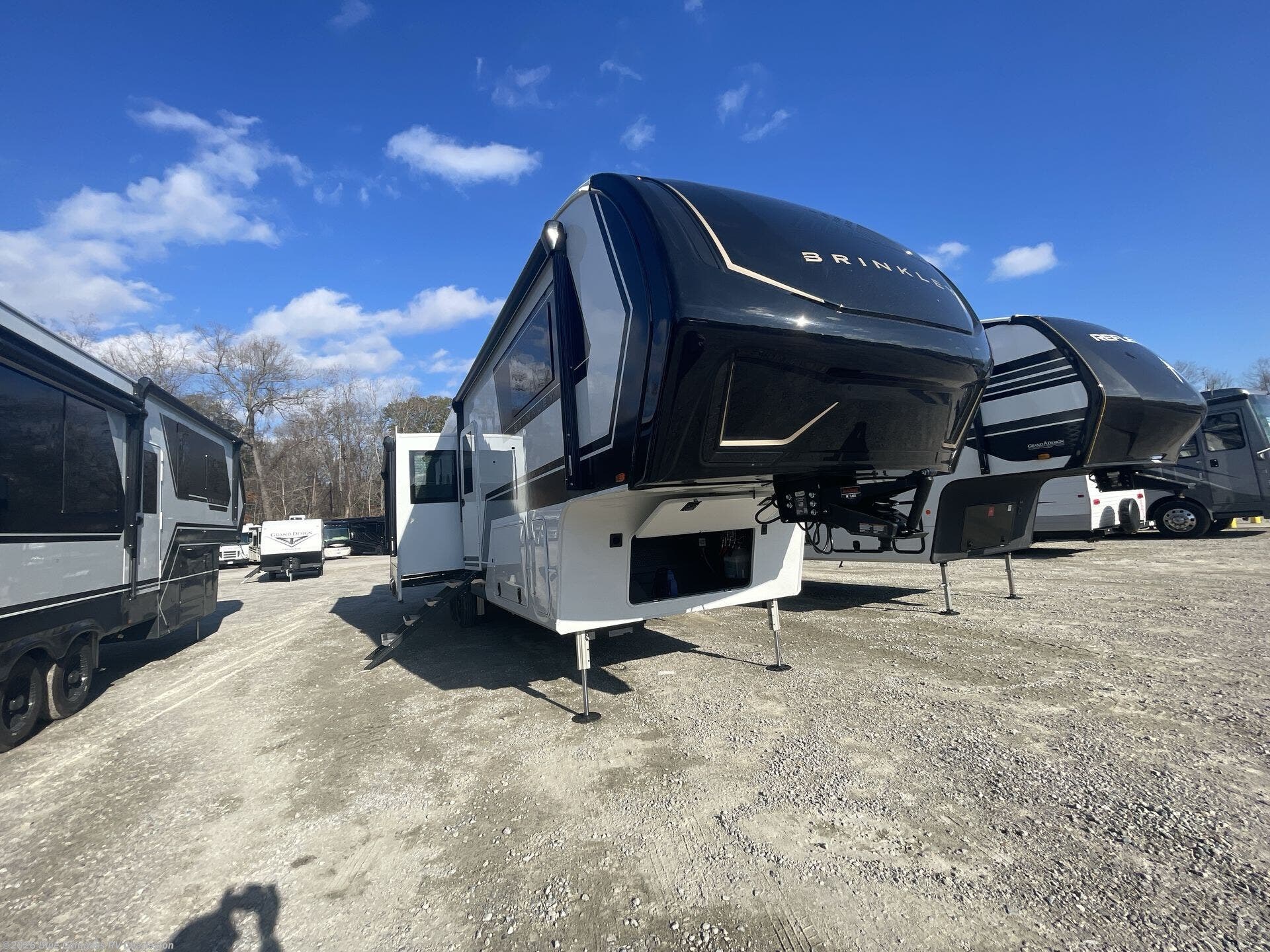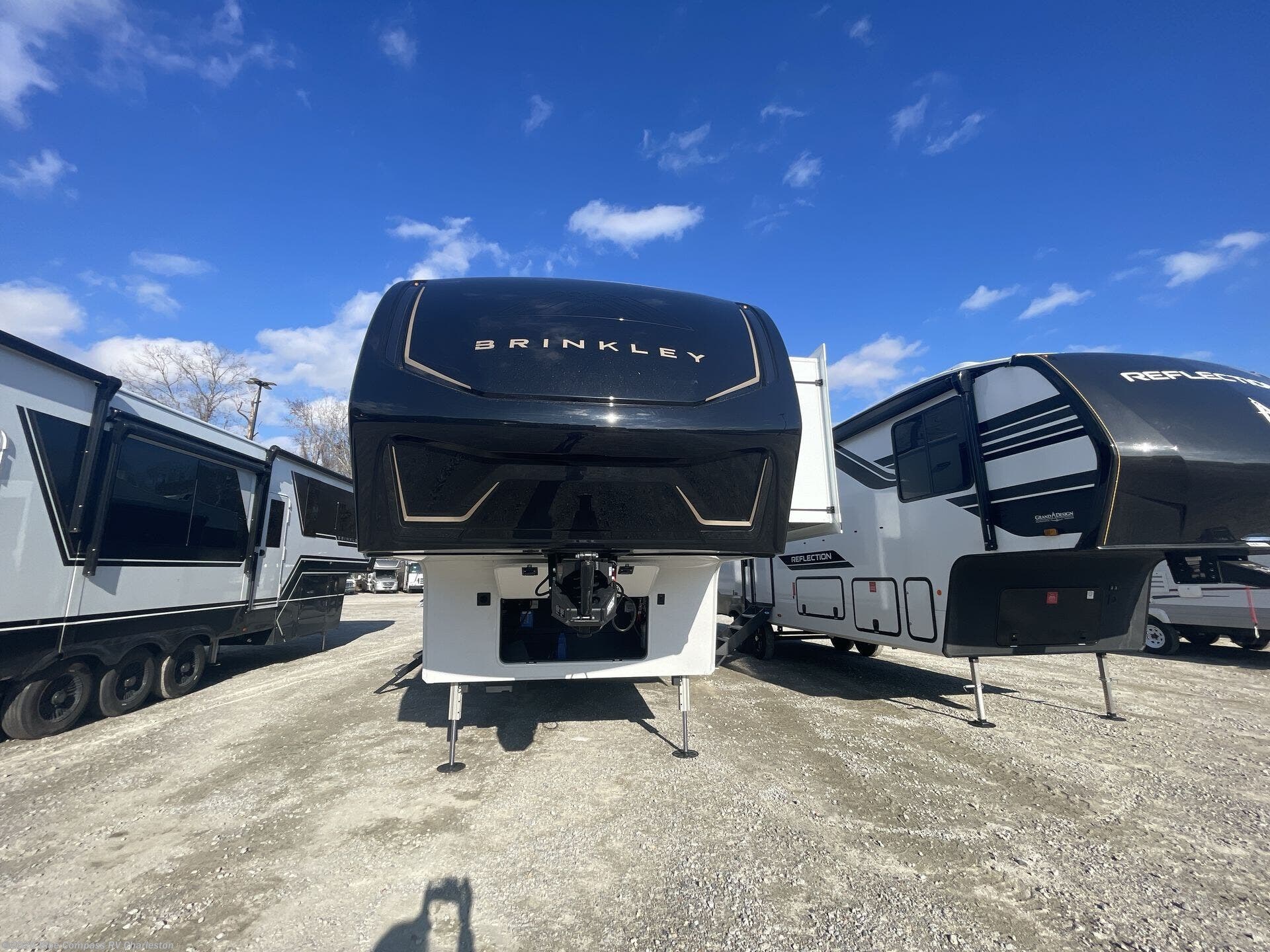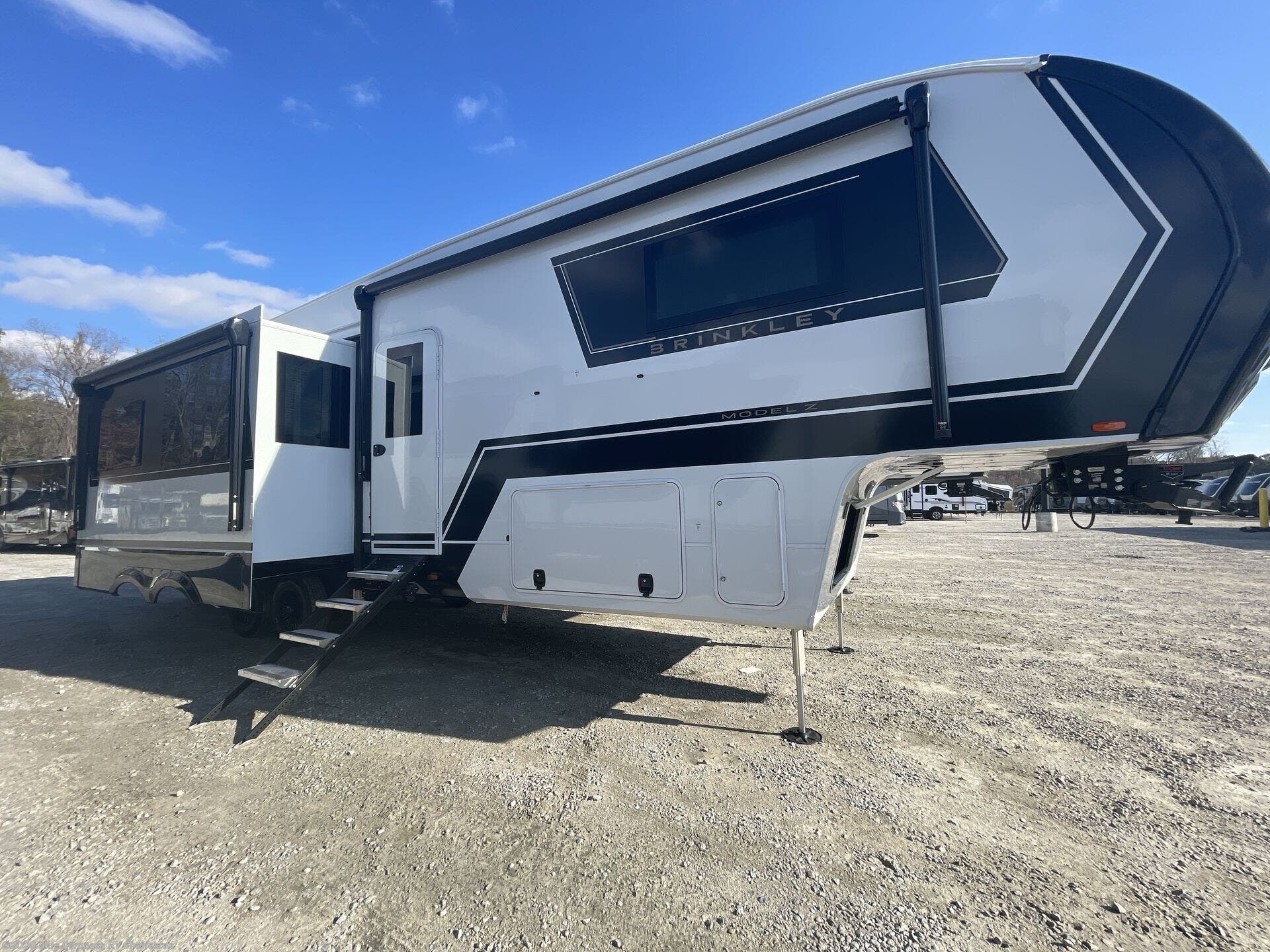 The Brinkley mid-profile Model Z fifth wheels bring you clean lines and an upscale look with plenty of style and exciting new features like the industry first brass plumbing connections. These units also feature an automotive grade front cap, plenty of exterior storage, dual exterior hot and cold showers, and wide stance leveling jacks for easy set up. Residential frameless windows provide a clean look and beautiful views, and ample electrical outlets and 6 USB/USB-C outlets allow all of your electronics and appliances to easily be used and charged.