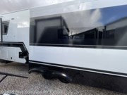 This unit is perfect for weekends at the campground or extended stays! There is ample seating with a sliding desk/dining table, 62" theater seating, and a 72" tri-fold sofa along the rear wall. You can easily relax and enjoy the telescoping TV with a cozy fireplace below. The kitchen offers all that you need to prepare and cook meals just like home with a 16-cu. ft. refrigerator for your perishables, a 30" residential microwave oven, and three burner range top and oven. You will love the kitchen island all outfitted with pull-out pet bowls and double pull-out trash bins with an integrated Stow & Go paper towel holder. There is also an 84" pantry with adjustable shelves for all of your canned and dry goods. Head up the steps to a find a full bath and a private bedroom with a king bed slide all the way up front. A sliding dresser top features hidden storage which is perfect for jewelry and other personal belongings. The front wardrobe features mirrored doors, and the corner closet has been prepped for a stackable washer and dryer if you choose to add that option.
