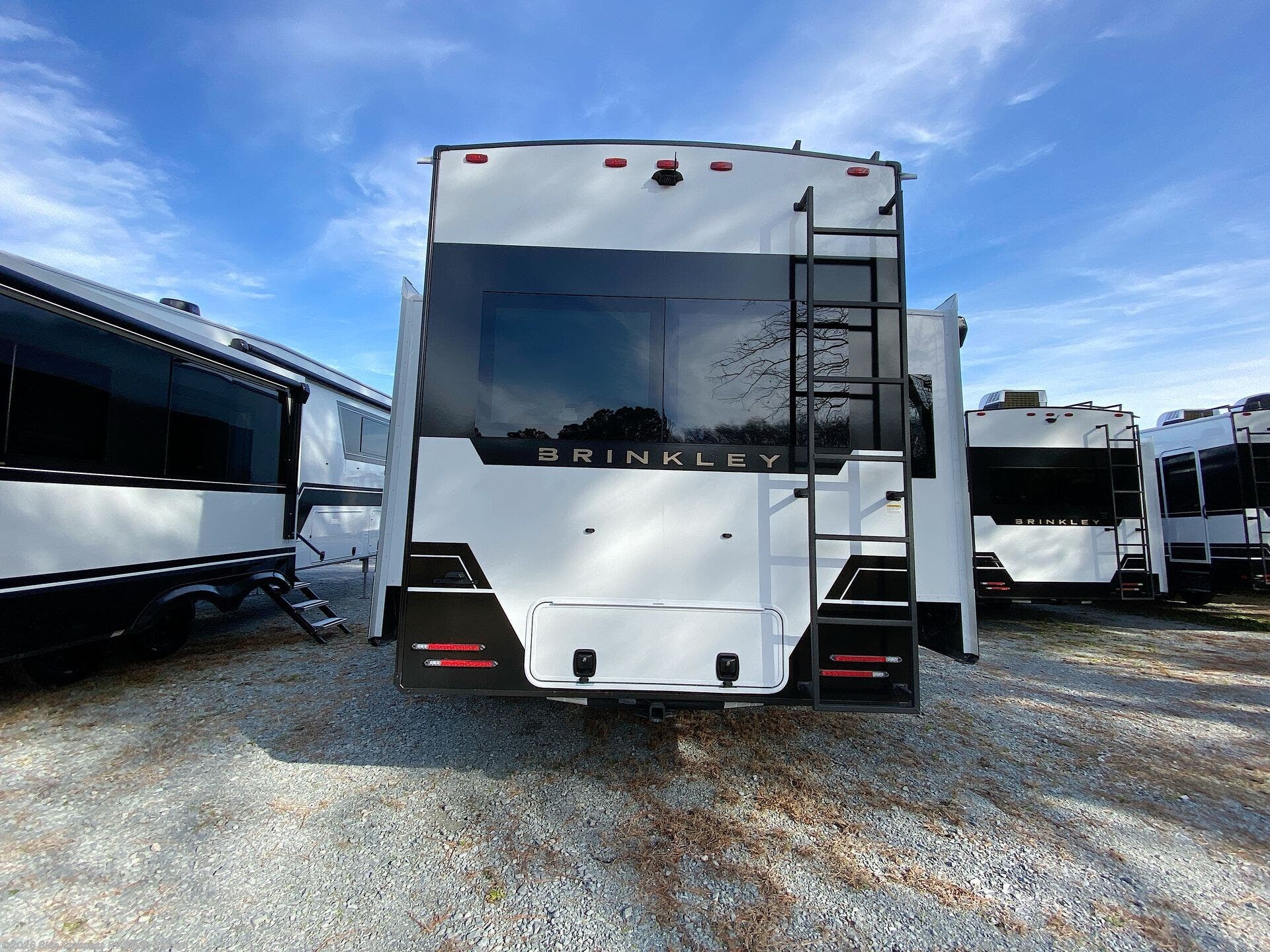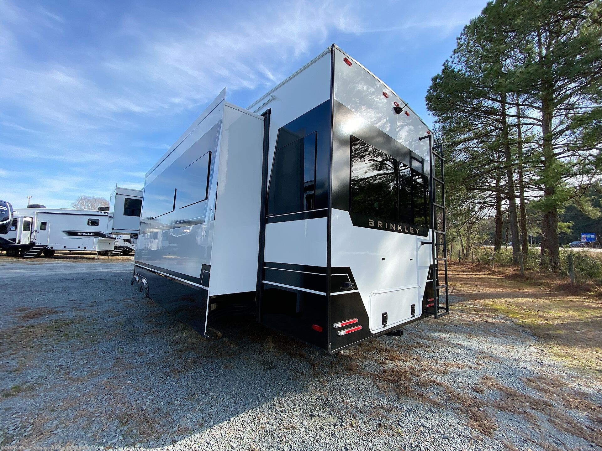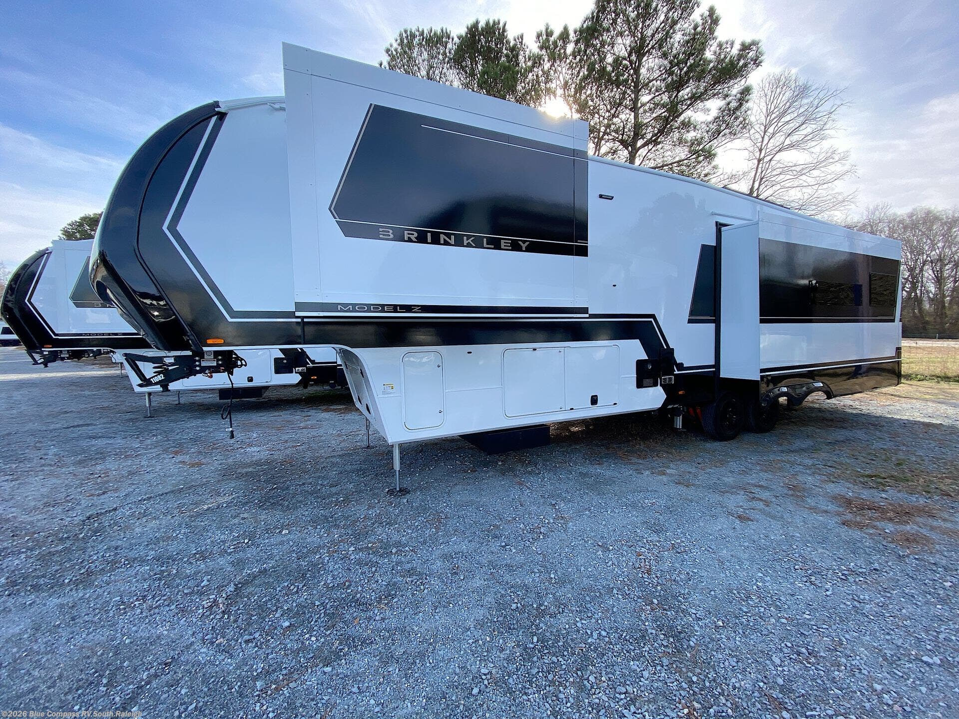 The Brinkley mid-profile Model Z fifth wheels bring you clean lines and an upscale look with plenty of style and exciting new features like the industry first brass plumbing connections. These units also feature an automotive grade front cap, plenty of exterior storage, dual exterior hot and cold showers, and wide stance leveling jacks for easy set up. Residential frameless windows provide a clean look and beautiful views, and ample electrical outlets and 6 USB/USB-C outlets allow all of your electronics and appliances to easily be used and charged.