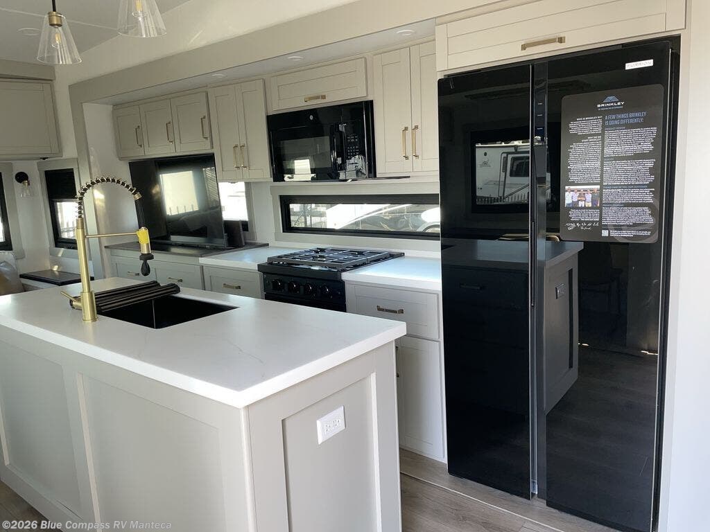 The Brinkley mid-profile Model Z fifth wheels bring you clean lines and an upscale look with plenty of style and exciting new features like the industry first brass plumbing connections. These units also feature an automotive grade front cap, plenty of exterior storage, dual exterior hot and cold showers, and wide stance leveling jacks for easy set up. Residential frameless windows provide a clean look and beautiful views, and ample electrical outlets and 6 USB/USB-C outlets allow all of your electronics and appliances to easily be used and charged.