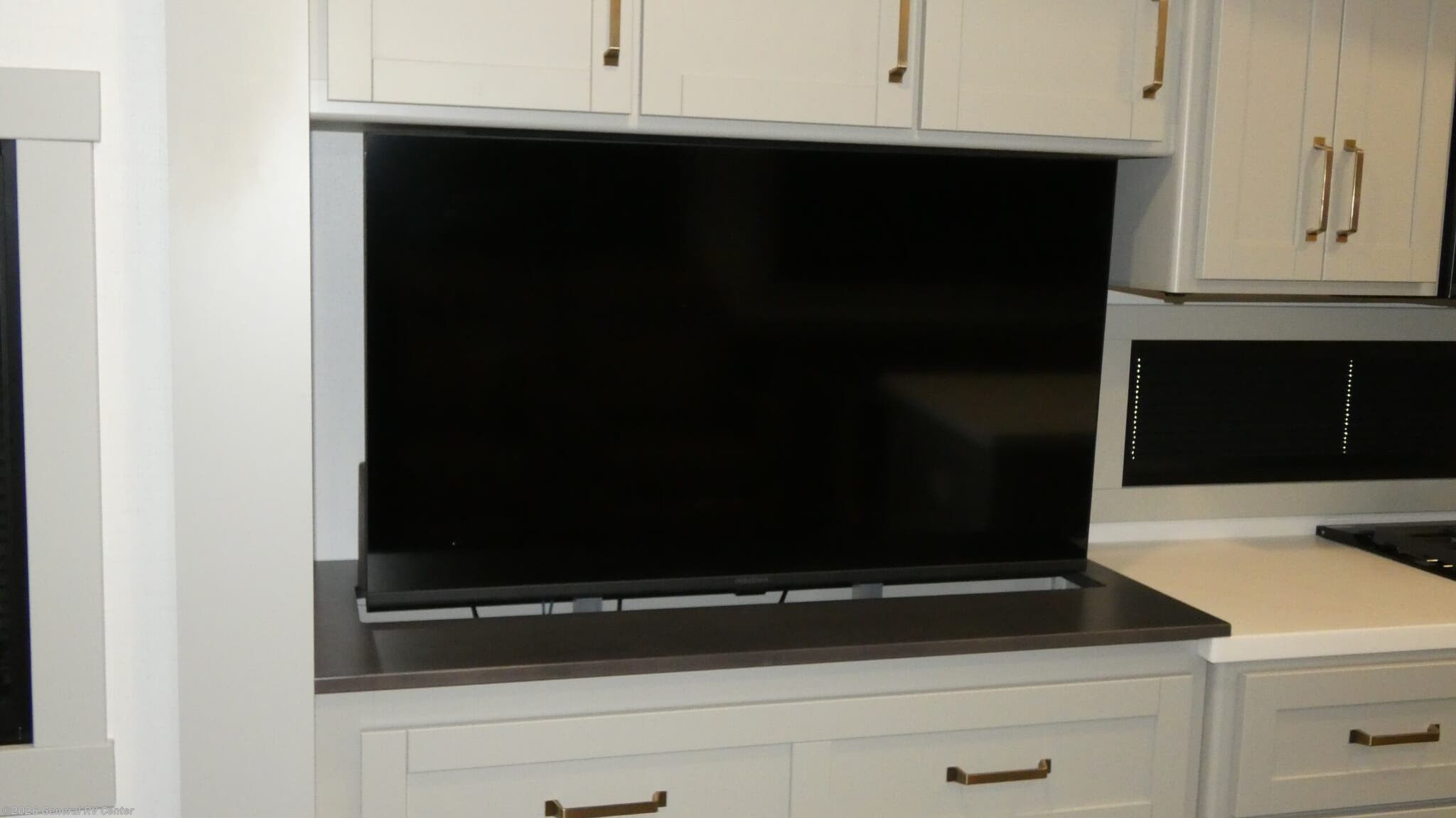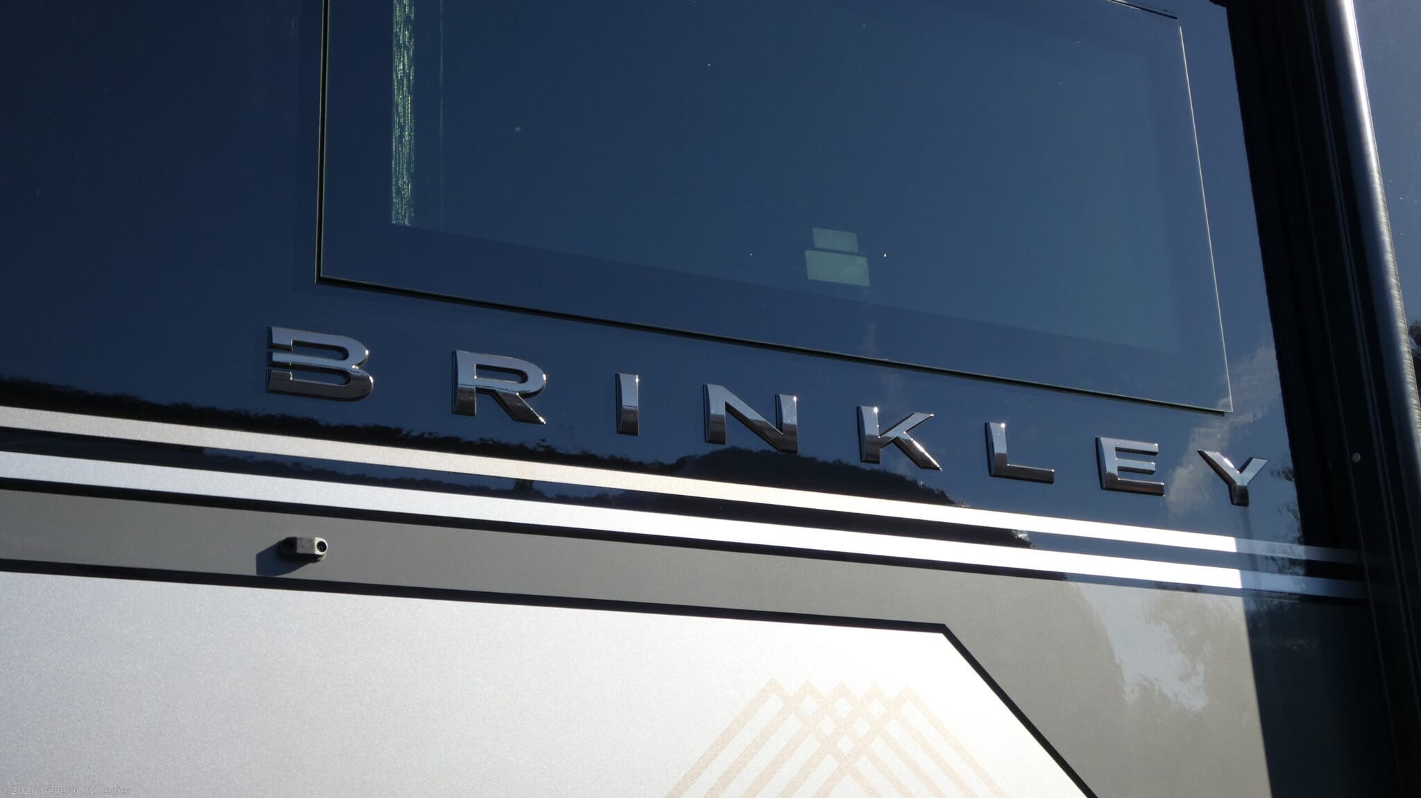 Brinkley Model Z fifth wheel 3600 highlights: Theater Seating Televator and Fireplace Integrated Pet Bowls Double Pull Out Trash Bins 16 Cu. Ft. Refrigerator Dual Bath Sinks This unit is perfect for weekends at the campground or extended stays! There is ample seating with a sliding desk/dining table, 62" theater seating, and a 72" tri-fold sofa along the rear wall. You can easily relax and enjoy the telescoping TV with a cozy fireplace below. The kitchen offers all that you need to prepare and cook meals just like home with a 16-cu. ft. refrigerator for your perishables, a 30" residential microwave oven, and three burner range top and oven. You will love the kitchen island all outfitted with pull-out pet bowls and double pull-out trash bins with an integrated Stow Go paper towel holder. There is also an 84" pantry with adjustable shelves for all of your canned and dry goods. Head up the steps to a find a full bath and a private bedroom with a king bed slide all the way up front. A sliding dresser top features hidden storage which is perfect for jewelry and other personal belongings. The front wardrobe features mirrored doors, and the corner closet has been prepped for a stackable washer and dryer. The Brinkley mid-profile Model Z fifth wheels bring you clean lines and an upscale look with plenty of style and exciting new features like the industry first brass plumbing connections. These units also feature an automotive grade front cap, plenty of exterior storage, dual exterior hot and cold showers, and wide stance leveling jacks for easy set up. Residential frameless windows provide a clean look and beautiful views, and ample electrical outlets and 6 USB/USB-C outlets allow all of your electronics and appliances to easily be used and charged.