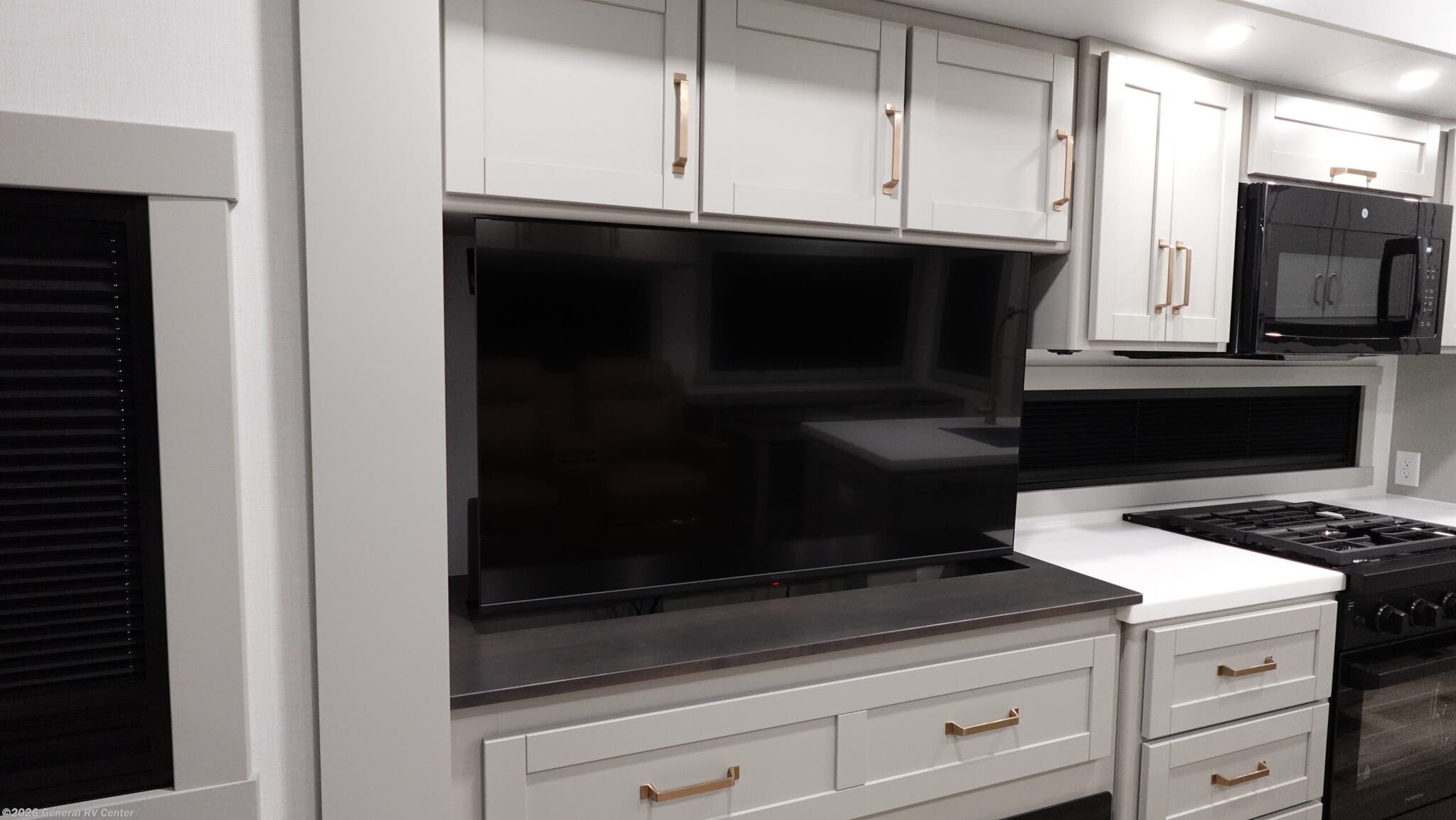 **Brinkley Model Z fifth wheel 3600 highlights:** * Theater Seating * Televator and Fireplace * Integrated Pet Bowls * Double Pull Out Trash Bins * 16 Cu. Ft. Refrigerator * Dual Bath Sinks This unit is perfect for weekends at the campground or extended stays! There is ample seating with a sliding desk/dining table, 62" theater seating, and a 72" tri-fold sofa along the rear wall. You can easily relax and enjoy the telescoping TV with a cozy fireplace below. The kitchen offers all that you need to prepare and cook meals just like home with a 16-cu. ft. refrigerator for your perishables, a 30" residential microwave oven, and three burner range top and oven. You will love the kitchen island all outfitted with pull-out pet bowls and double pull-out trash bins with an integrated Stow & Go paper towel holder. There is also an 84" pantry with adjustable shelves for all of your canned and dry goods. Head up the steps to a find a full bath and a private bedroom with a king bed slide all the way up front. A sliding dresser top features hidden storage which is perfect for jewelry and other personal belongings. The front wardrobe features mirrored doors, and the corner closet has been prepped for a stackable washer and dryer. The Brinkley mid-profile Model Z fifth wheels bring you clean lines and an upscale look with plenty of style and exciting new features like the industry first brass plumbing connections. These units also feature an automotive grade front cap, plenty of exterior storage, dual exterior hot and cold showers, and wide stance leveling jacks for easy set up. Residential frameless windows provide a clean look and beautiful views, and ample electrical outlets and 6 USB/USB-C outlets allow all of your electronics and appliances to easily be used and charged.