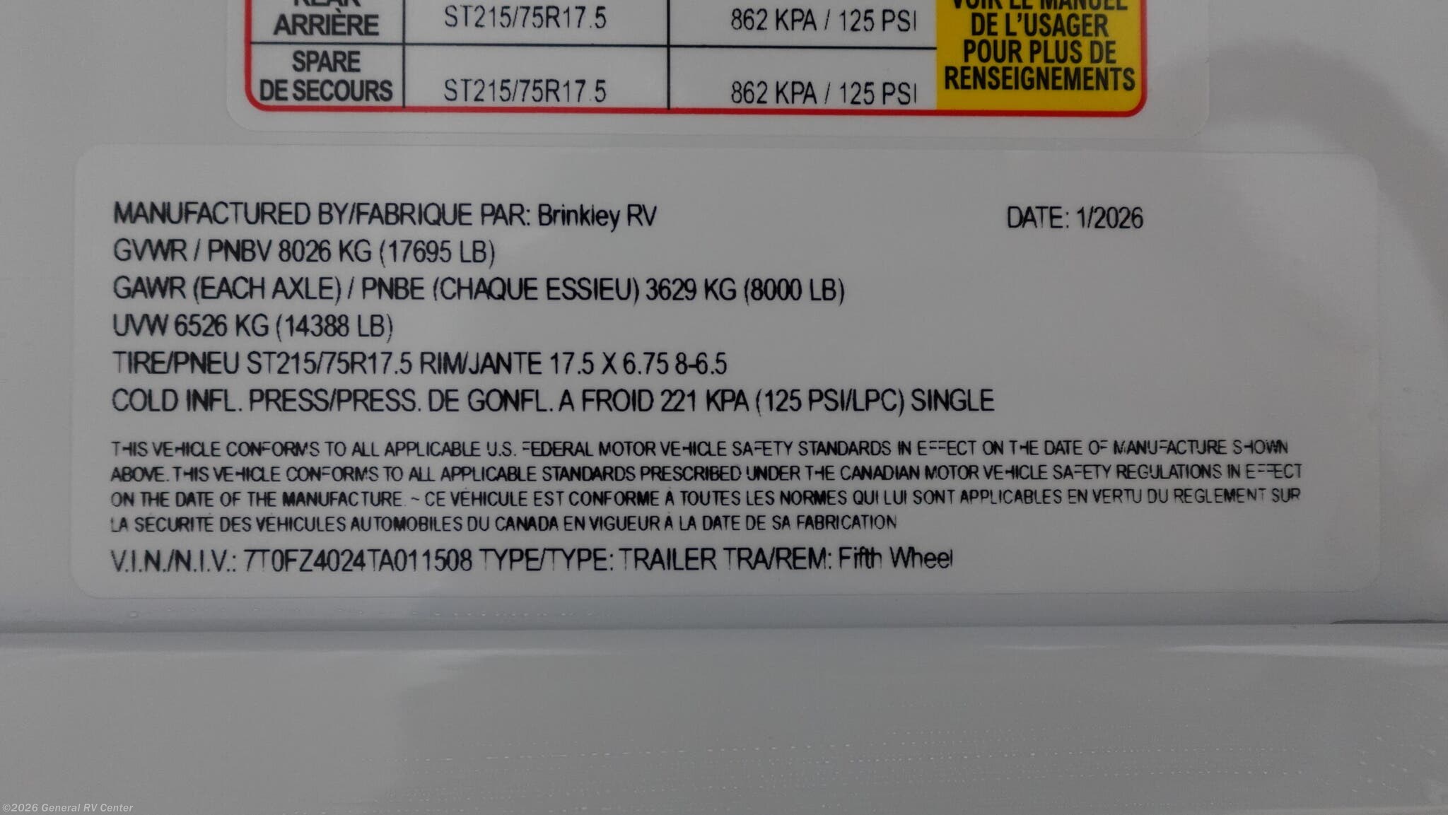 2026 Brinkley RV Model Z 3600 Specifications