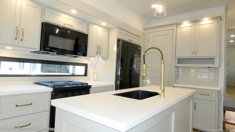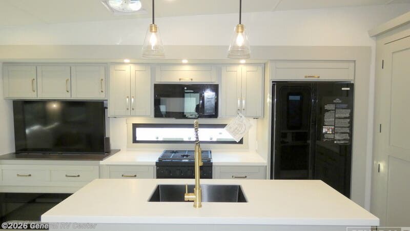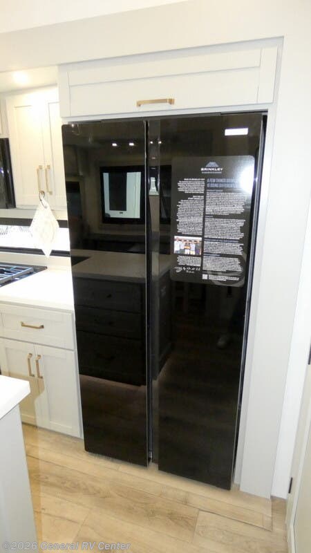 **Brinkley Model Z fifth wheel 3600 highlights:** * Theater Seating * Televator and Fireplace * Integrated Pet Bowls * Double Pull Out Trash Bins * 16 Cu. Ft. Refrigerator * Dual Bath Sinks This unit is perfect for weekends at the campground or extended stays! There is ample seating with a sliding desk/dining table, 62" theater seating, and a 72" tri-fold sofa along the rear wall. You can easily relax and enjoy the telescoping TV with a cozy fireplace below. The kitchen offers all that you need to prepare and cook meals just like home with a 16-cu. ft. refrigerator for your perishables, a 30" residential microwave oven, and three burner range top and oven. You will love the kitchen island all outfitted with pull-out pet bowls and double pull-out trash bins with an integrated Stow & Go paper towel holder. There is also an 84" pantry with adjustable shelves for all of your canned and dry goods. Head up the steps to a find a full bath and a private bedroom with a king bed slide all the way up front. A sliding dresser top features hidden storage which is perfect for jewelry and other personal belongings. The front wardrobe features mirrored doors, and the corner closet has been prepped for a stackable washer and dryer. The Brinkley mid-profile Model Z fifth wheels bring you clean lines and an upscale look with plenty of style and exciting new features like the industry first brass plumbing connections. These units also feature an automotive grade front cap, plenty of exterior storage, dual exterior hot and cold showers, and wide stance leveling jacks for easy set up. Residential frameless windows provide a clean look and beautiful views, and ample electrical outlets and 6 USB/USB-C outlets allow all of your electronics and appliances to easily be used and charged.