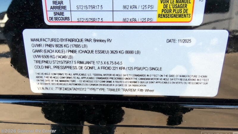 Request More Info on this 2026 Brinkley RV Model Z 3600 Offered for sale by General RV Center