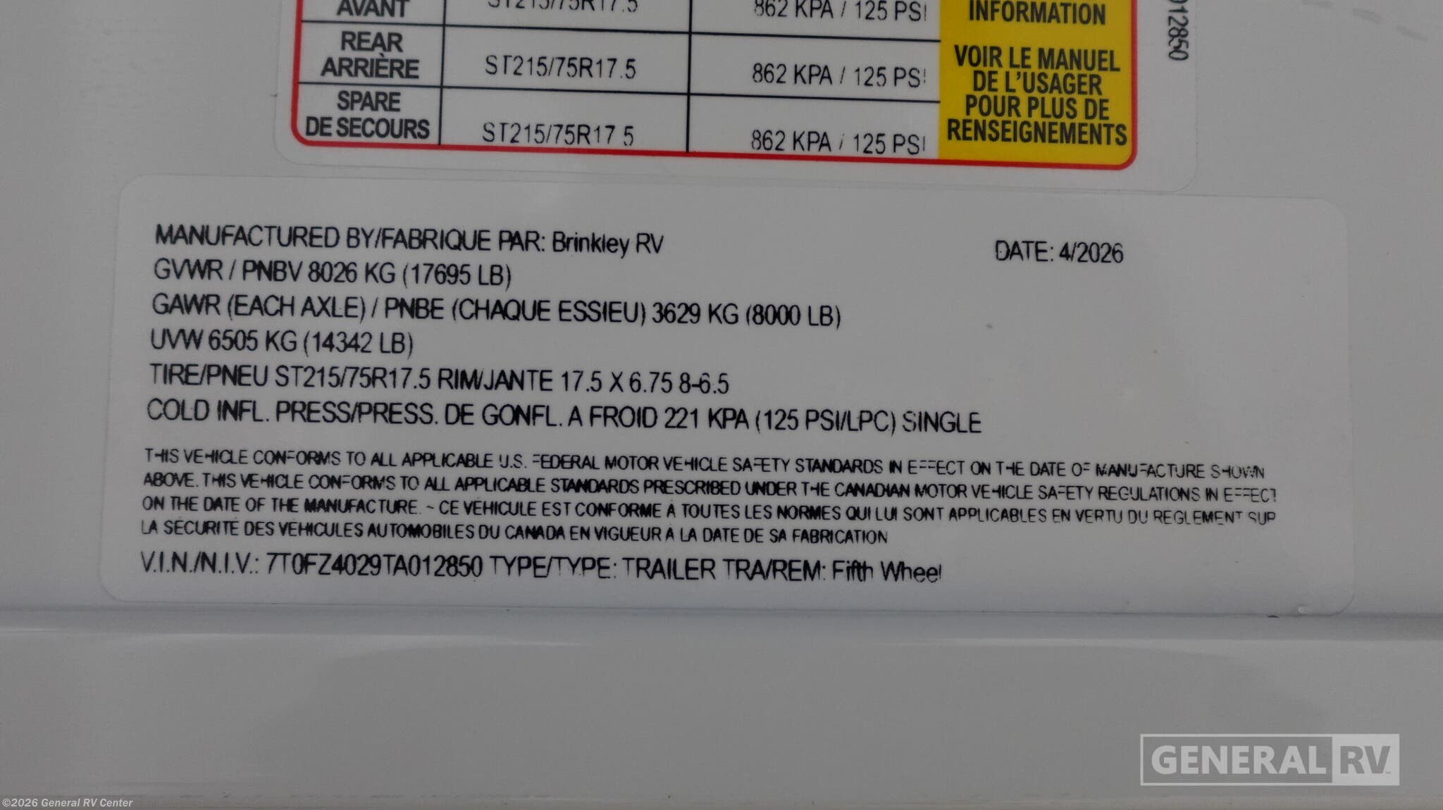 Looking to buy a 2026 Brinkley RV Model Z Fifth Wheel RV?