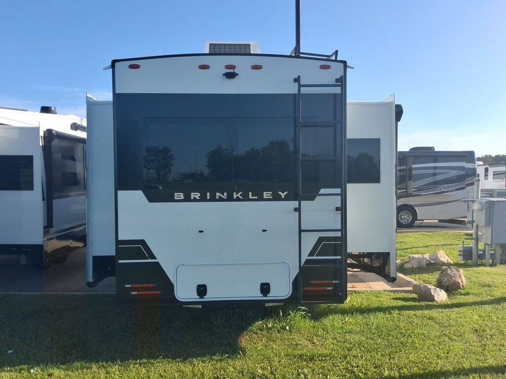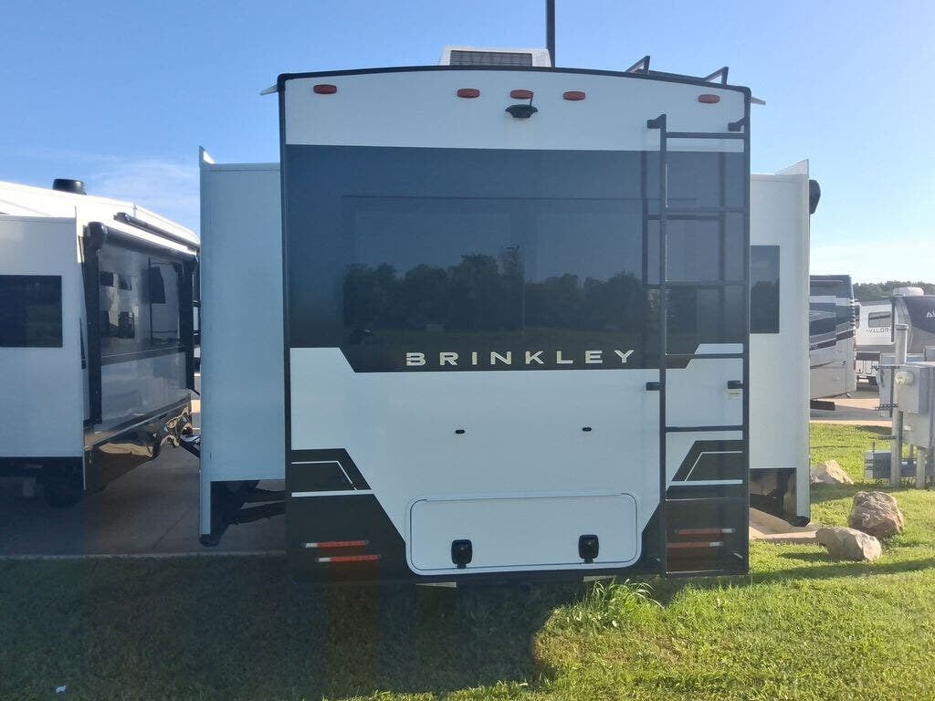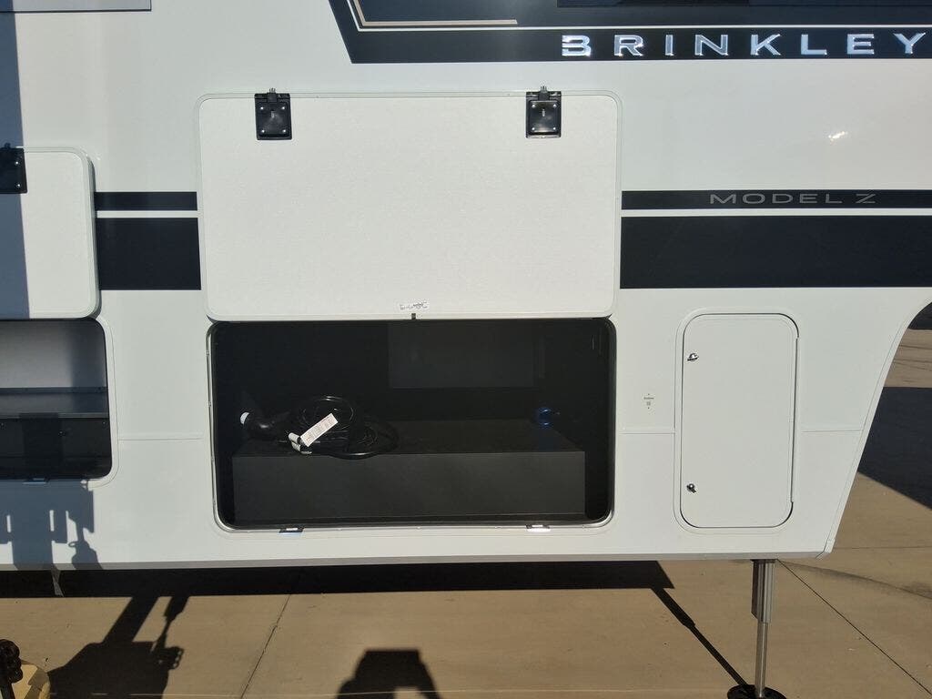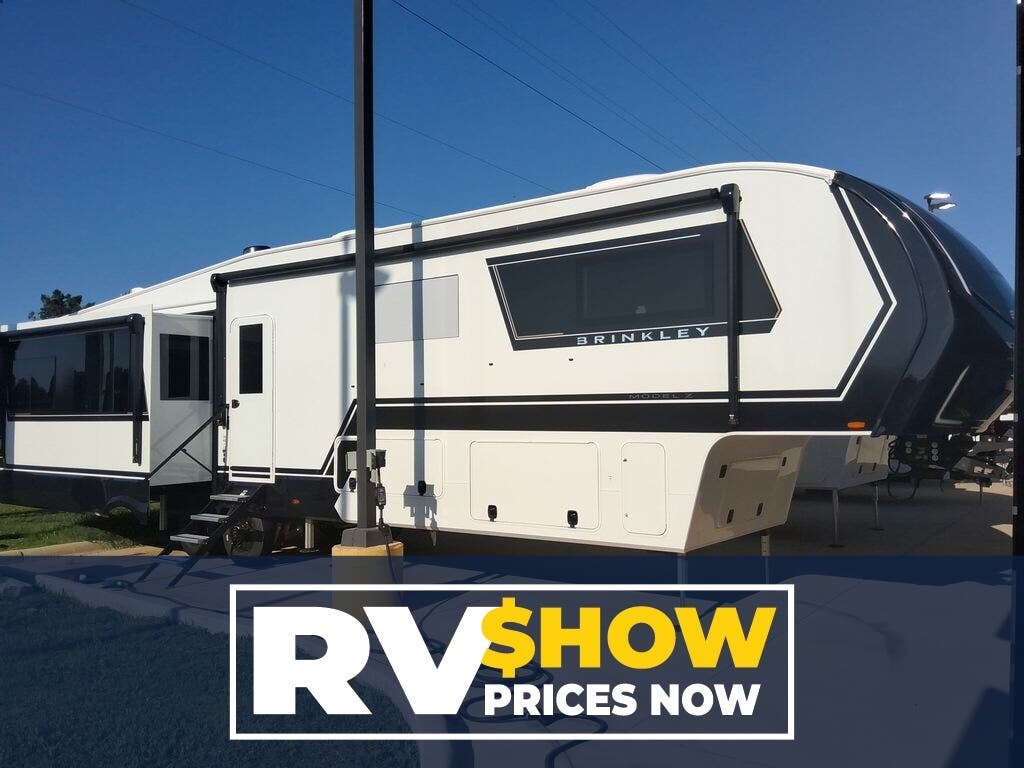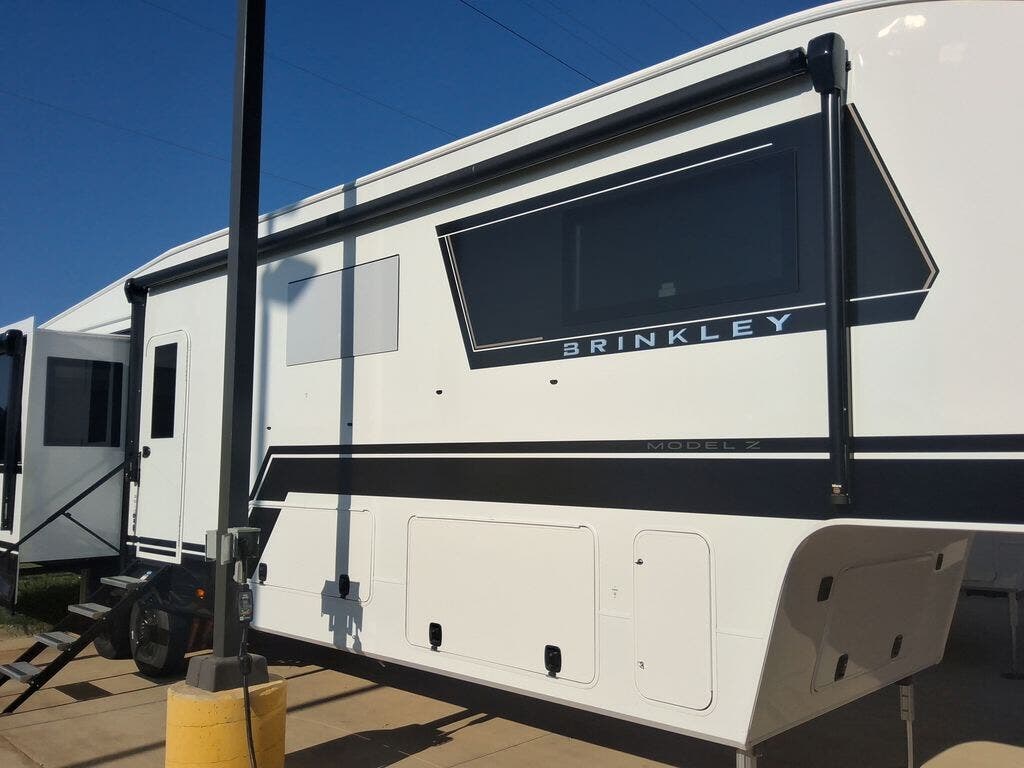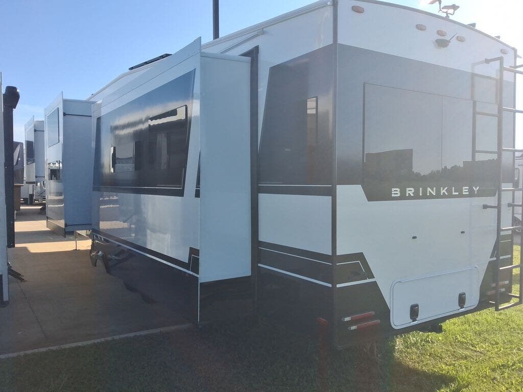 The Brinkley mid-profile Model Z fifth wheels bring you clean lines and an upscale look with plenty of style and exciting new features like the industry first brass plumbing connections. These units also feature an automotive grade front cap, plenty of exterior storage, dual exterior hot and cold showers, and wide stance leveling jacks for easy set up. Residential frameless windows provide a clean look and beautiful views, and ample electrical outlets and 6 USB/USB-C outlets allow all of your electronics and appliances to easily be used and charged.