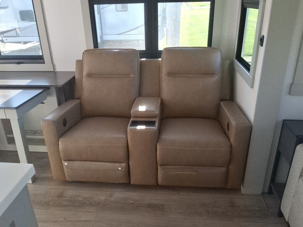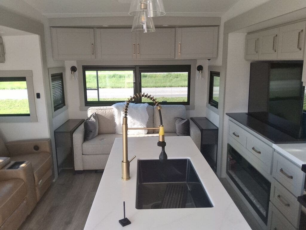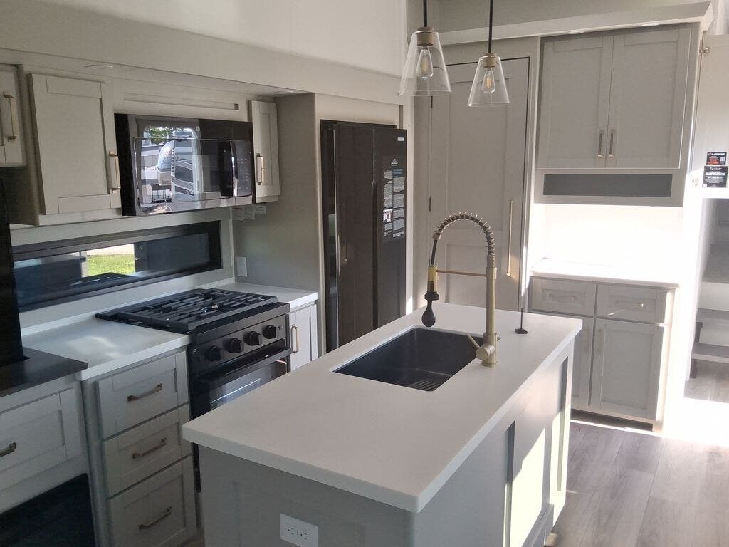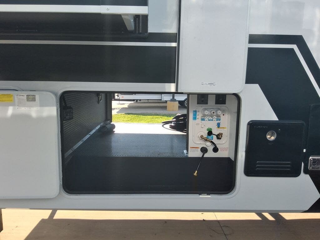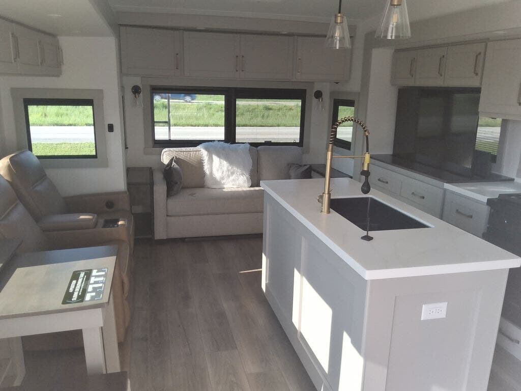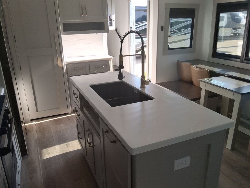 The Brinkley mid-profile Model Z fifth wheels bring you clean lines and an upscale look with plenty of style and exciting new features like the industry first brass plumbing connections. These units also feature an automotive grade front cap, plenty of exterior storage, dual exterior hot and cold showers, and wide stance leveling jacks for easy set up. Residential frameless windows provide a clean look and beautiful views, and ample electrical outlets and 6 USB/USB-C outlets allow all of your electronics and appliances to easily be used and charged.