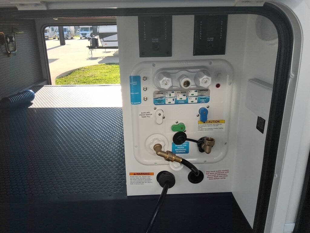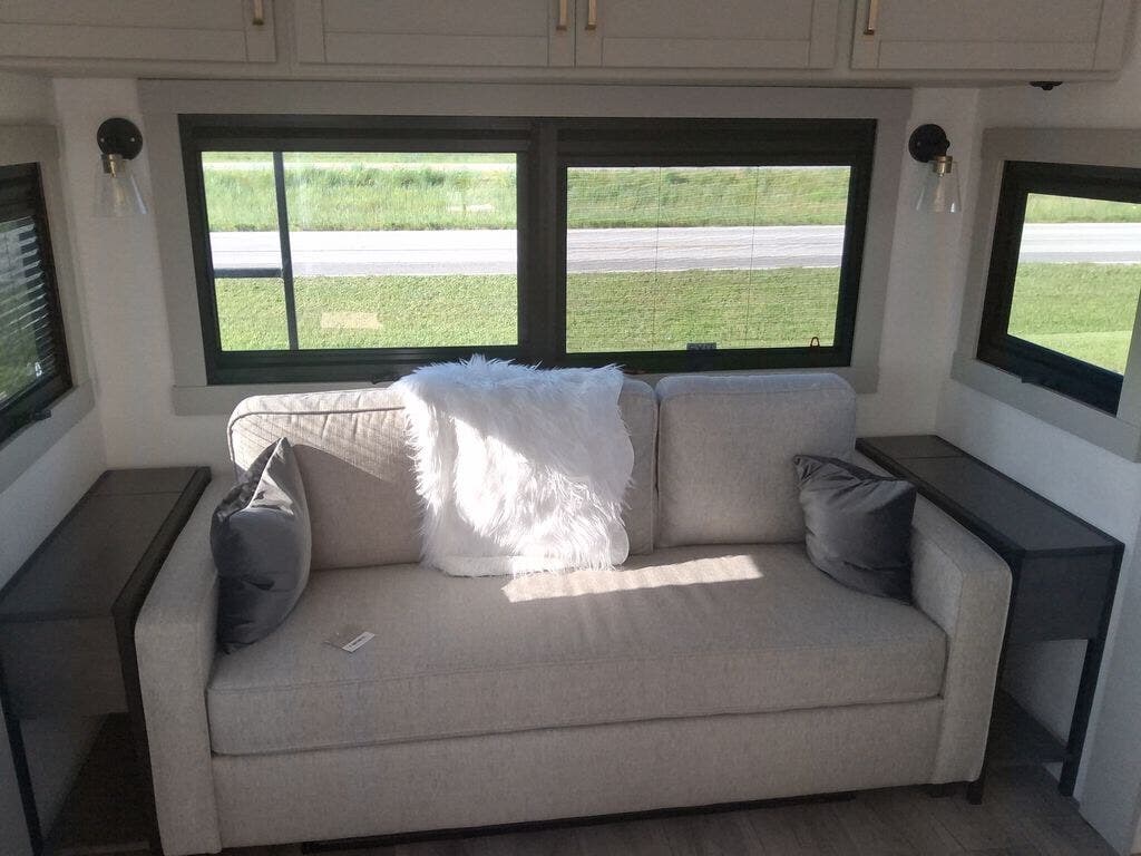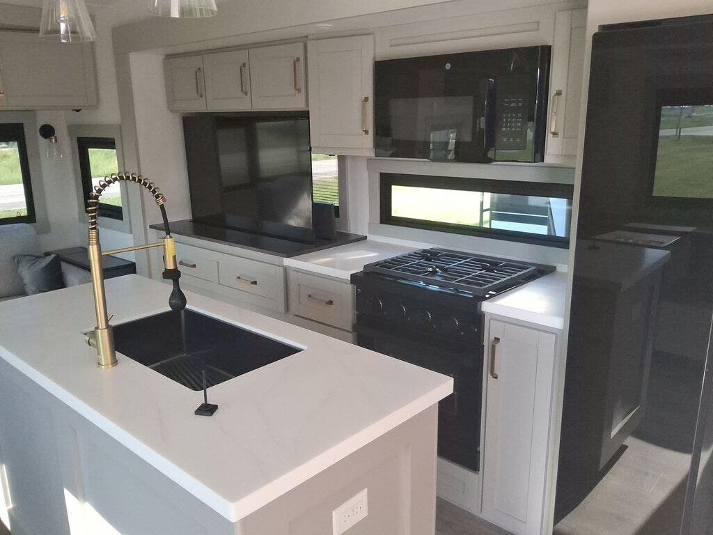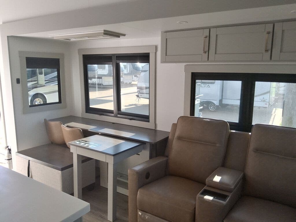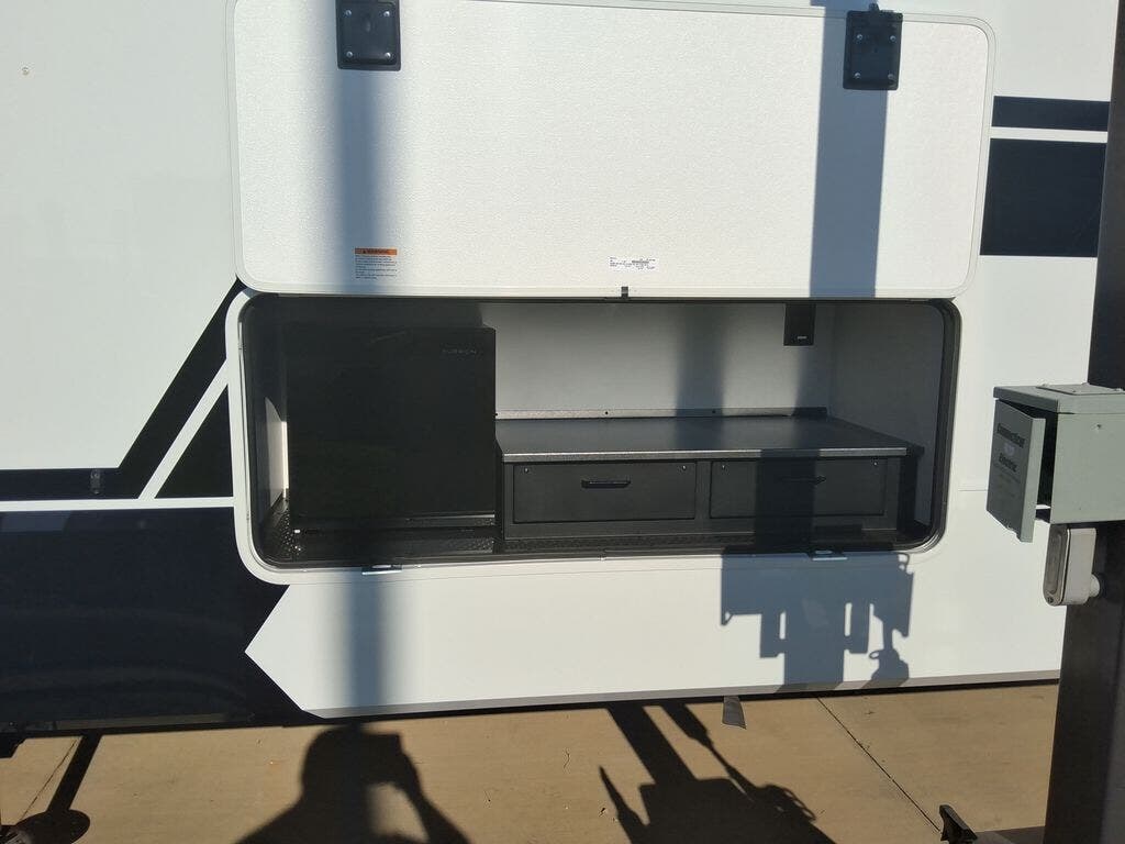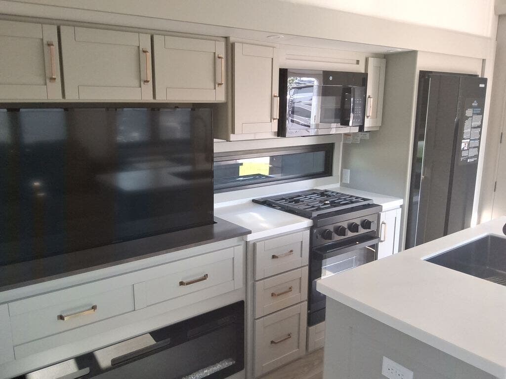 The Brinkley mid-profile Model Z fifth wheels bring you clean lines and an upscale look with plenty of style and exciting new features like the industry first brass plumbing connections. These units also feature an automotive grade front cap, plenty of exterior storage, dual exterior hot and cold showers, and wide stance leveling jacks for easy set up. Residential frameless windows provide a clean look and beautiful views, and ample electrical outlets and 6 USB/USB-C outlets allow all of your electronics and appliances to easily be used and charged.